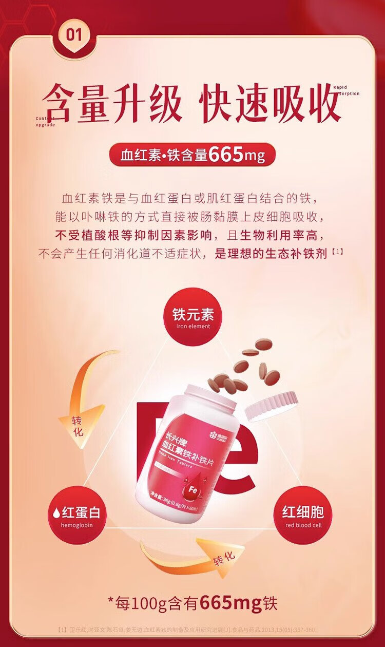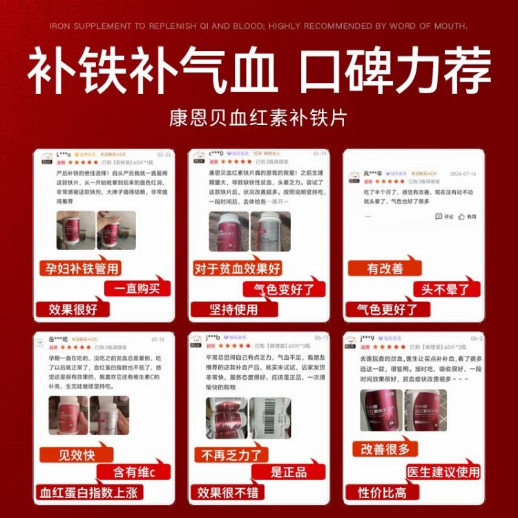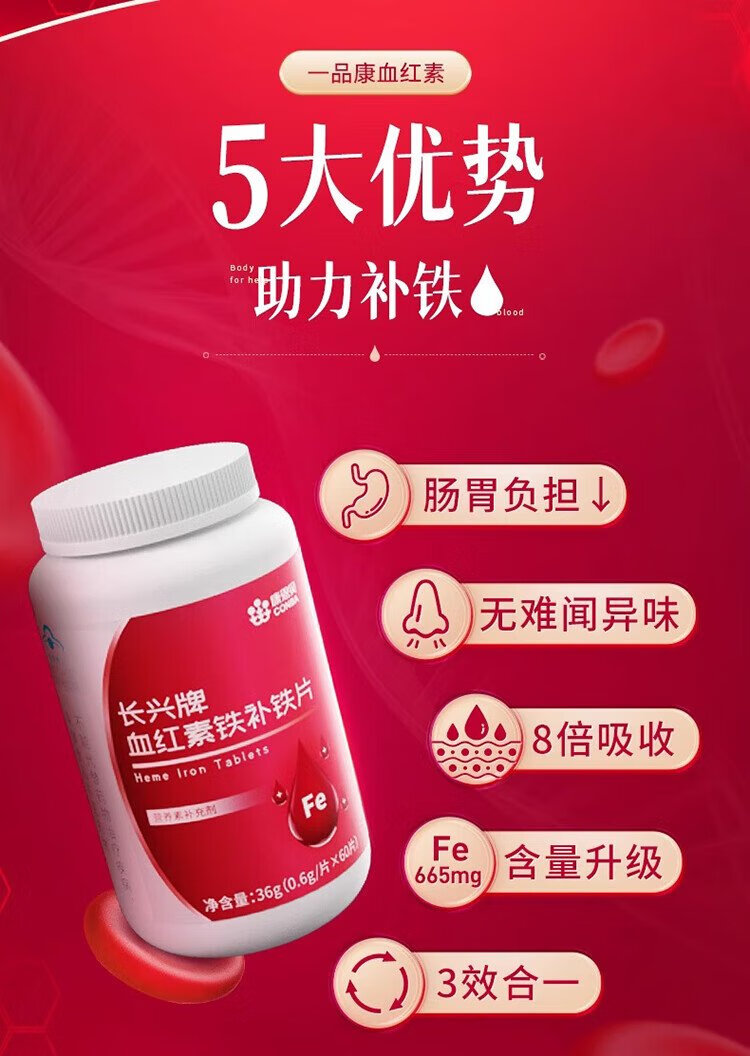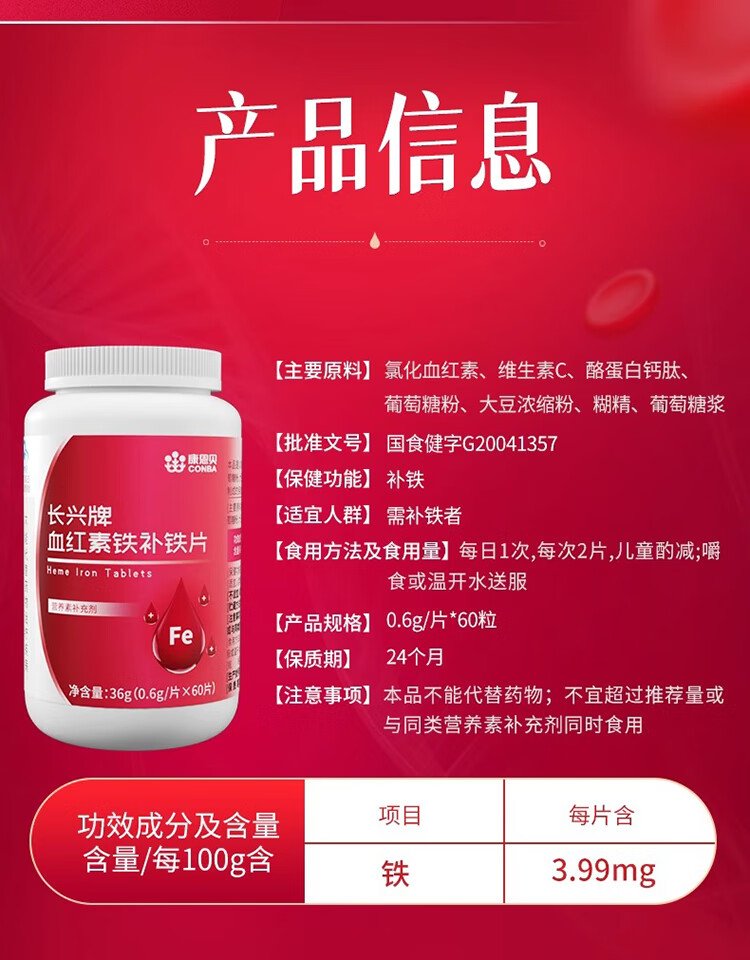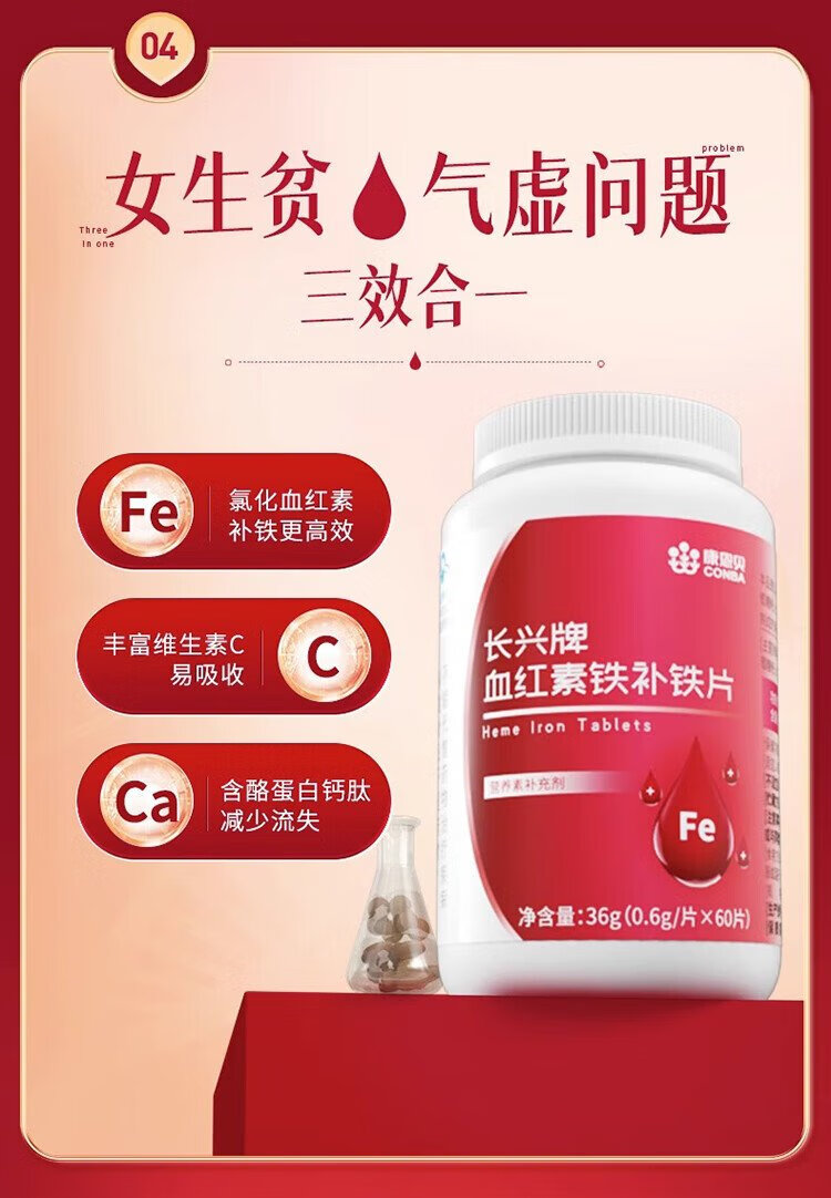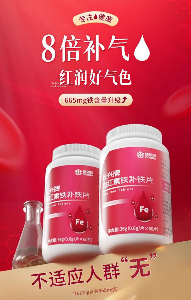 Conba heme supplement iron tablets to supplement qi and blood, women's anemia, improve iron supplementation, anemia gummies, iron deficiency iron supplements 60 tablets