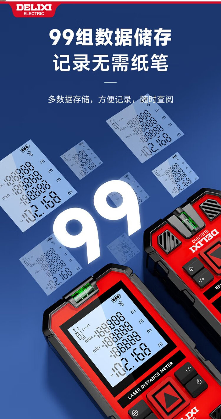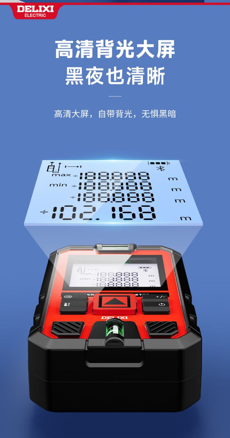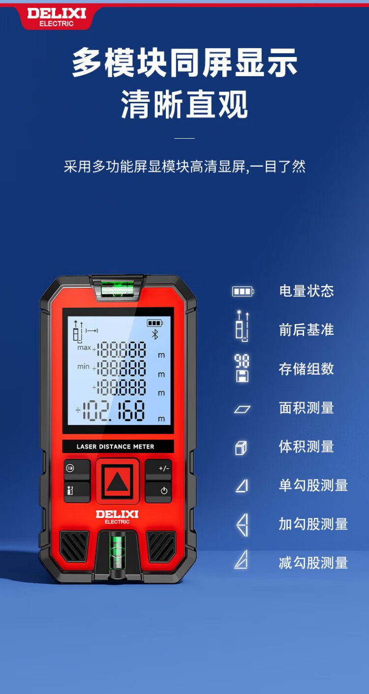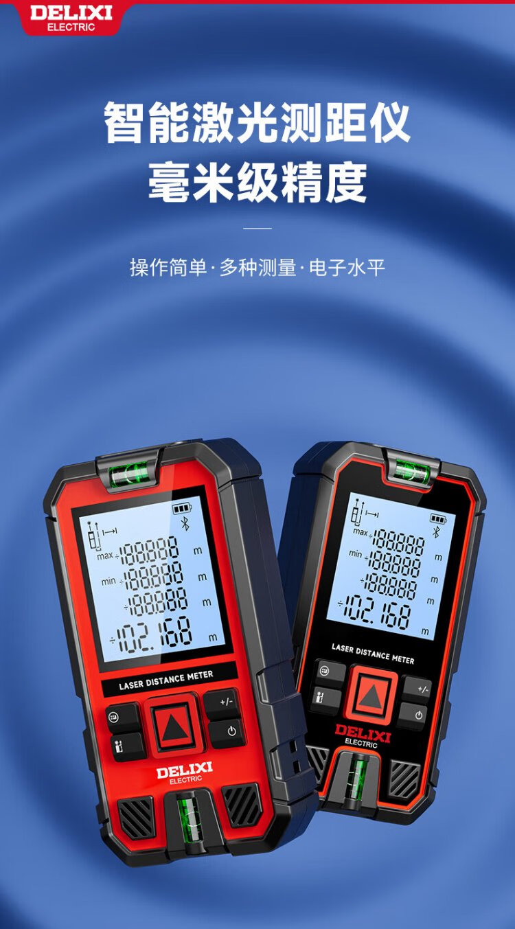 DELIXI ELECTRIC laser range finder handheld high-precision electronic ruler infrared outdoor household room measuring instrument double level bubble 100 meters