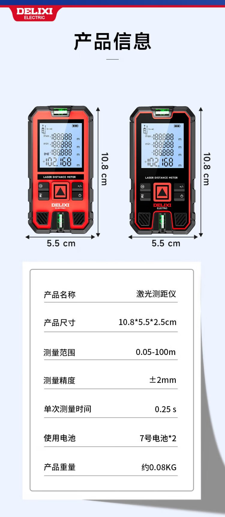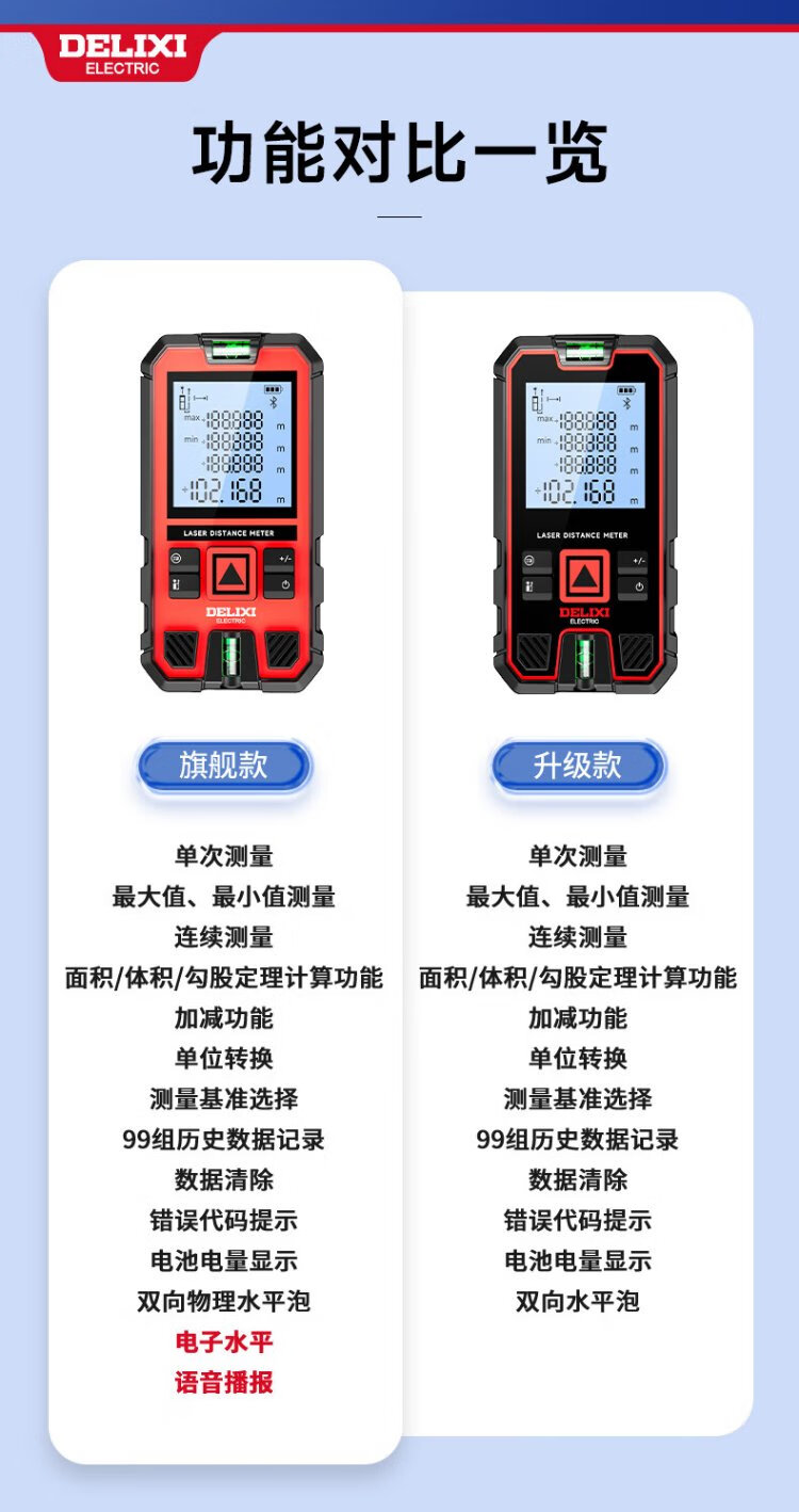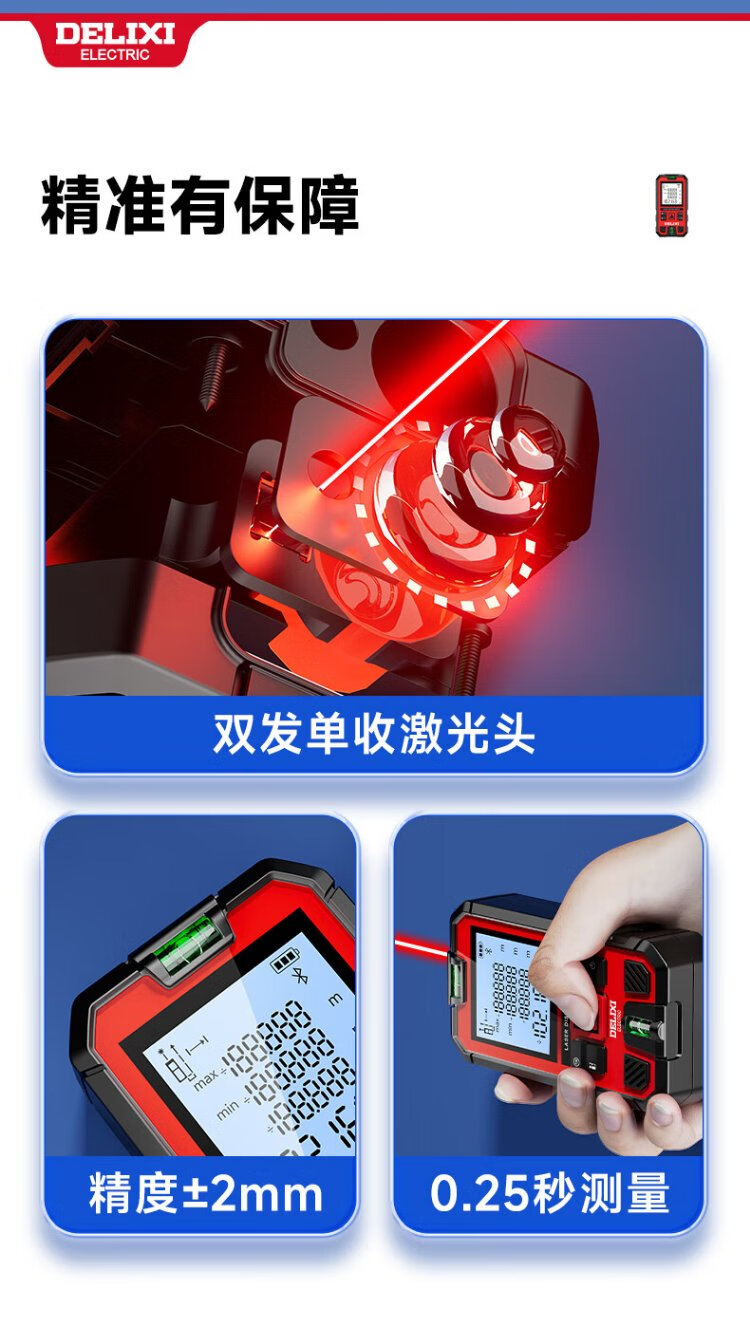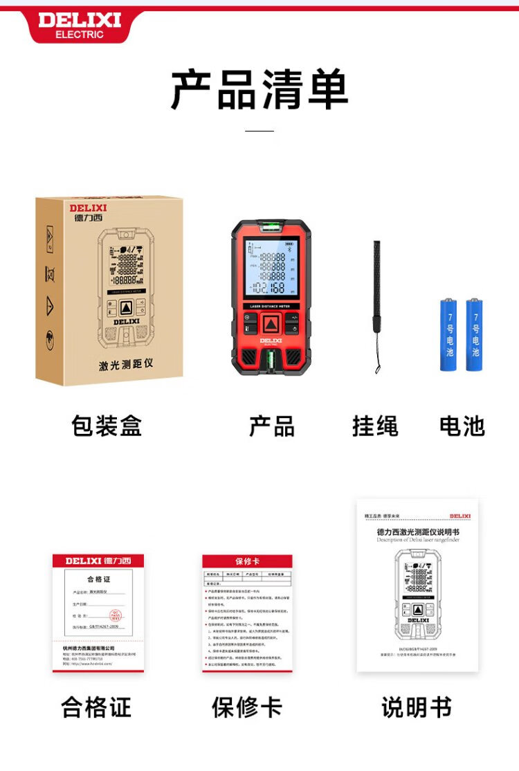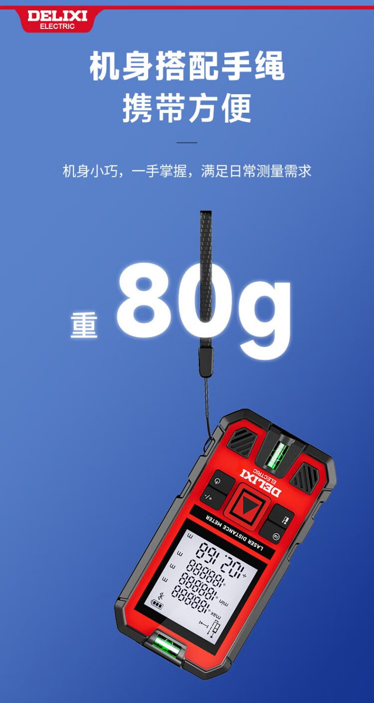DELIXI ELECTRIC laser range finder handheld high-precision electronic ruler infrared outdoor household room measuring instrument double level bubble 100 meters