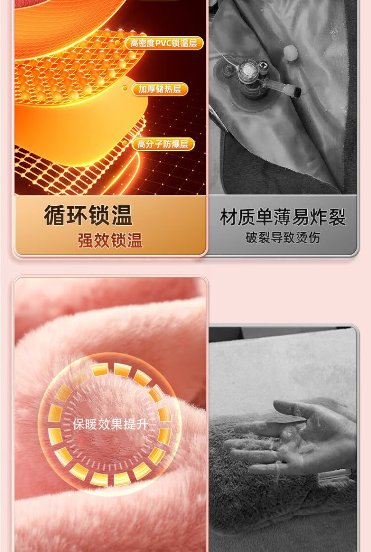 Jingxun water-filled hot water bag PVC warm water bag warms belly hot water filled with explosion-proof thickened warm hand warmer powder 2000ml