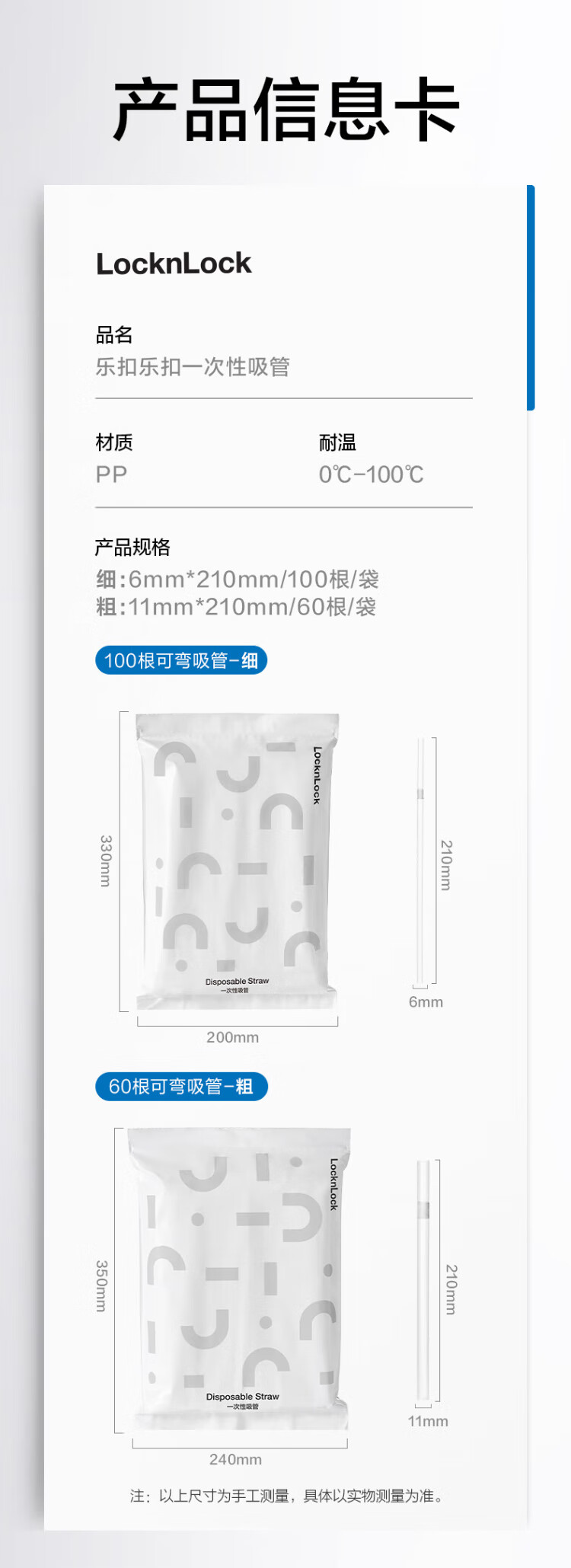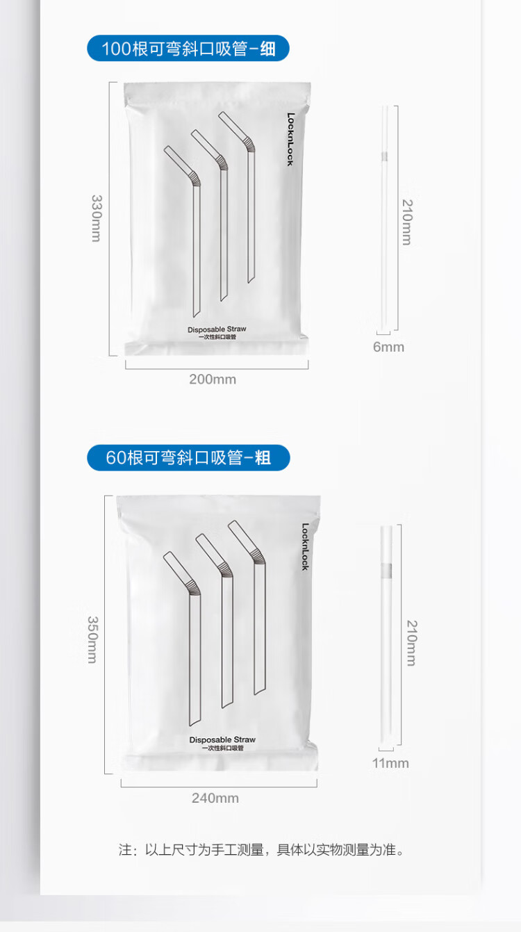Lock and Lock disposable straws individually packaged for drinking pearl milk tea coffee drinks pregnant women and children milk elbow thick straws