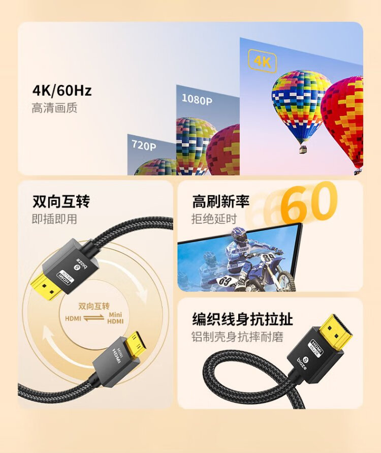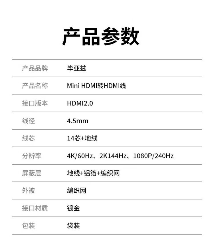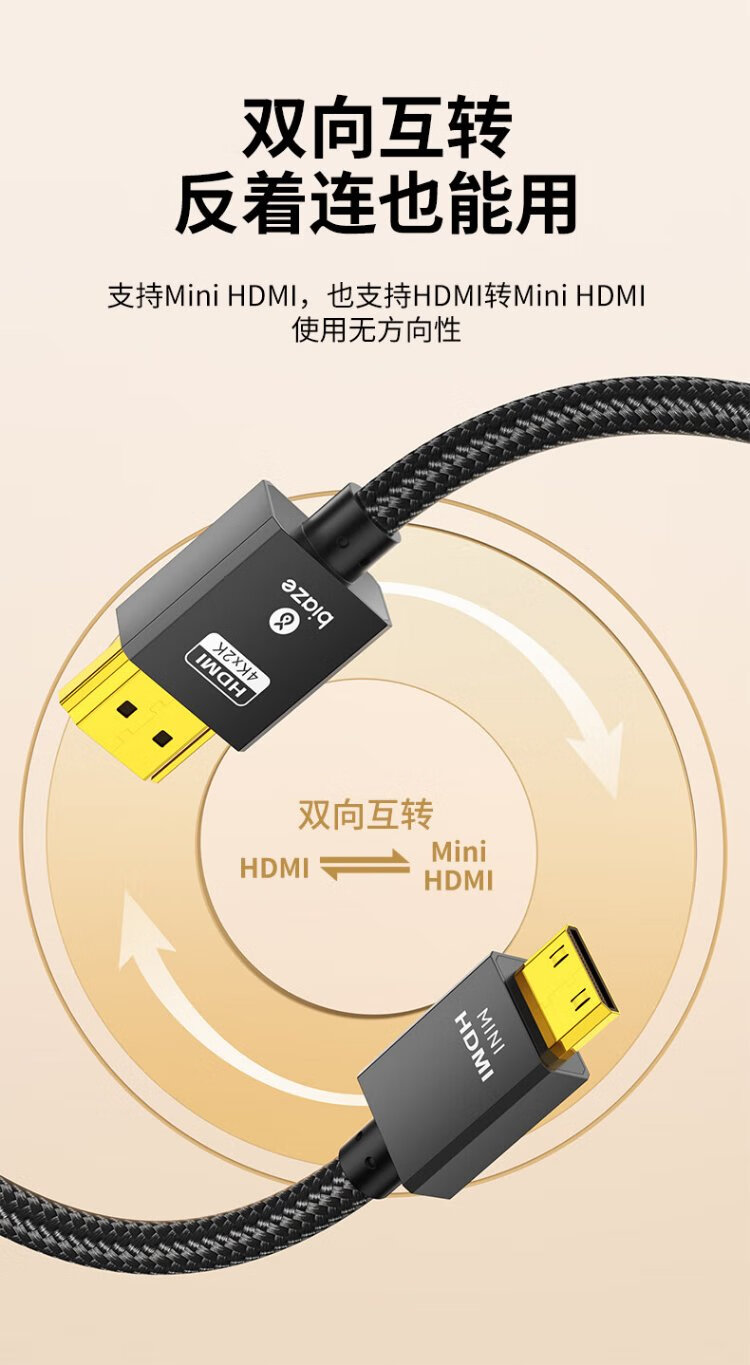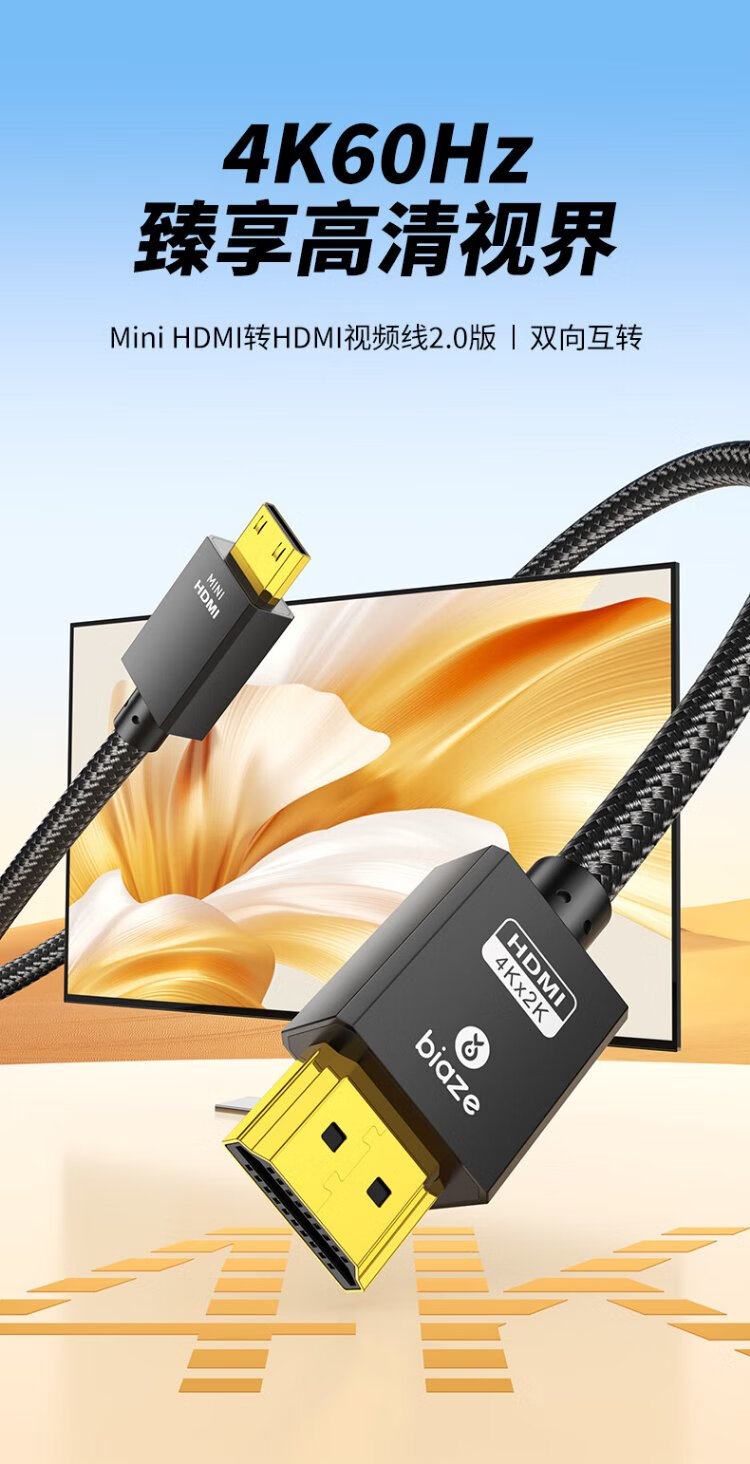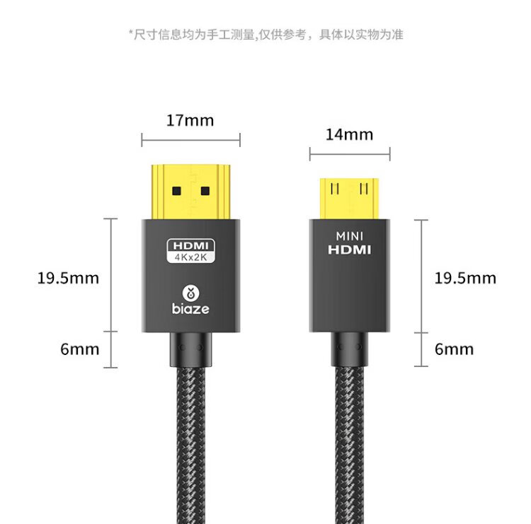 Biaz standard HDMI to Mini HDMI adapter cable 4K60hz high-definition audio and video conversion cable tablet camera computer connection TV projector display 1.2 meters