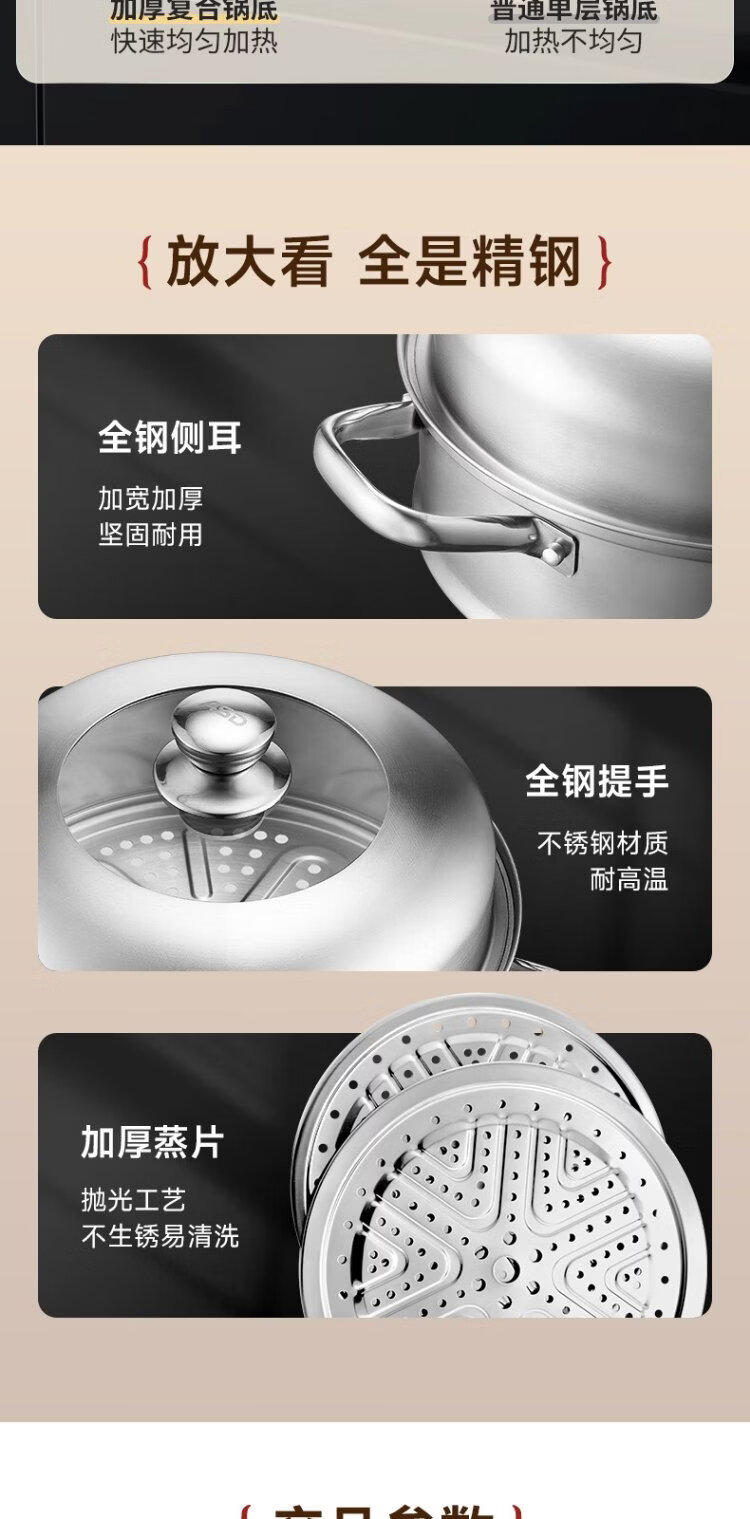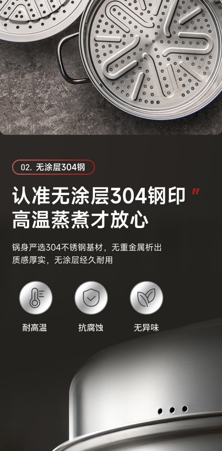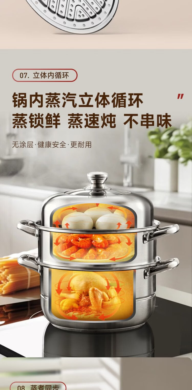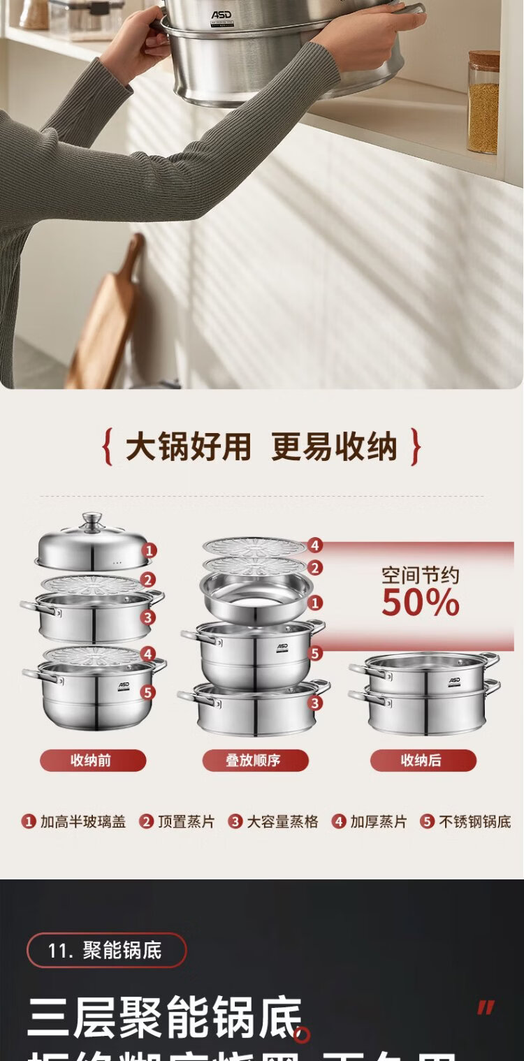 ASD steamer 304 stainless steel three-layer household steaming and stew pot large capacity 30CM double-layer steamer gas universal G3