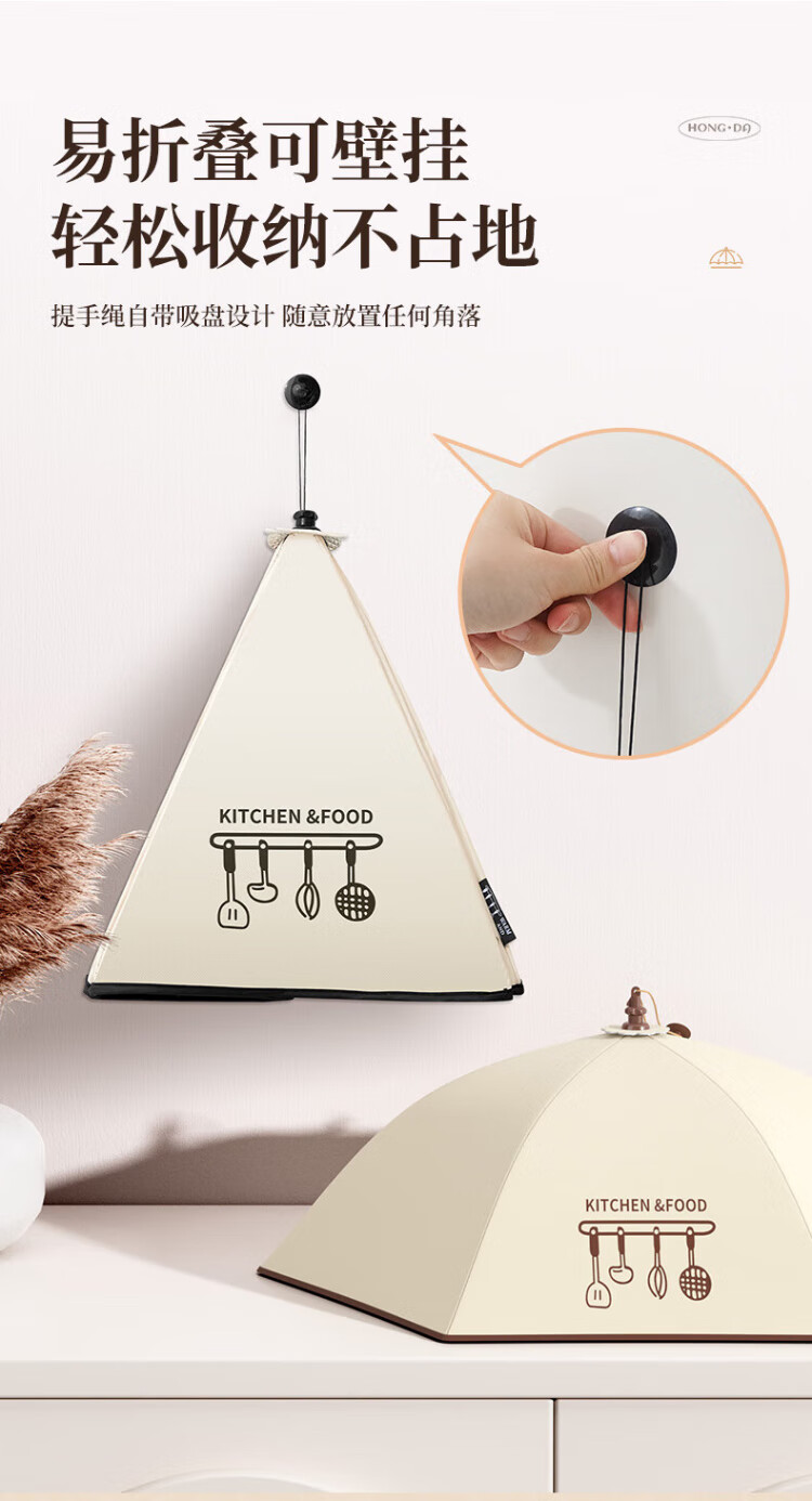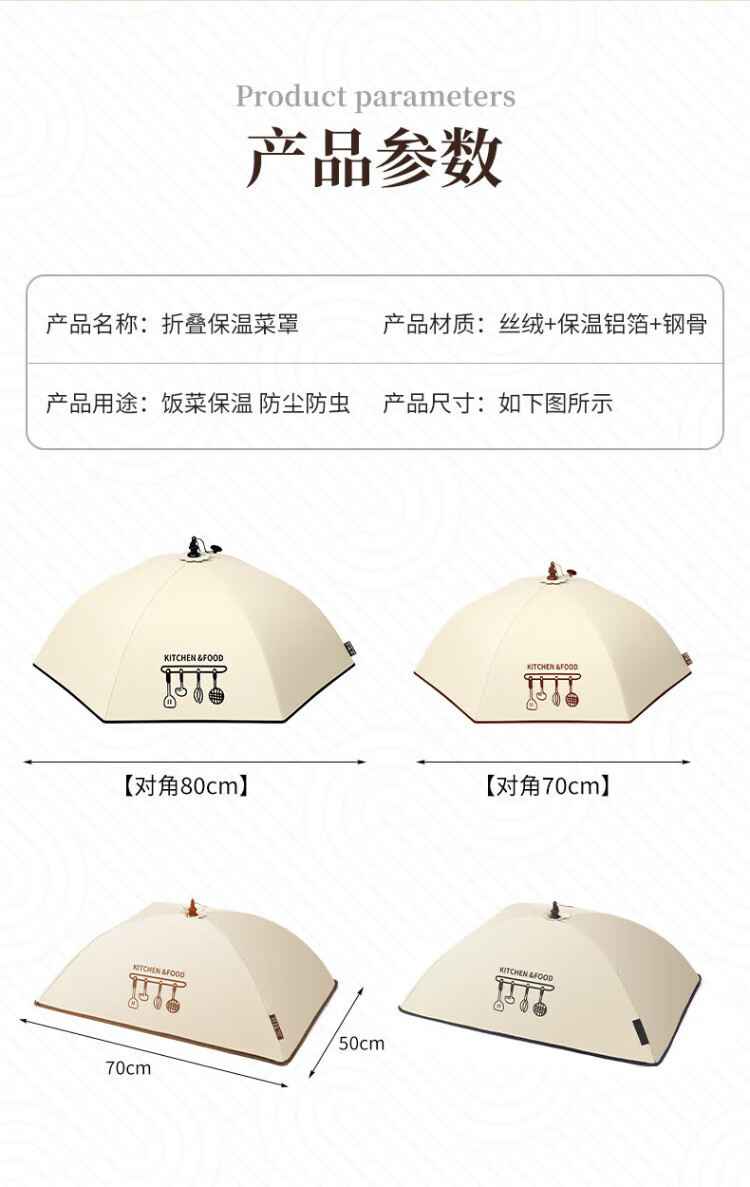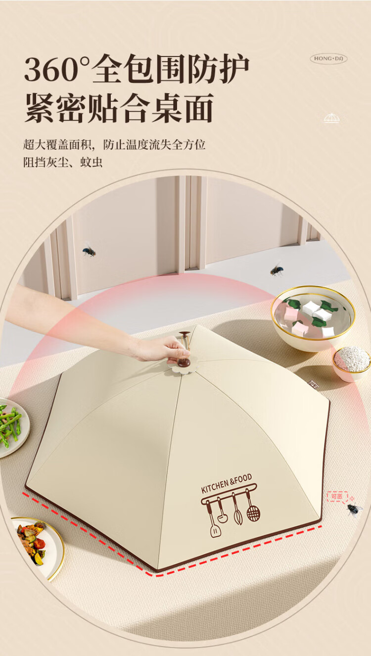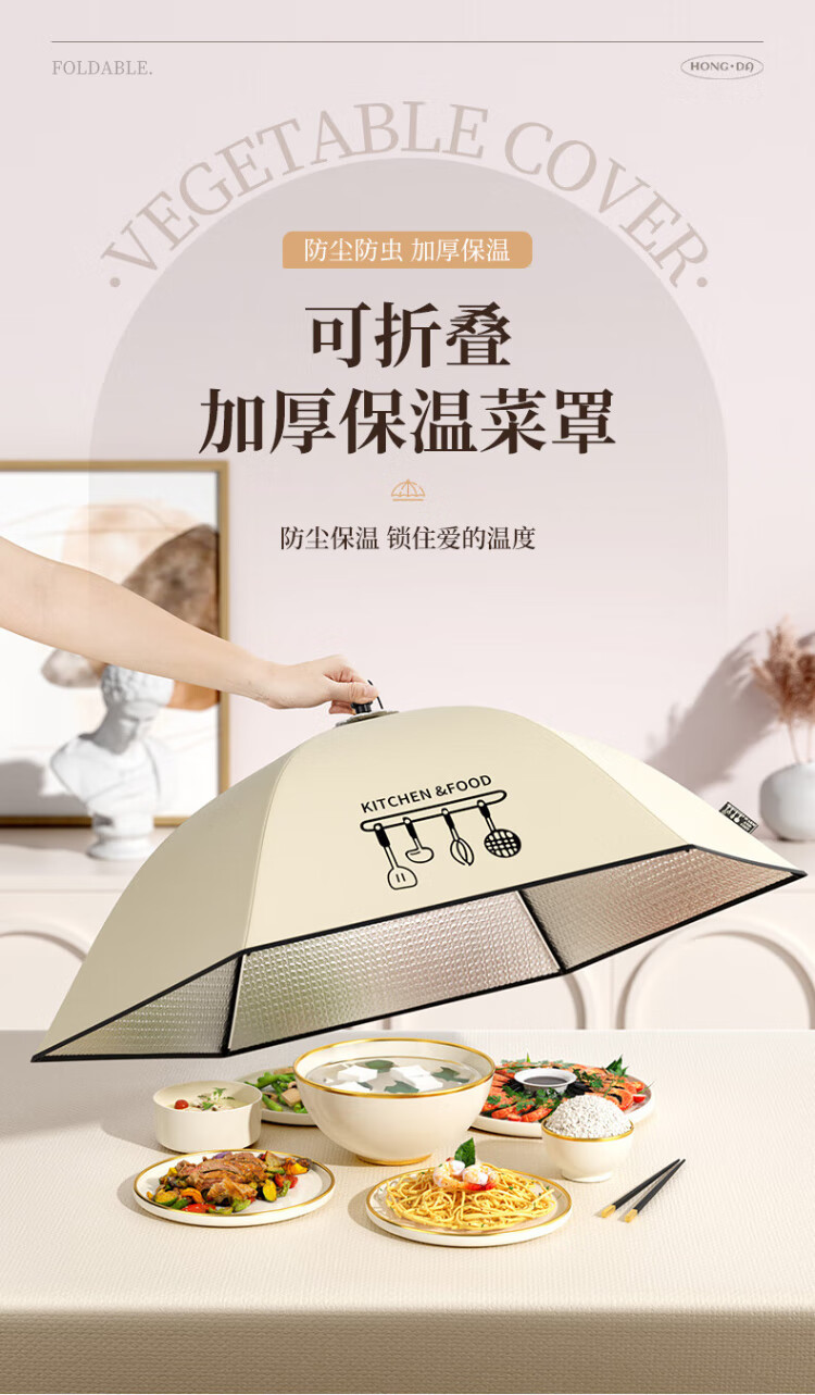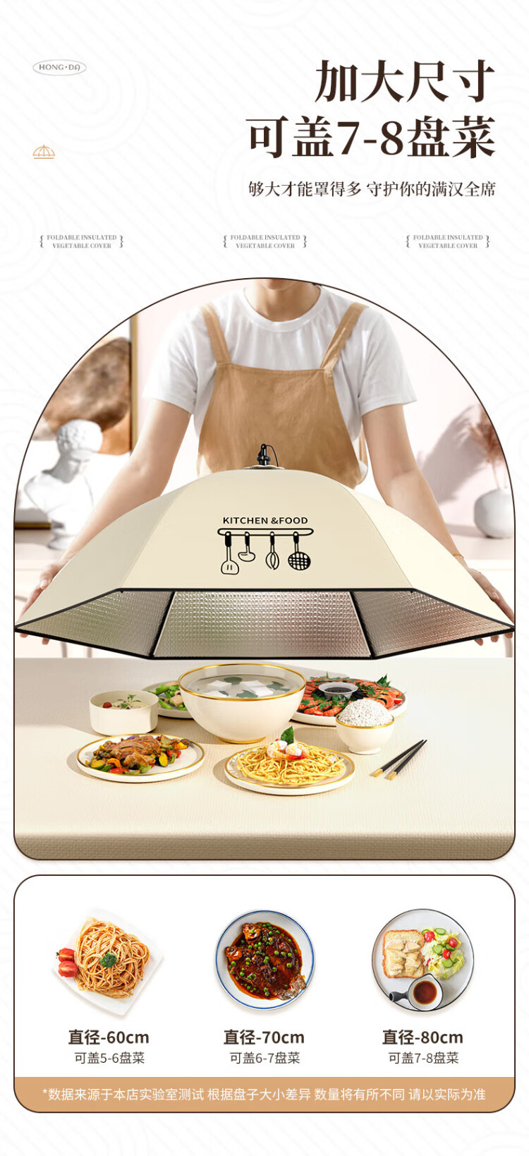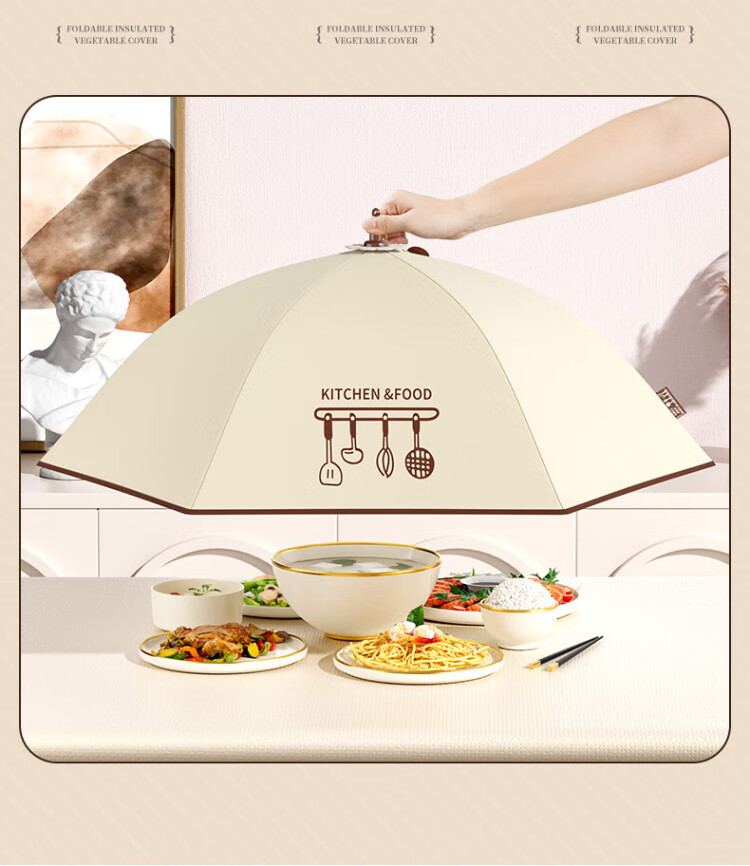 Baijie insulated vegetable cover foldable dust-proof and fly-proof dining table cover velvet cloth food cover dish cover 80cm
