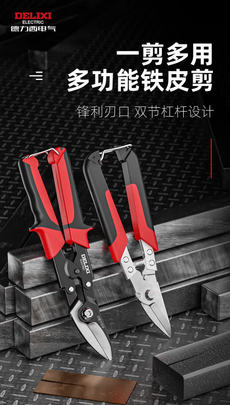 Delixi industrial-grade iron sheet scissors, stainless steel powerful aviation scissors, multi-functional strong metal keel aluminum gusset plate special