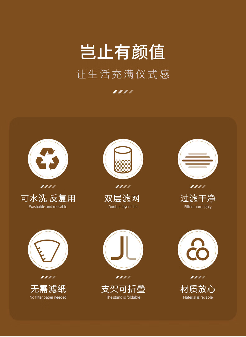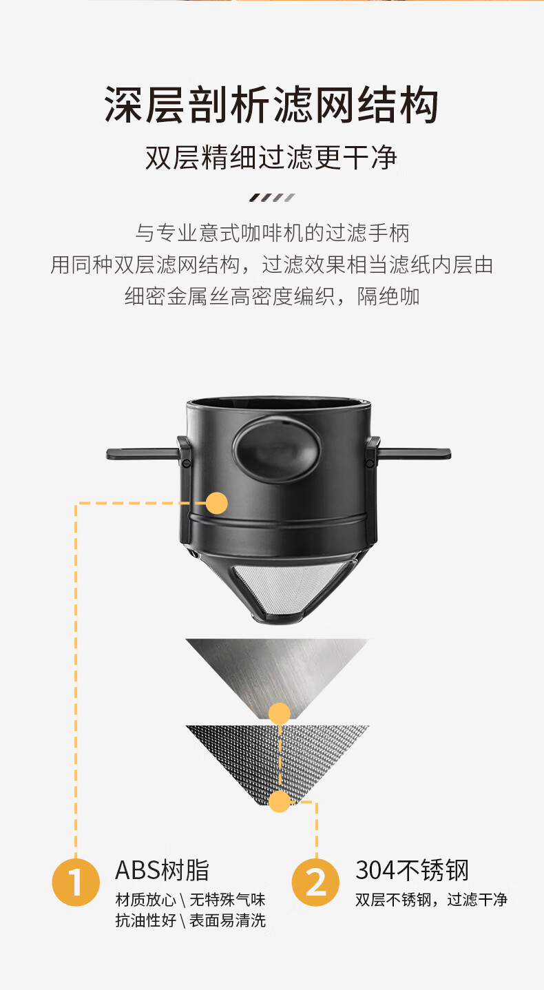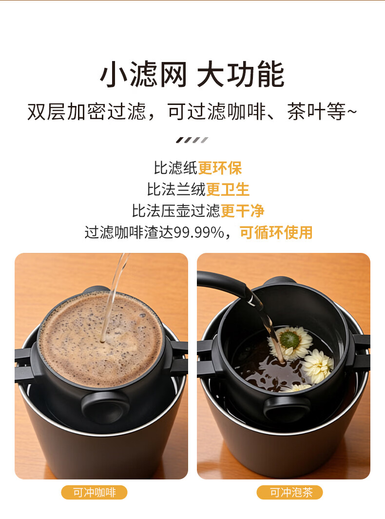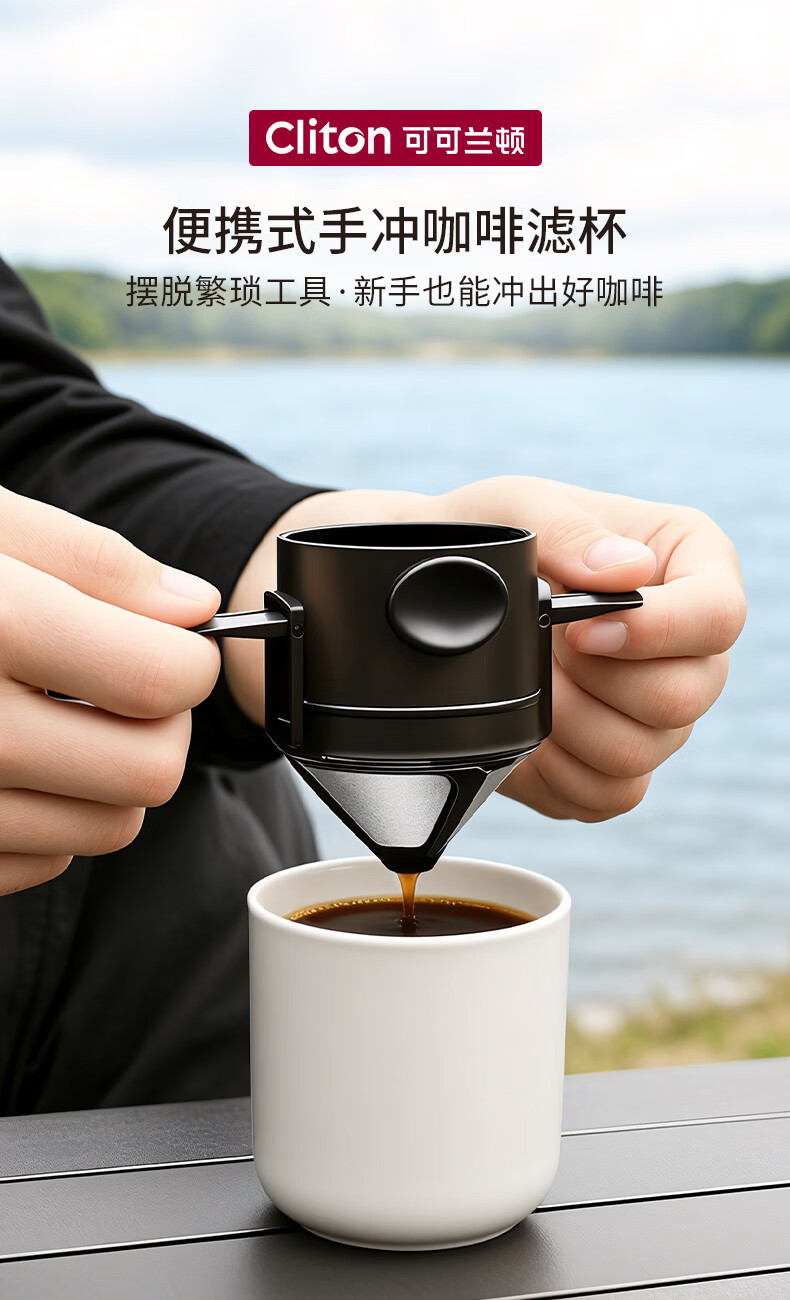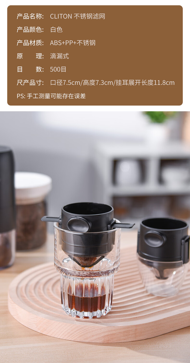 CLITON hand-brewed coffee filter cup drip-type household coffee pot stainless steel coffee filter with holder for 1-2 people