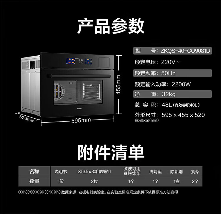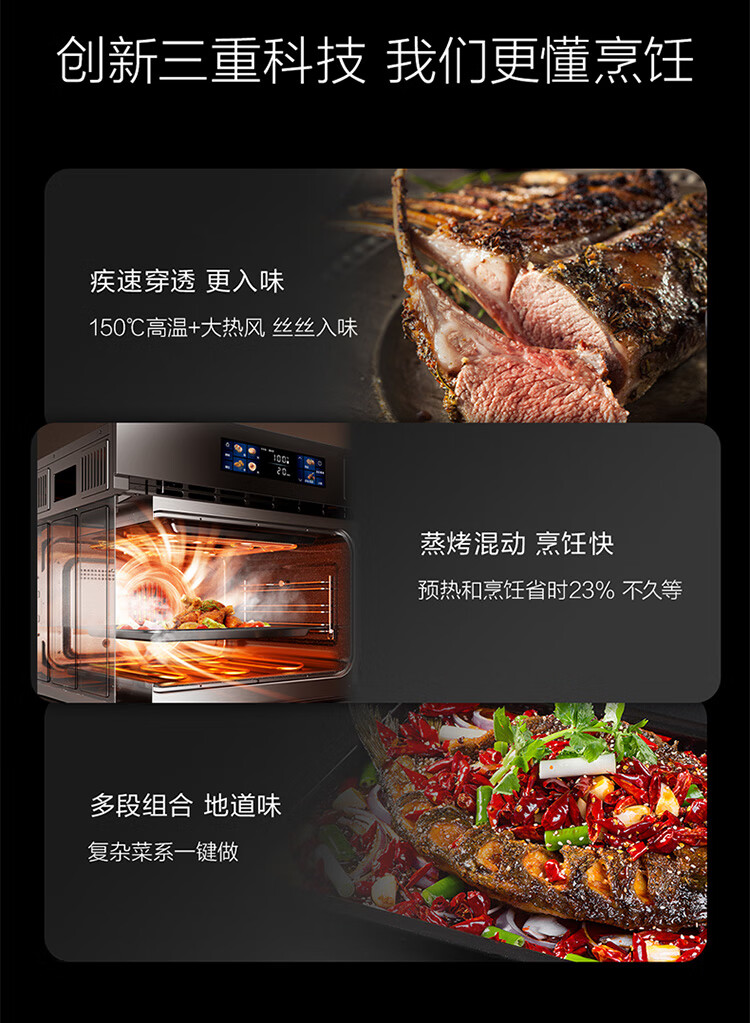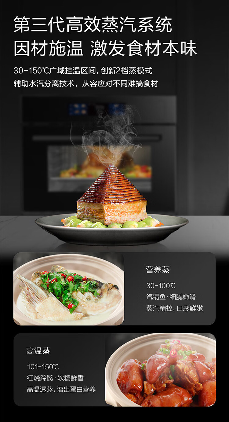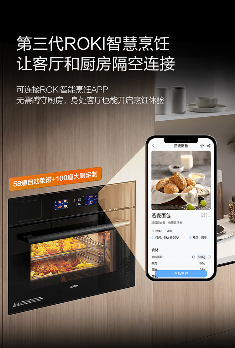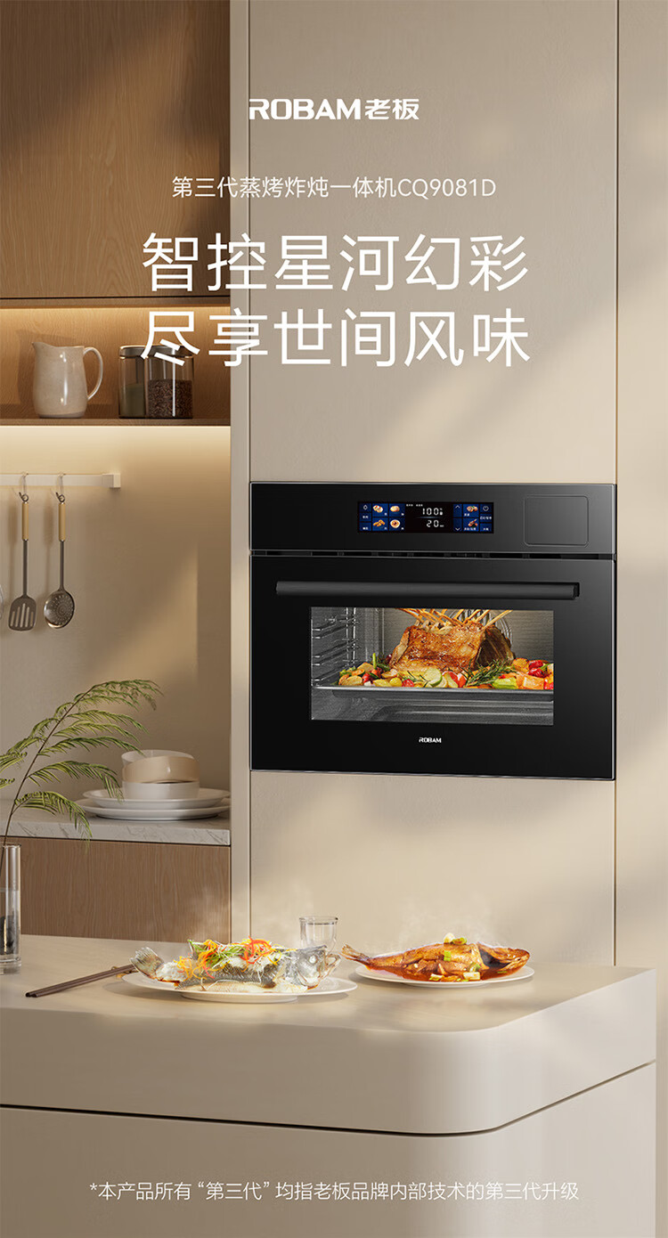 Robam Water Vapor Separation CQ9081D Skimming Color Screen Steaming Oven All-in-One Embedded Steaming, Baking, Frying and Stewing Enamel Liner Multifunctional Oven