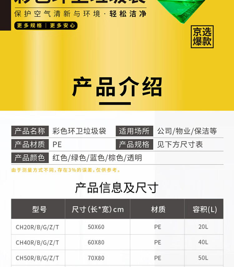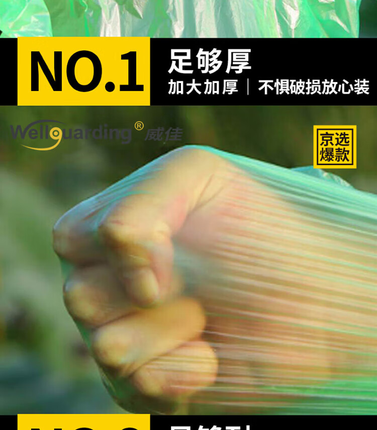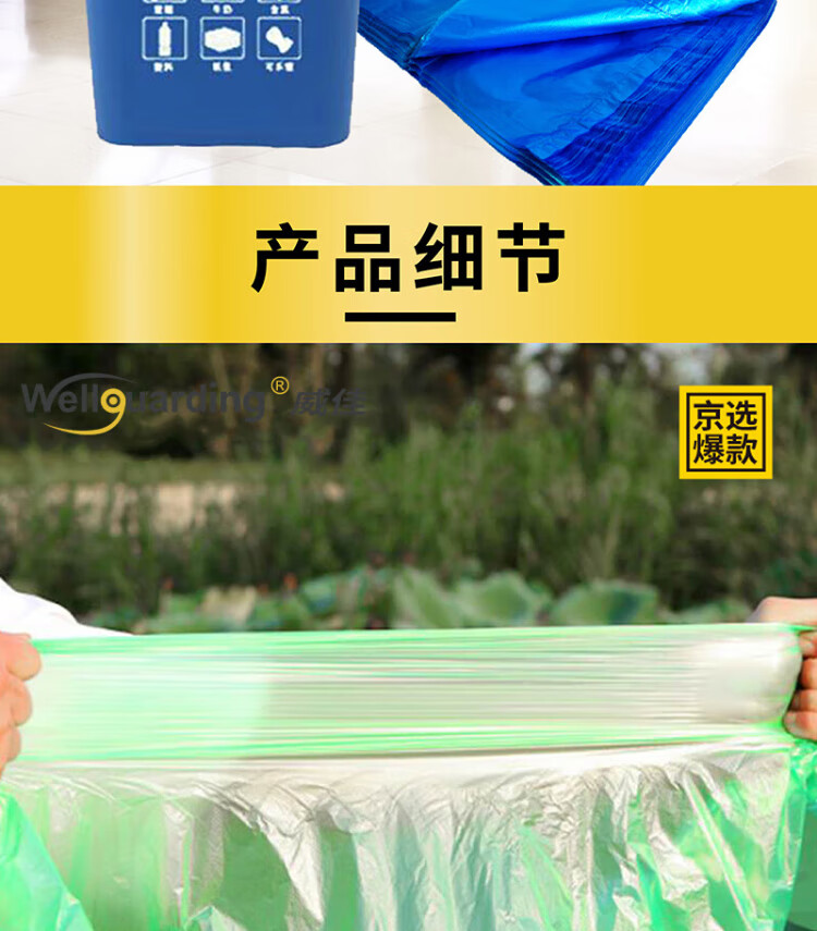 Weijia large garbage bag blue medium 60*80cm40L recyclable classified garbage bag thickened commercial flat mouth property garbage bag 50 pieces