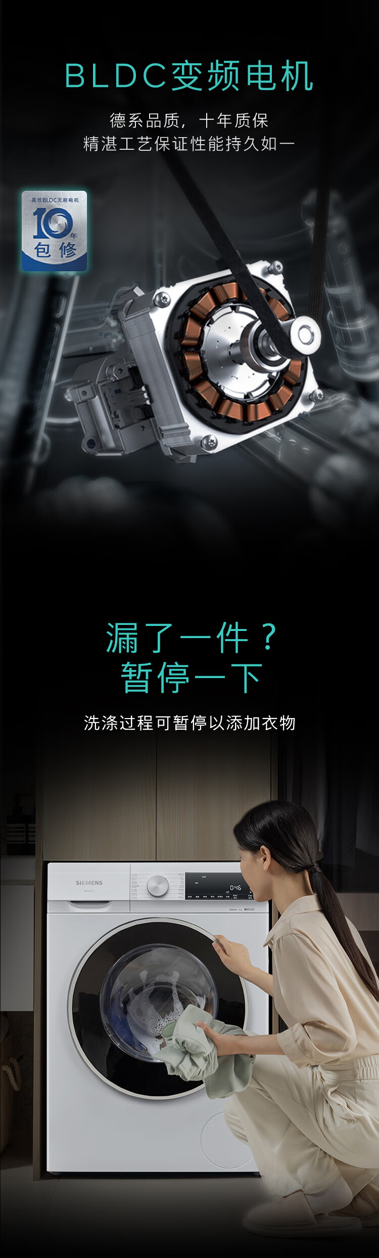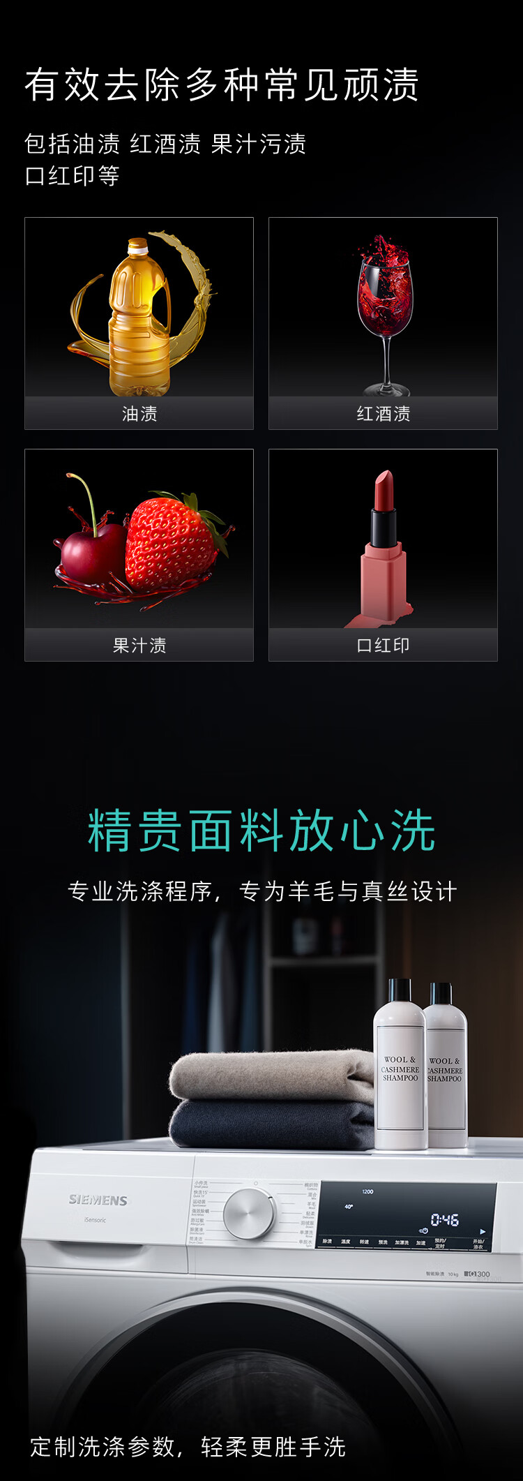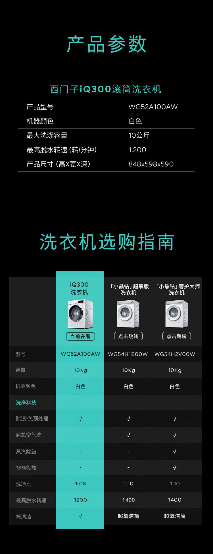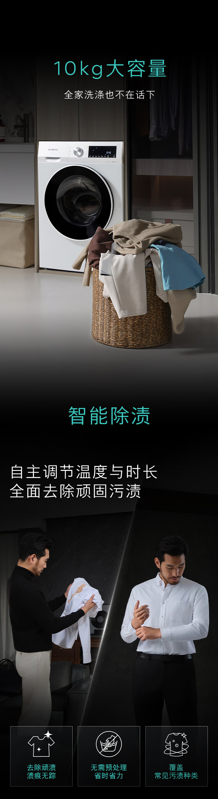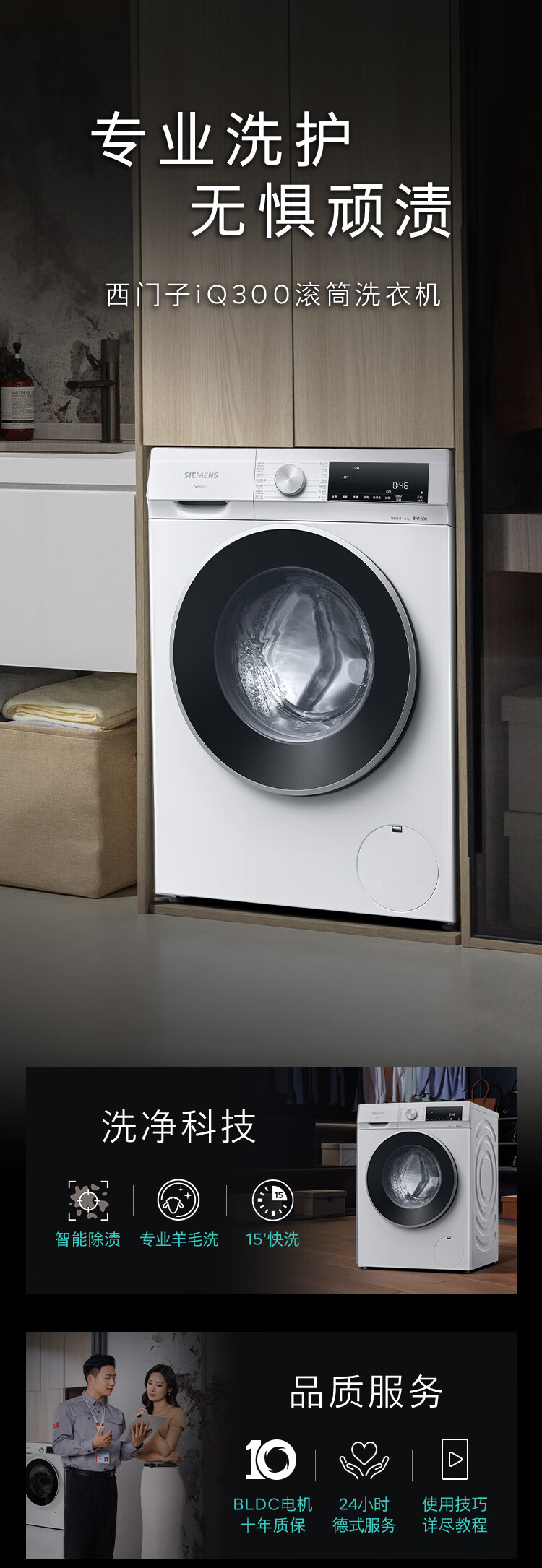 SIEMENS iQ300 10KG large capacity fully automatic drum washing machine intelligent stain removal powerful mite removal wool wash 15 minutes quick wash hypoallergenic WG52A100AW