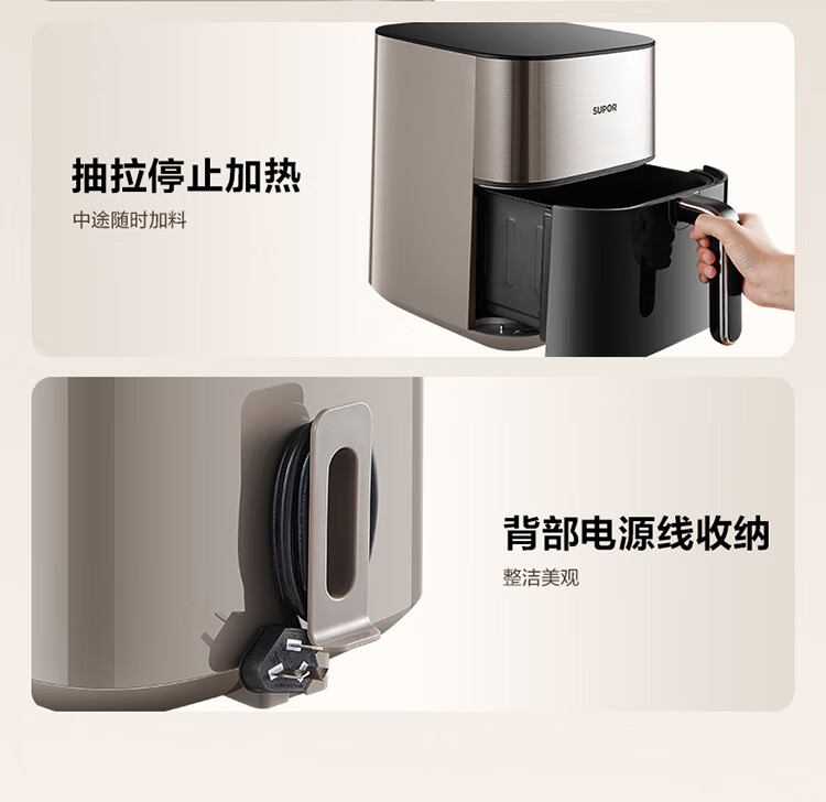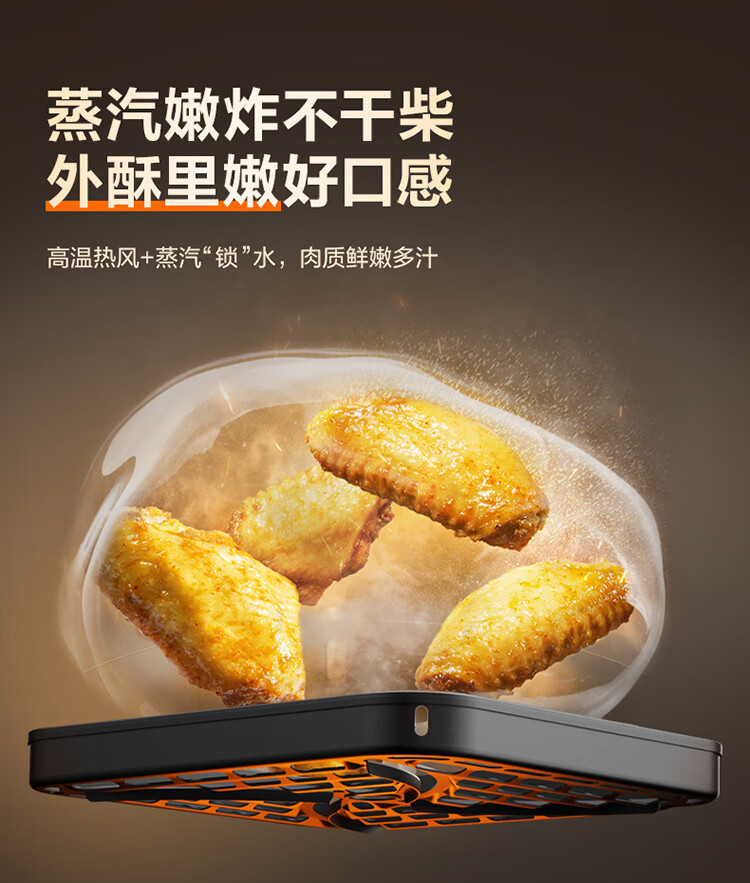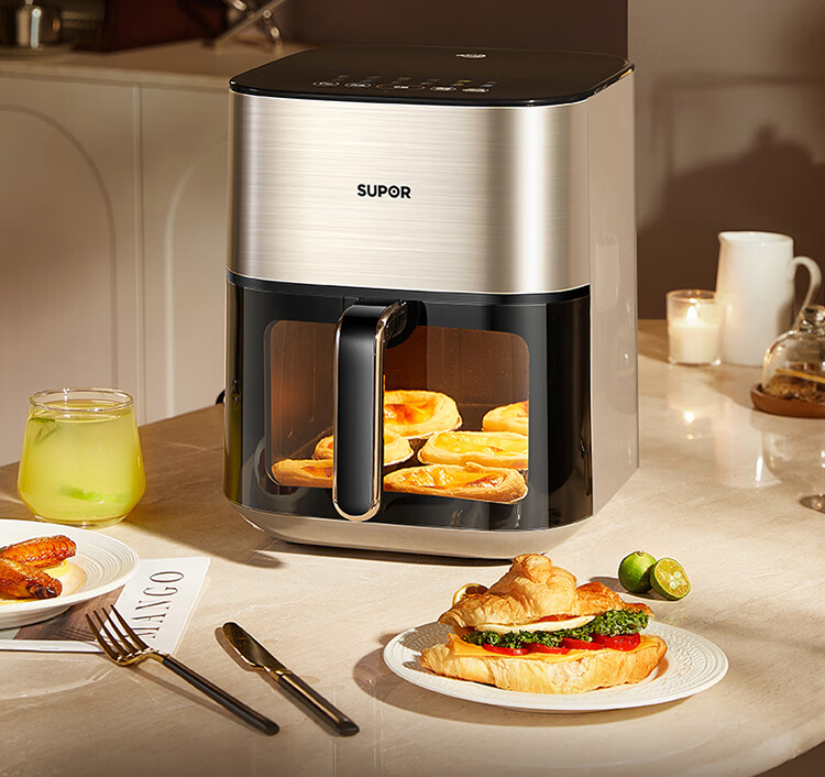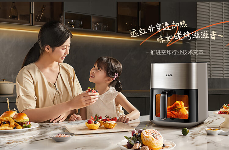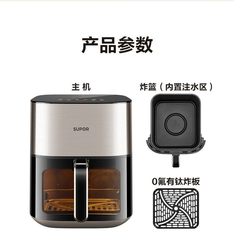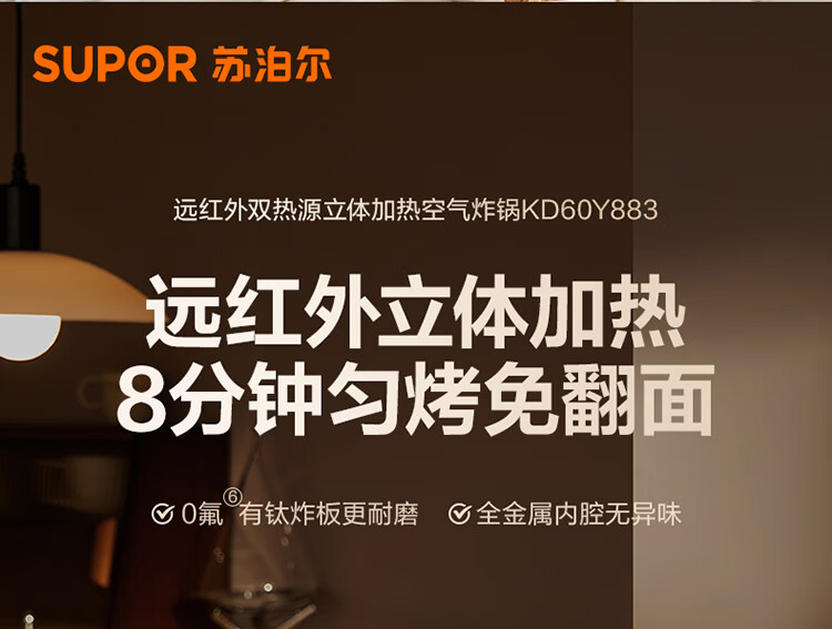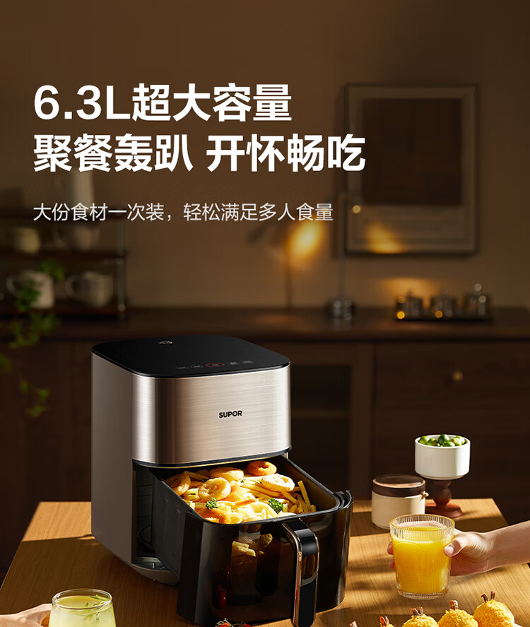 SUPOR air fryer far infrared penetration heating household 6.3L large capacity no-turn French fries machine dual heat source steam tender frying multifunctional electric fryer KD60Y883