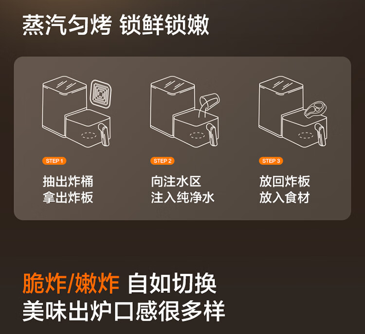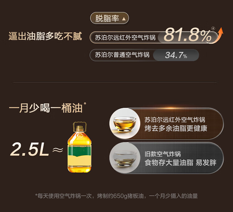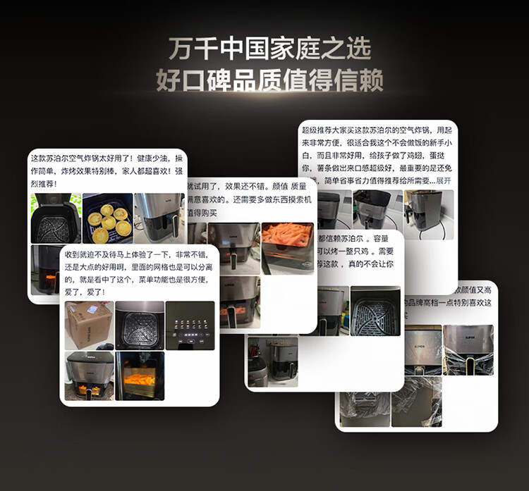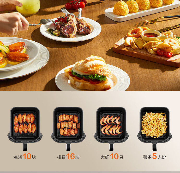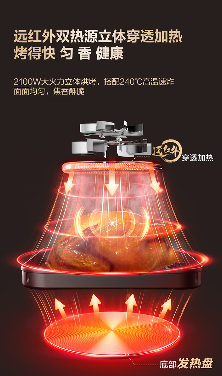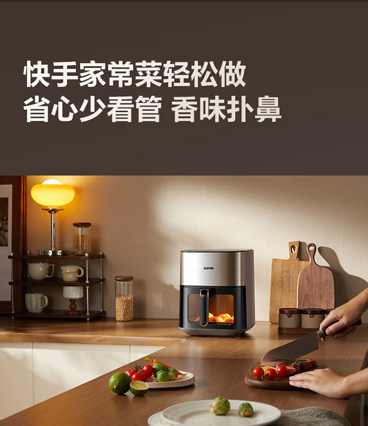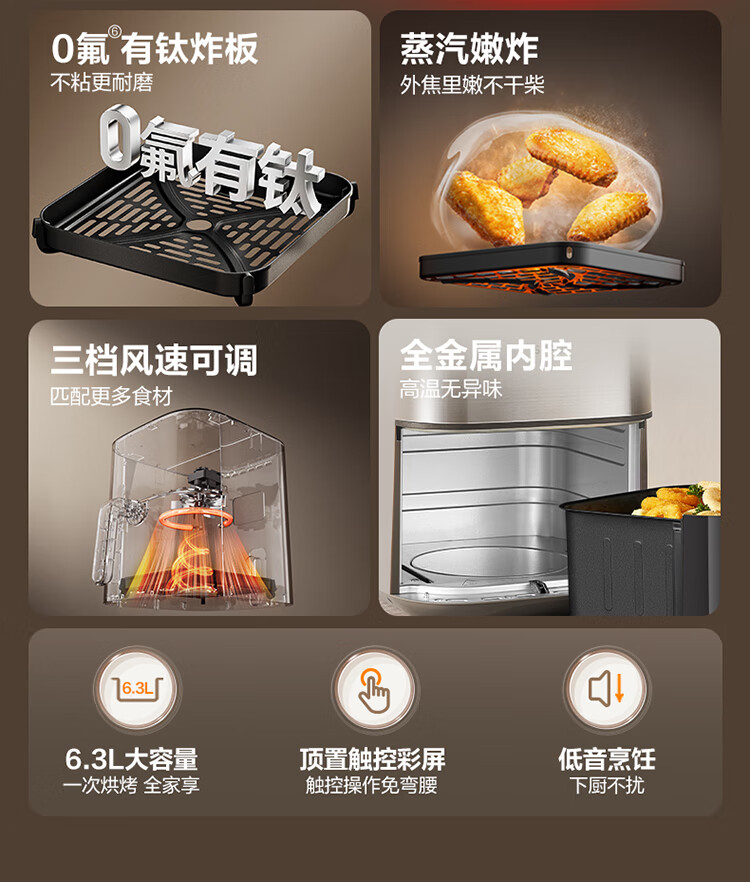 SUPOR air fryer far infrared penetration heating household 6.3L large capacity no-turn French fries machine dual heat source steam tender frying multifunctional electric fryer KD60Y883