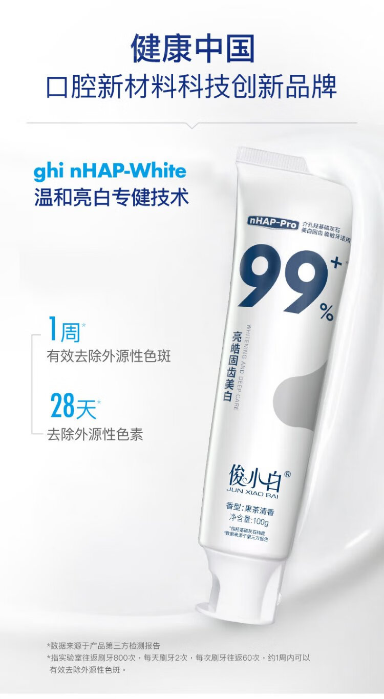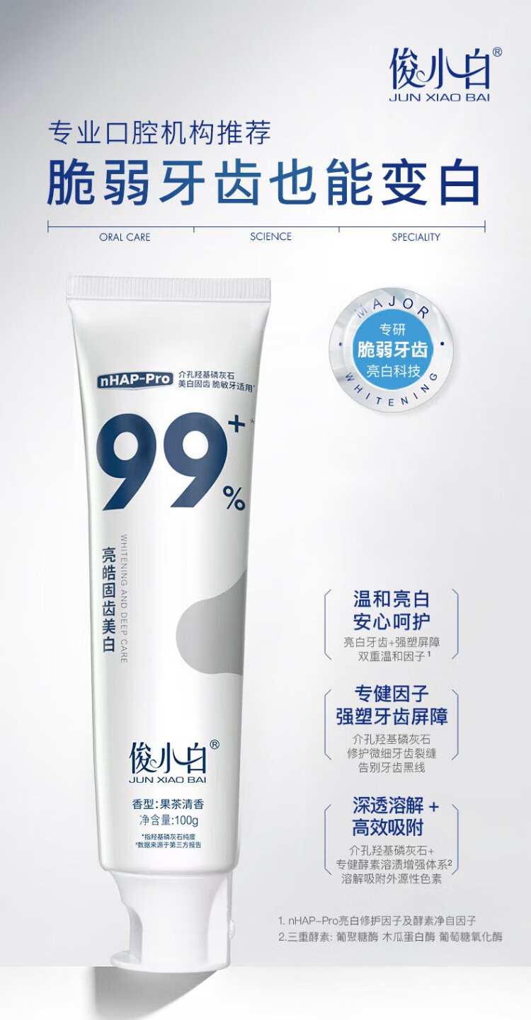 Junxiaobai Hydroxyapatite Toothpaste Enzyme Whitening Teeth Remove Yellowing Remove Smoke Stains Fluoride Solid Teeth Whitening Toothpaste 100g*3