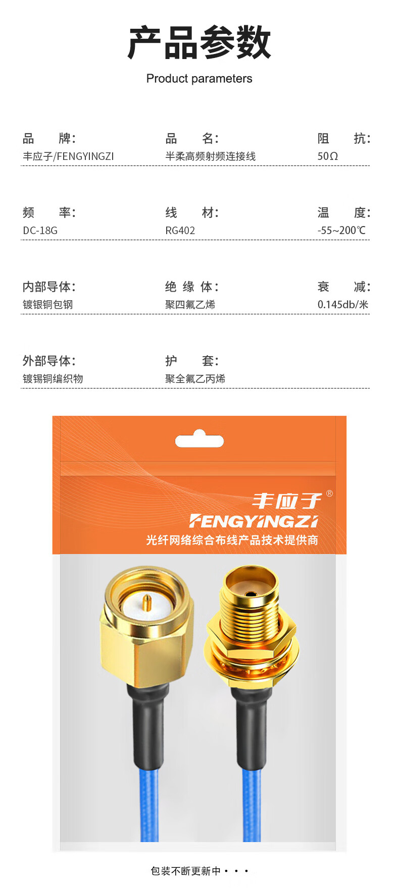 Fengyingzi SMA male to SMA female RF connection cable RG402 semi-flexible high frequency cable extension cable 18G 1 meter FYZ-XH308
