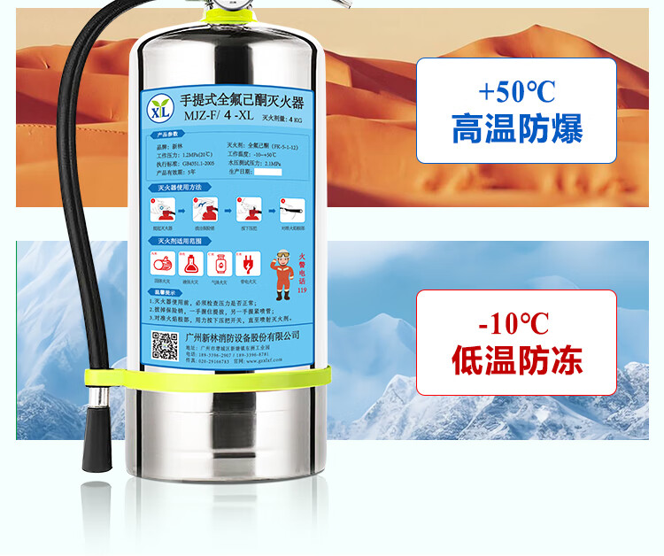 Xinlin portable perfluorohexanone fire extinguisher 8kg hospital energy storage cabinet motor room archives N1230 clean gas fire extinguisher
