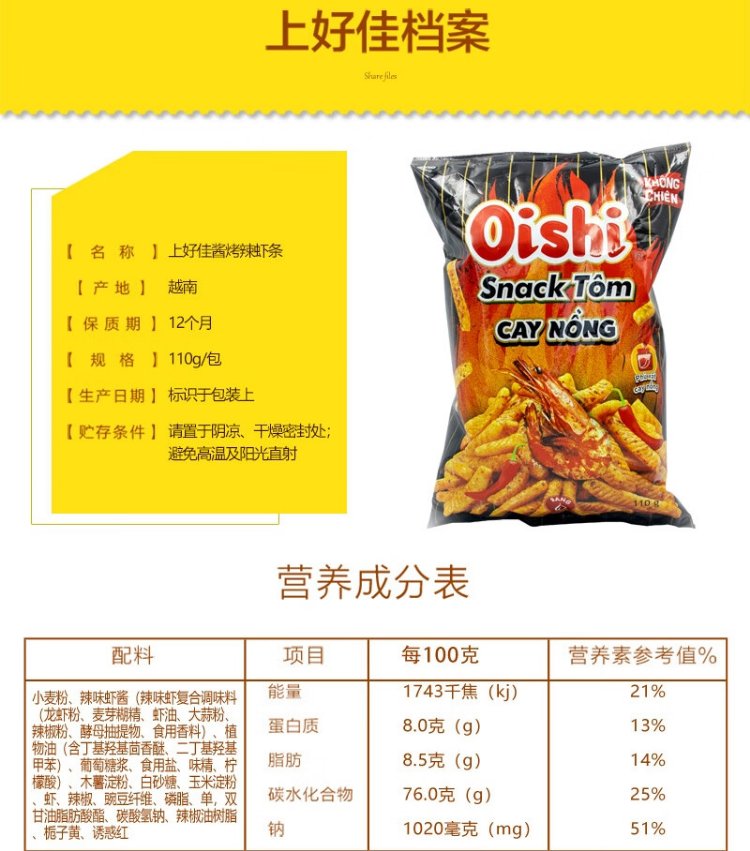 Shanghaojia Sauce Grilled Spicy Shrimp Crackers 110g Bag Imported from Vietnam Office Snacks Puffed Snacks