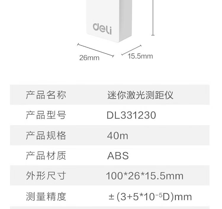 Deli laser range finder high-precision mini electronic ruler infrared home measurement and decoration real-time distance measurement 40m