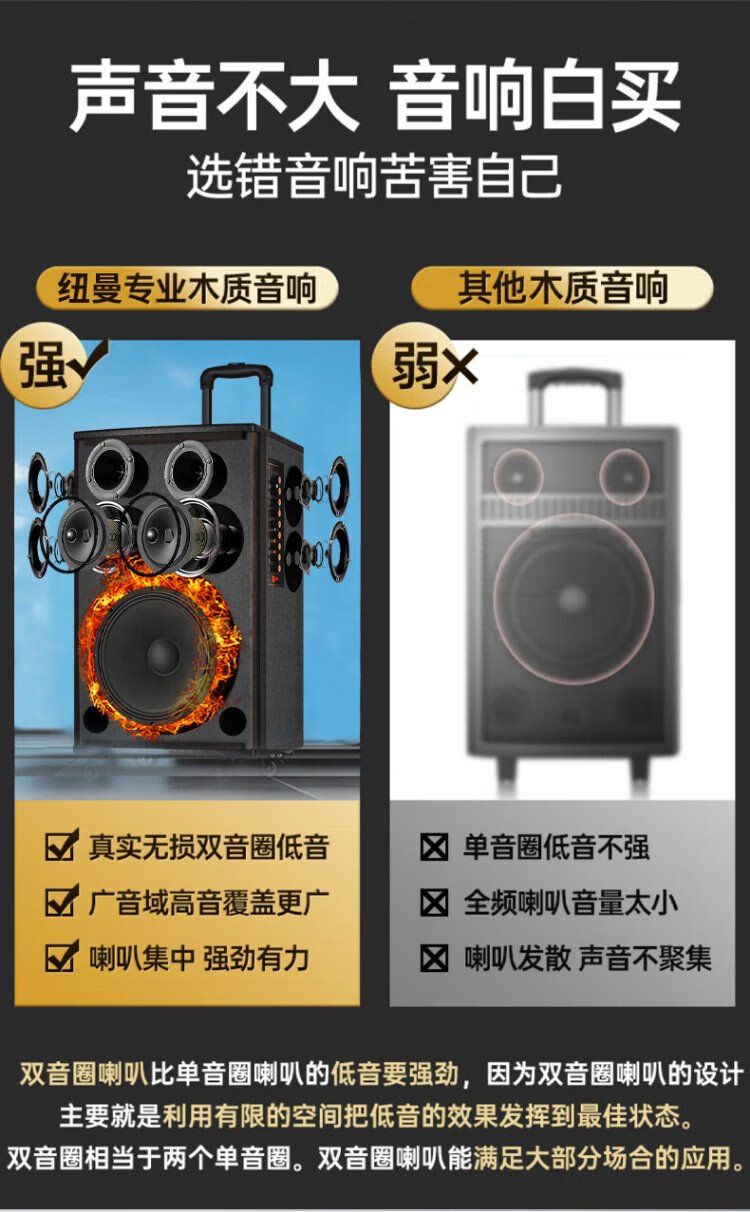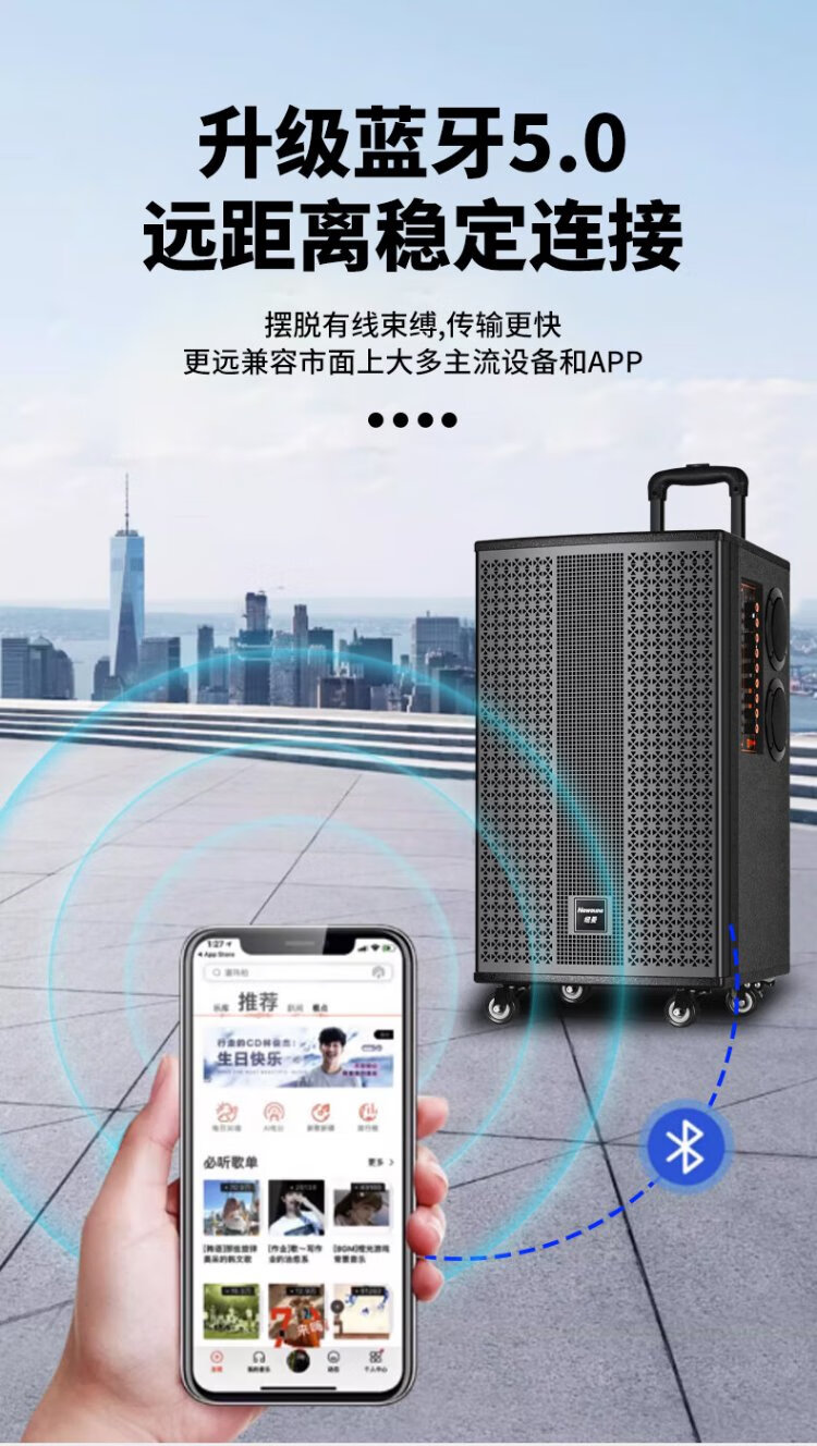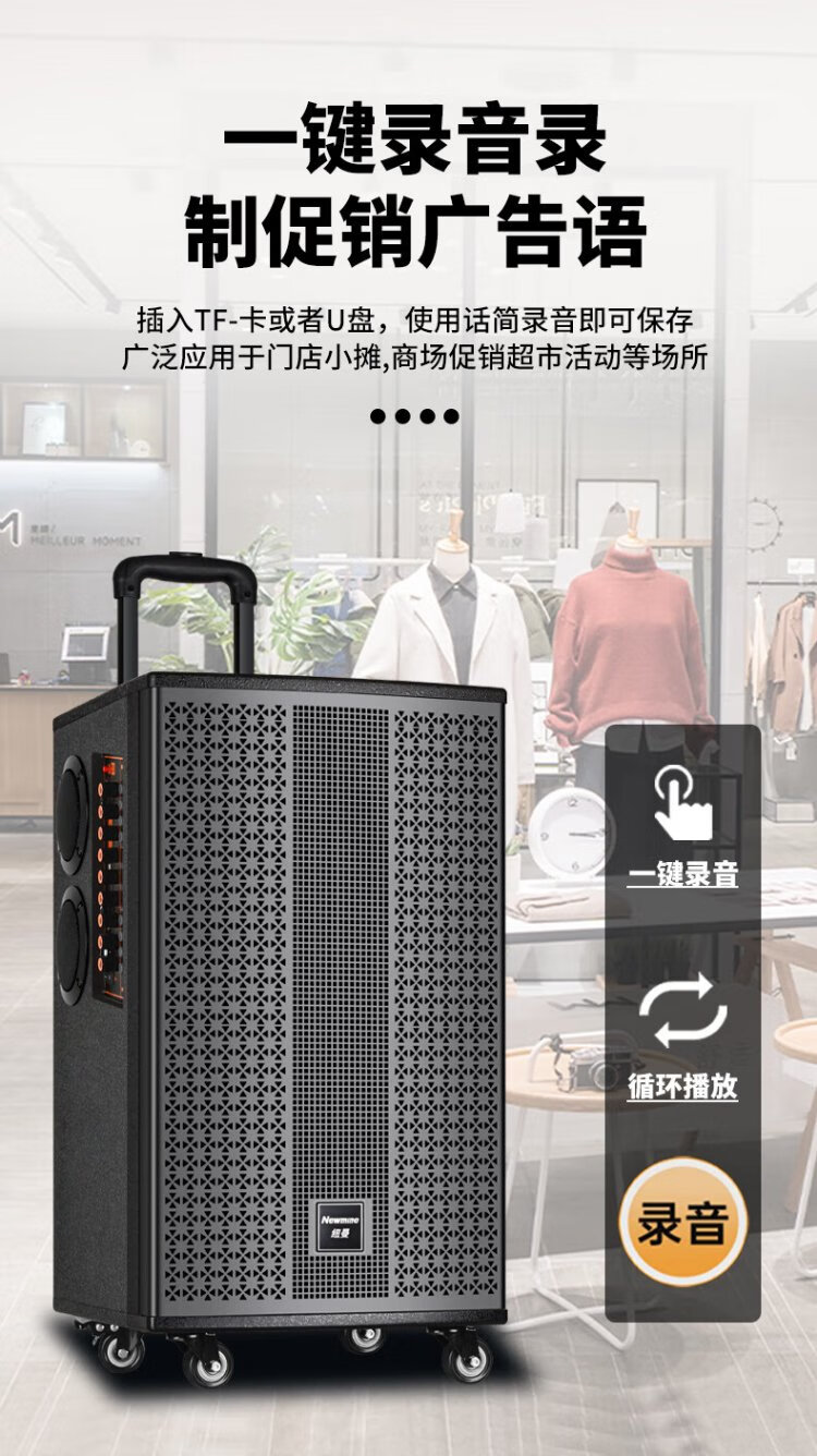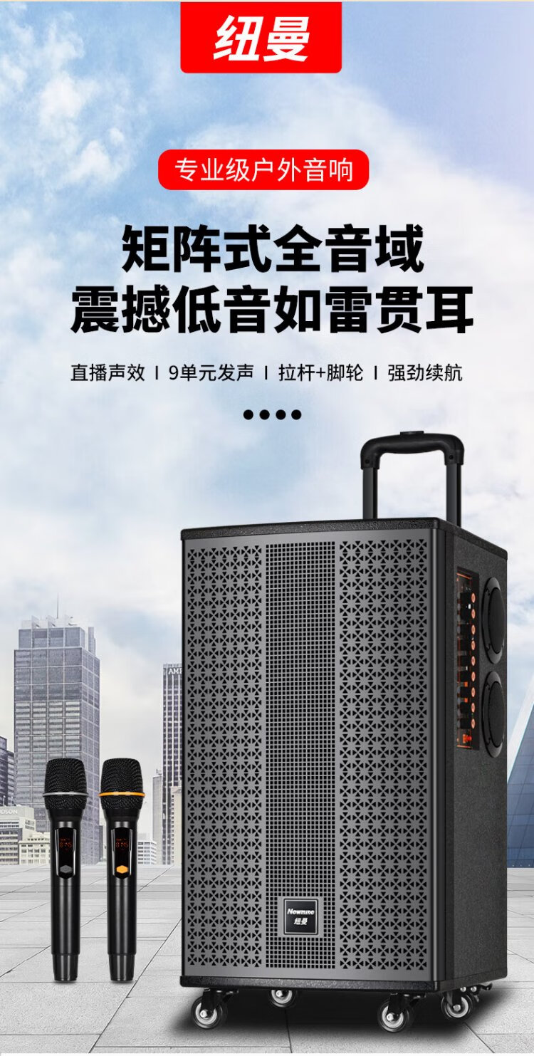 Newman K33 12-inch Square Dance Outdoor Bluetooth Trolley Speaker High Power Portable Electric Acoustic Guitar Folk Instrument Speaker Performance K Song Subwoofer Street Stall Speaker Dual Microphone