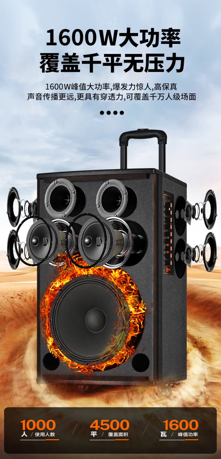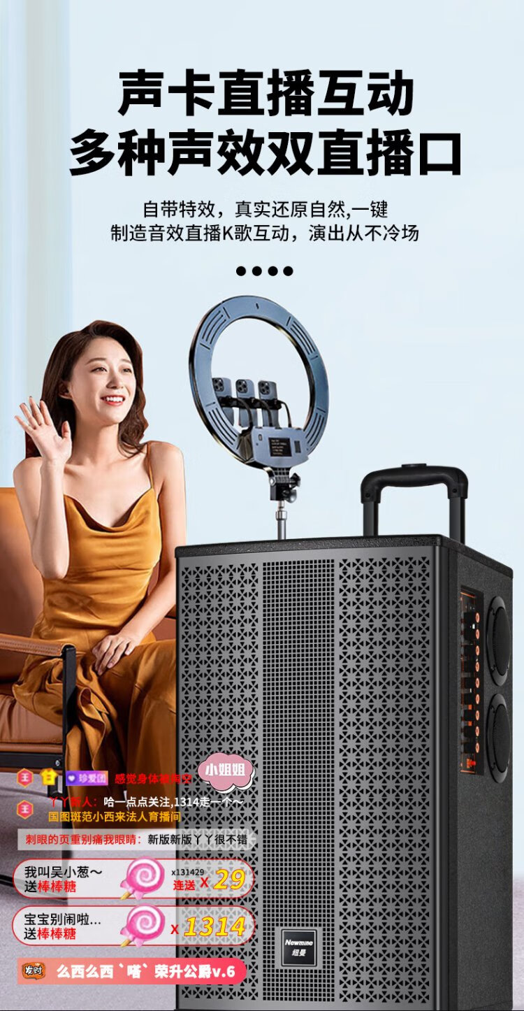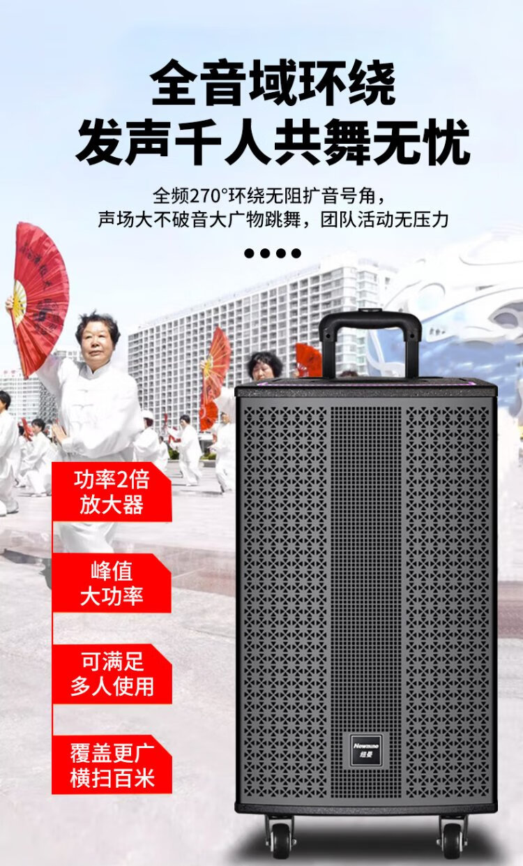 Newman K33 12-inch Square Dance Outdoor Bluetooth Trolley Speaker High Power Portable Electric Acoustic Guitar Folk Instrument Speaker Performance K Song Subwoofer Street Stall Speaker Dual Microphone