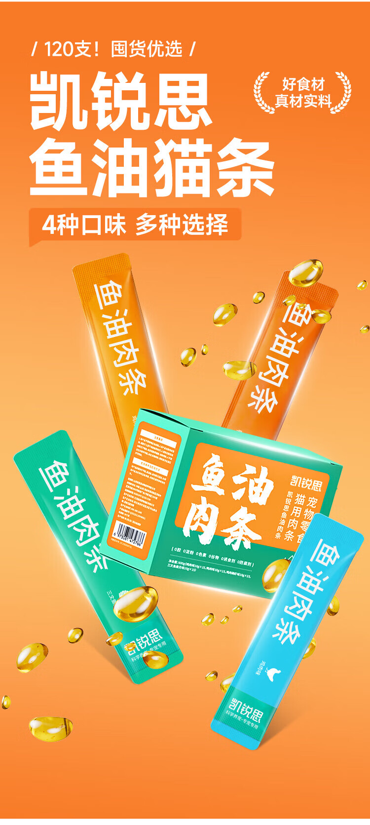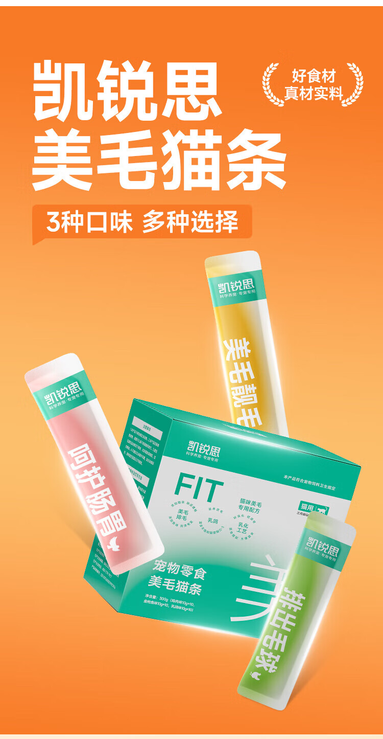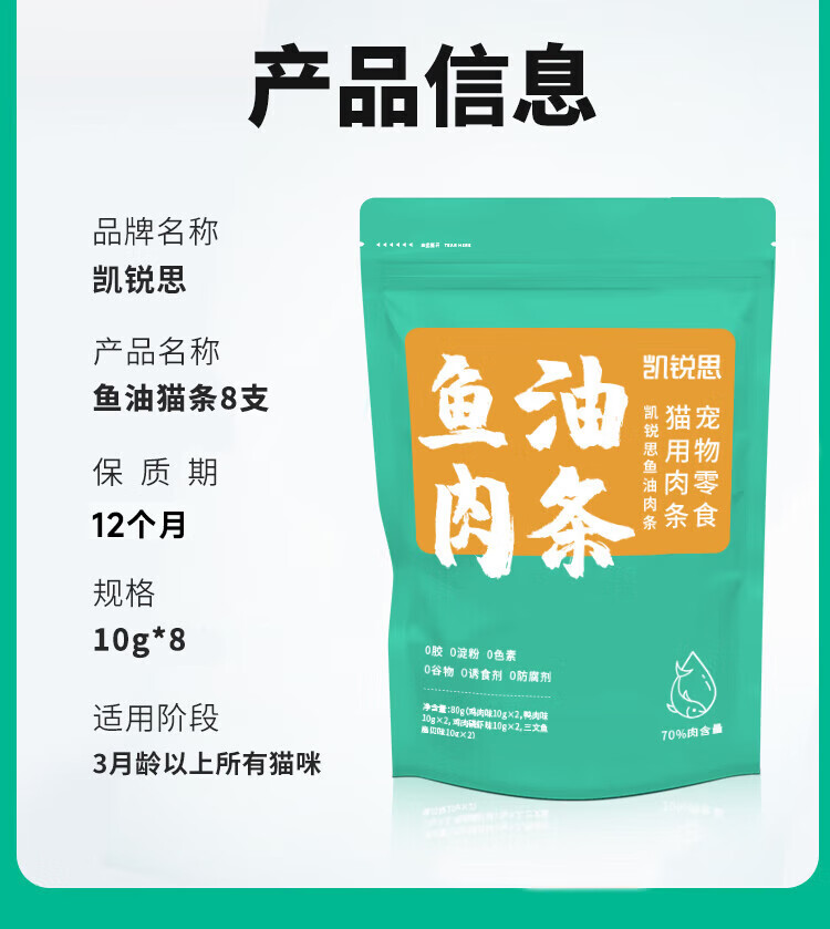 Kairis -3 fish oil cat strips, canned cat snacks, adult and young cat wet food mixed flavors 80g (10g*8 pieces)