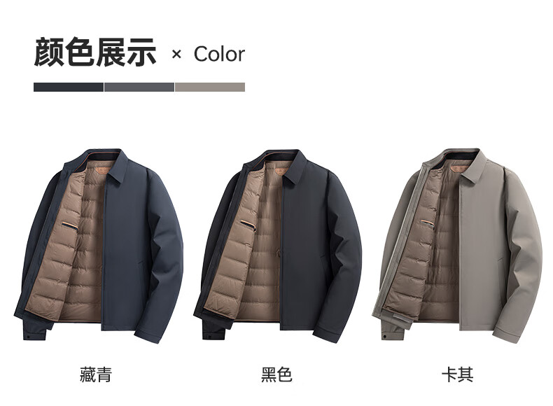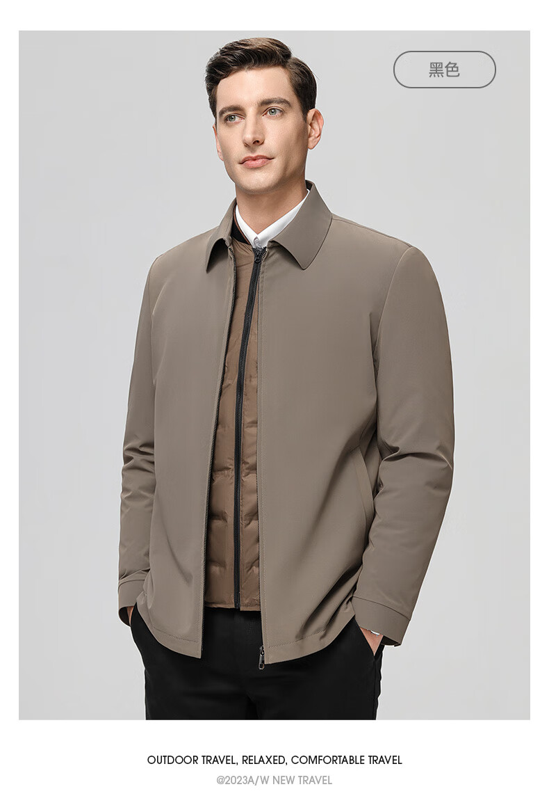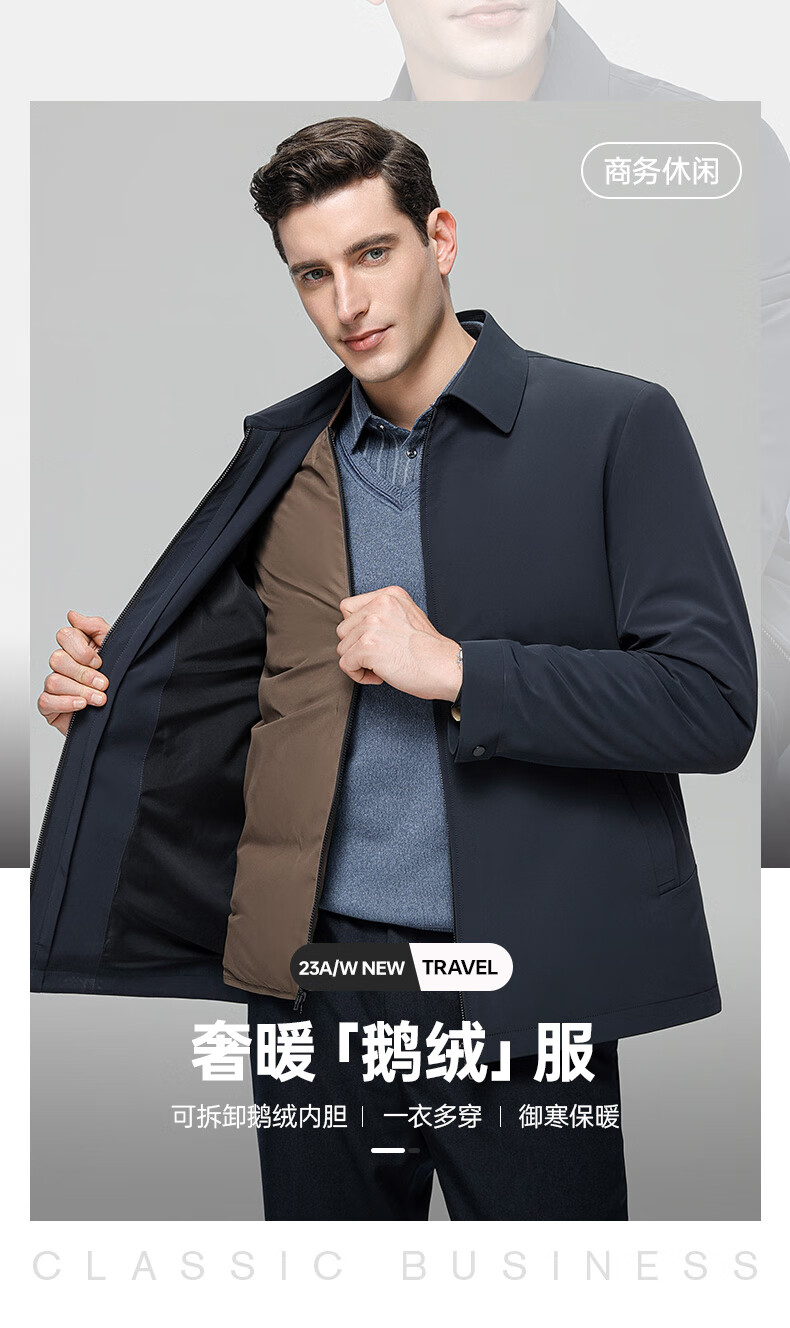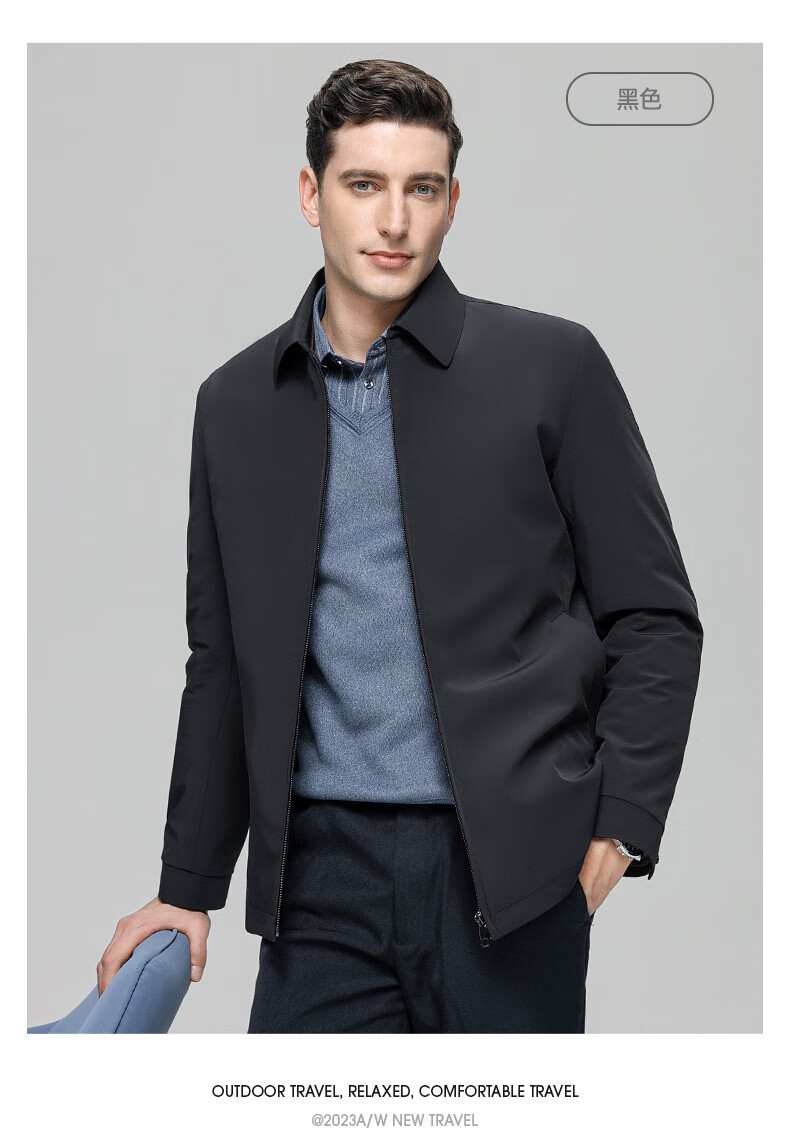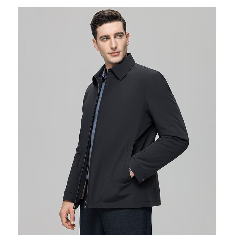 YAYA goose down jacket, down jacket, men's short lapel, young and middle-aged autumn and winter warm cadre jacket A29 black 180