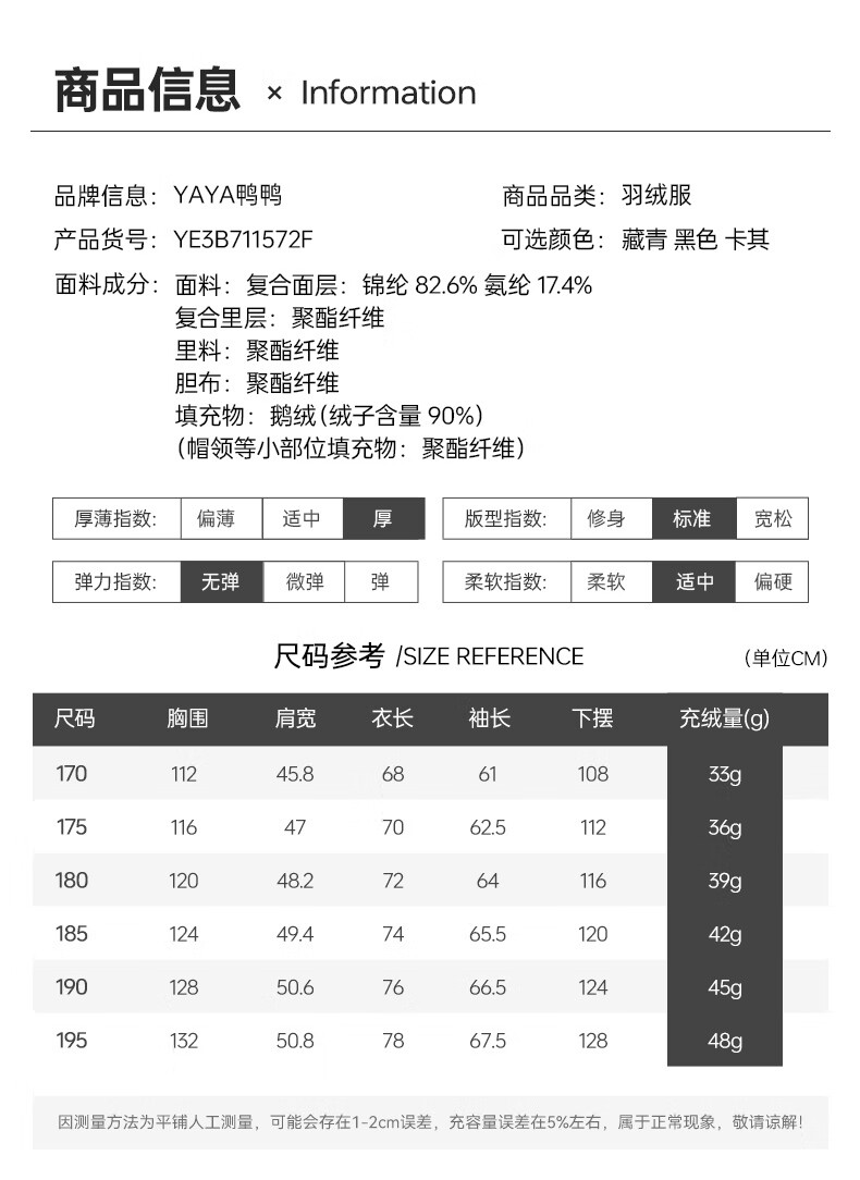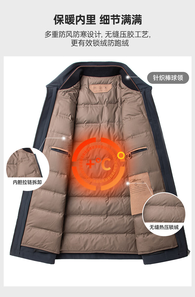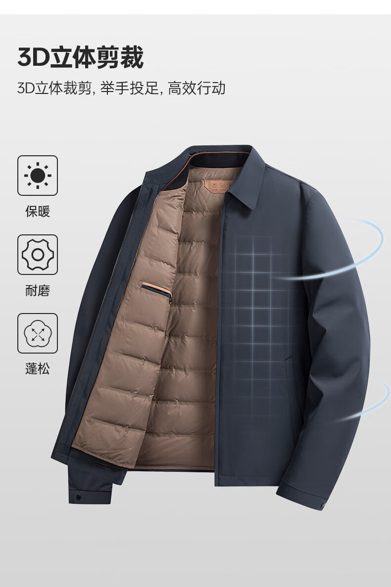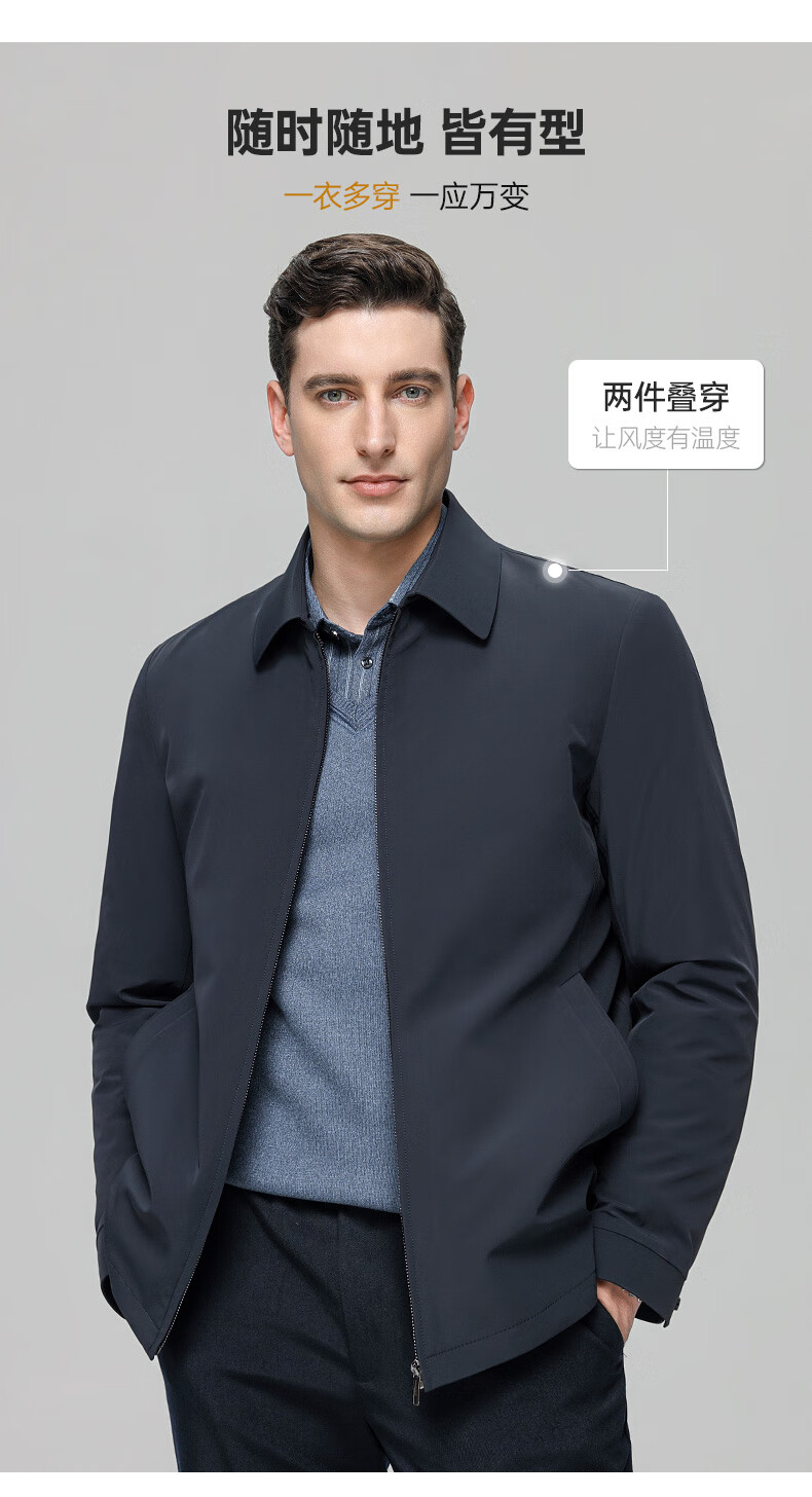 YAYA goose down jacket, down jacket, men's short lapel, young and middle-aged autumn and winter warm cadre jacket A29 black 180