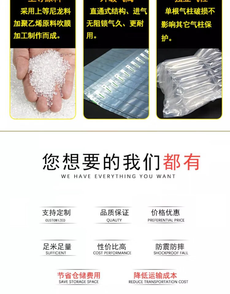 Minggu air column bag shock-proof packaging bag milk powder bubble bag anti-fall filled air bag bag inflatable bubble film bubble column bag 7 columns diameter 7-9cm high 10-12cm CD393392