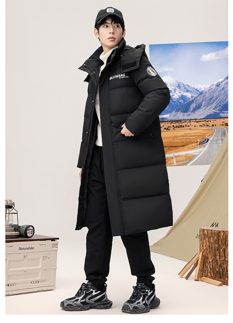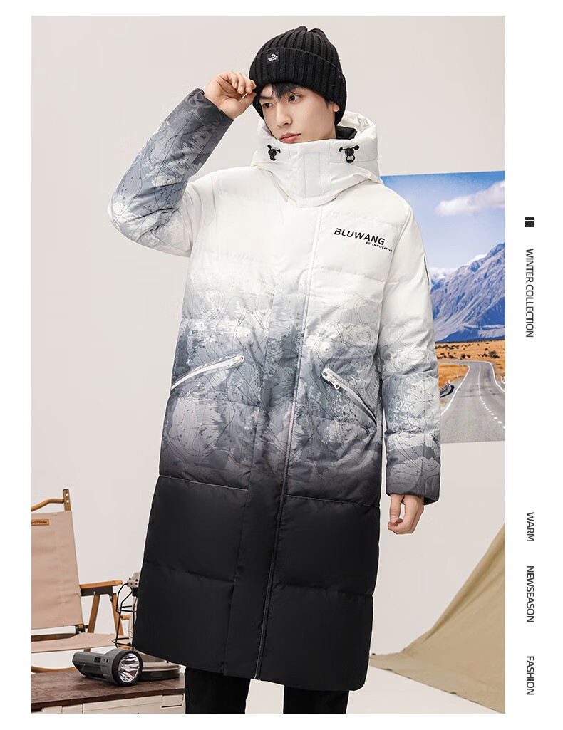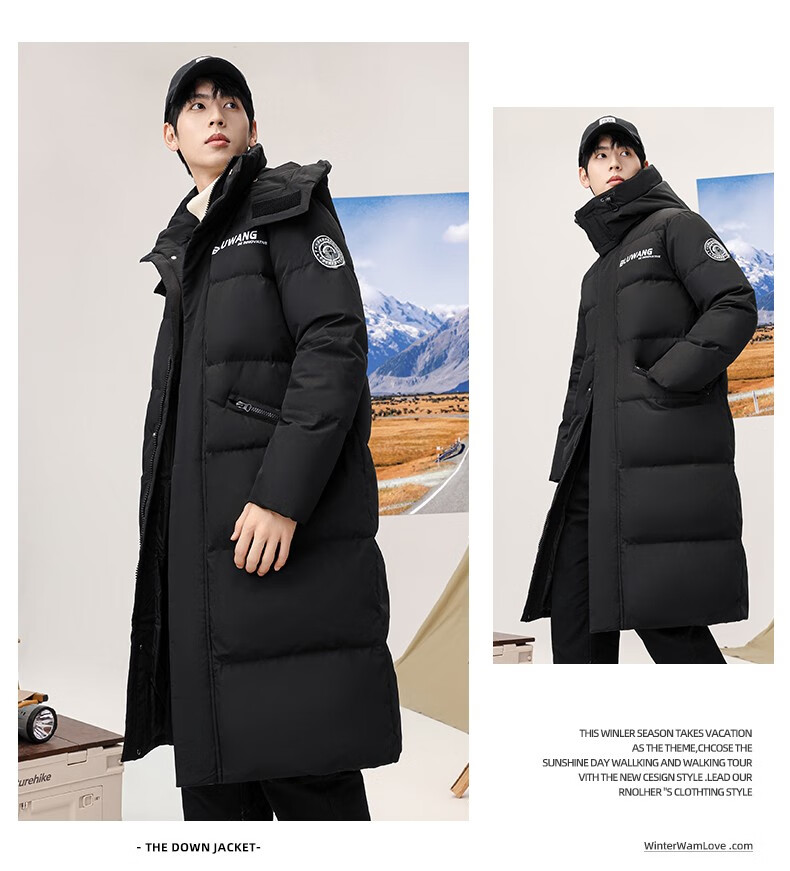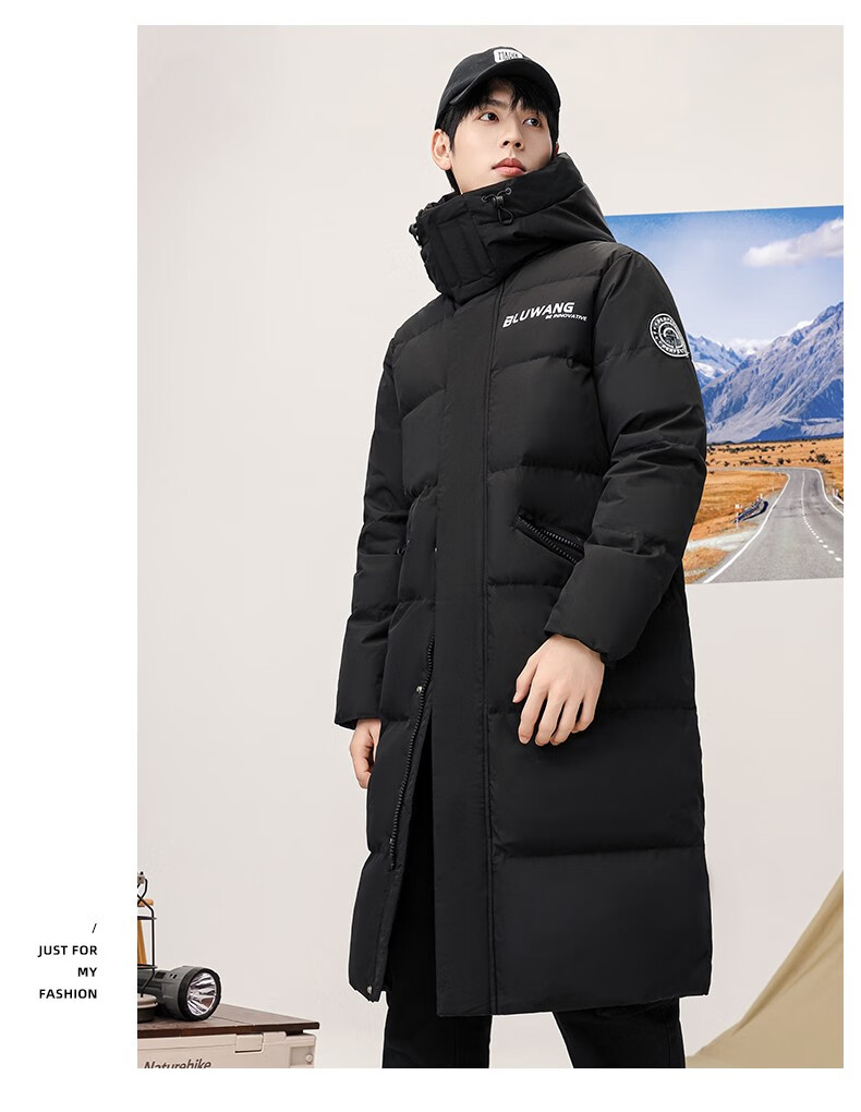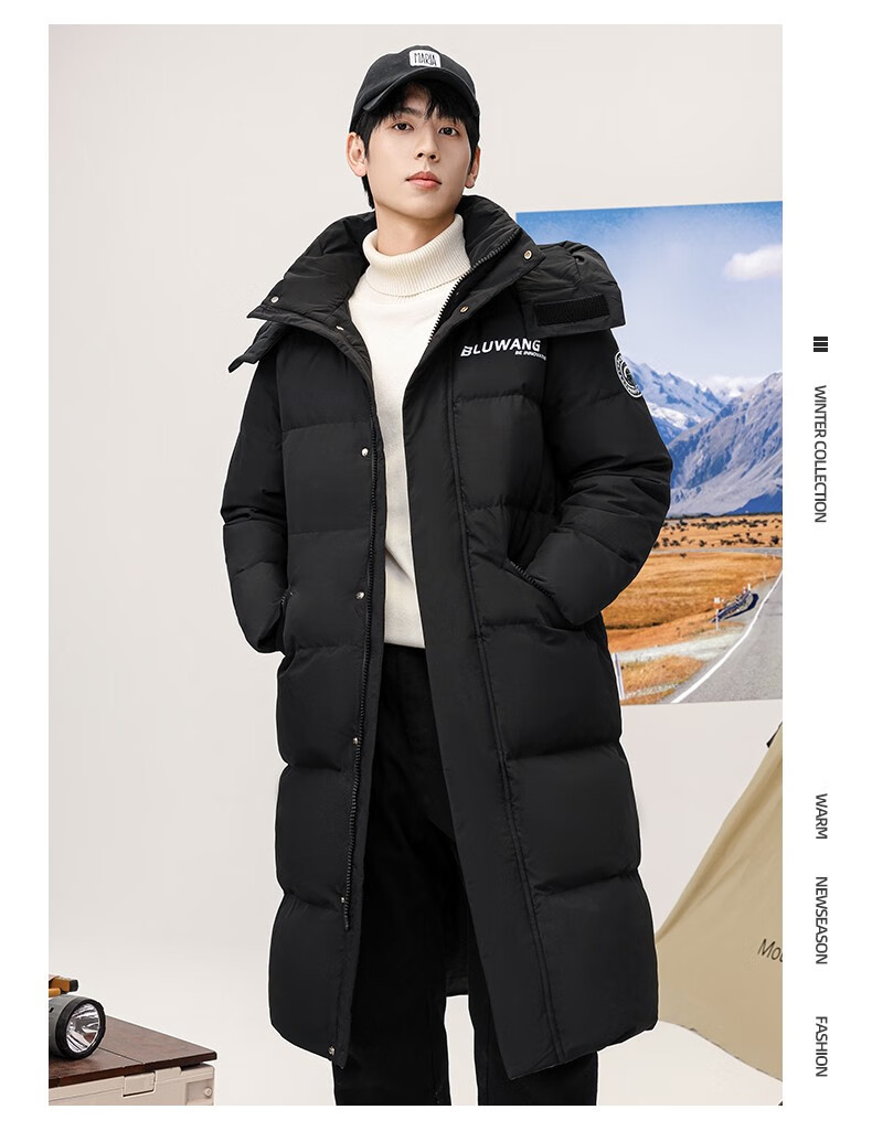 Yalu down jacket men's mid-length winter thickened warm over-the-knee hooded men's jacket extreme cold fashion casual cold weather clothing