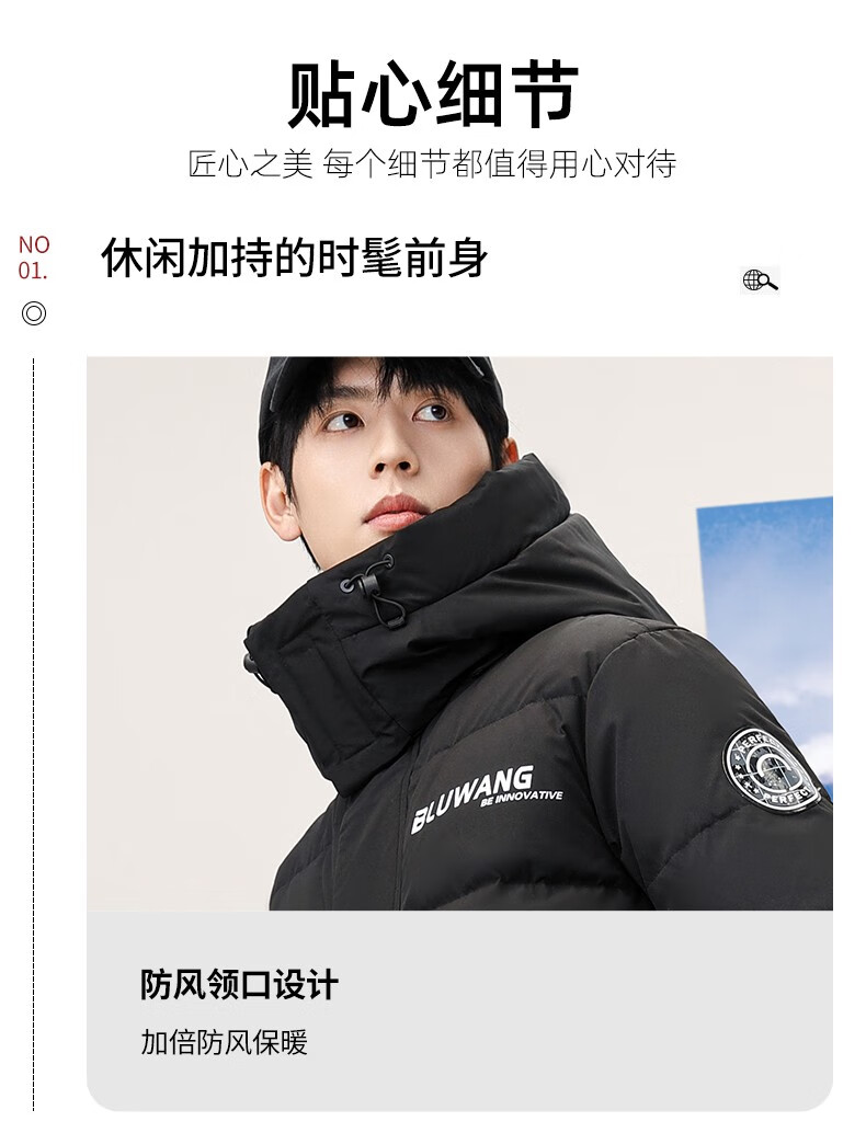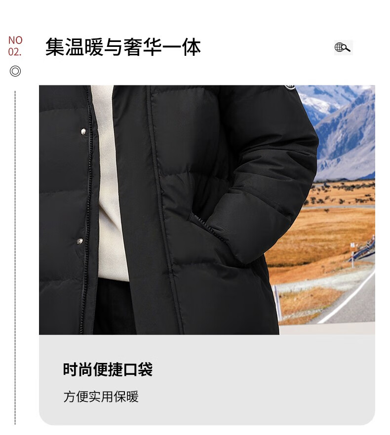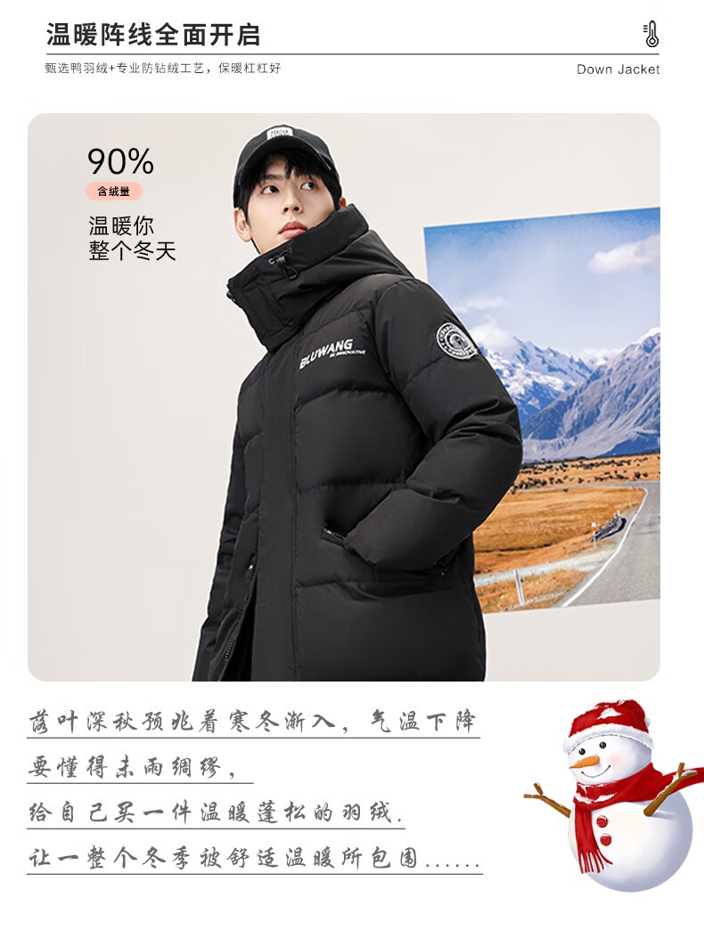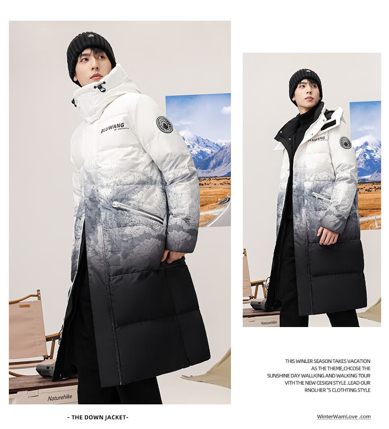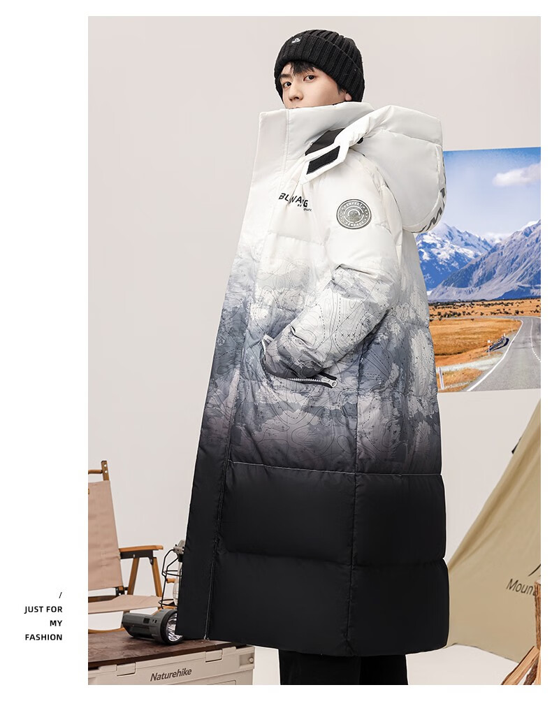 Yalu down jacket men's mid-length winter thickened warm over-the-knee hooded men's jacket extreme cold fashion casual cold weather clothing