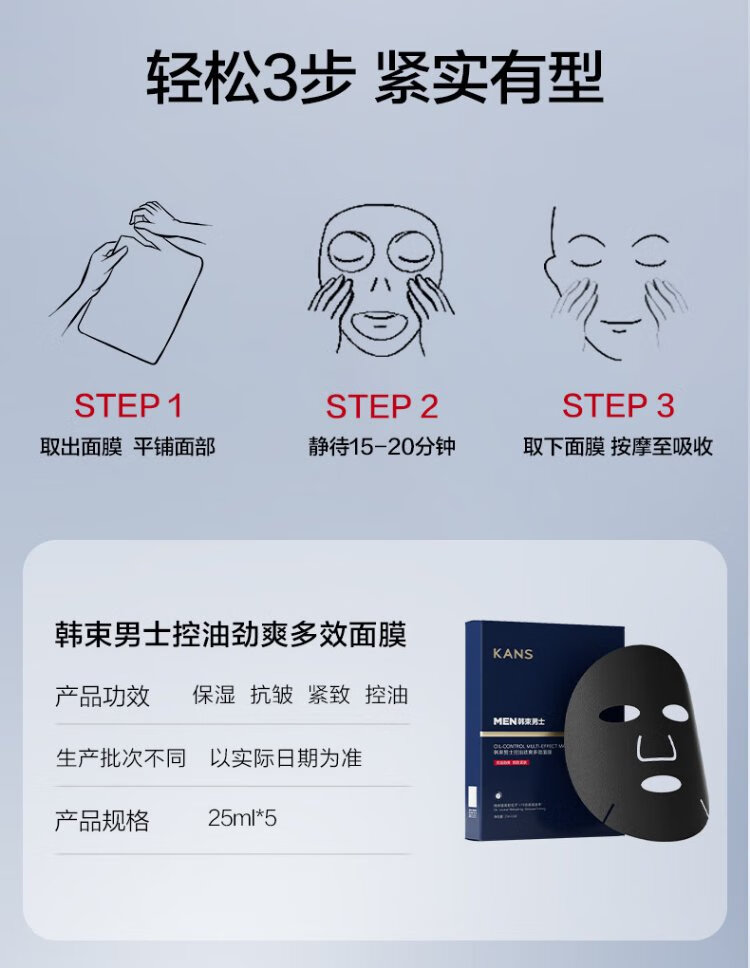 Korean men's anti-wrinkle, firming, hydrating and moisturizing facial mask and skin care products, special for shrinking pores, a practical gift for your boyfriend