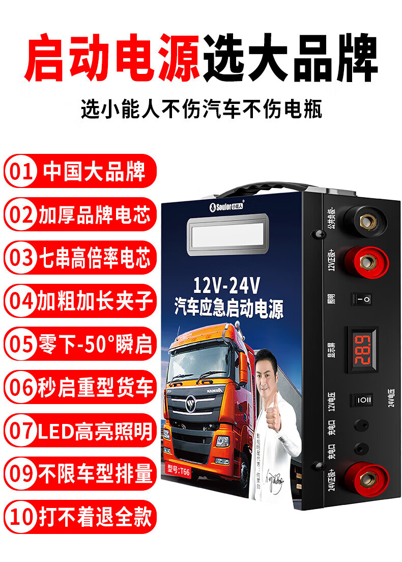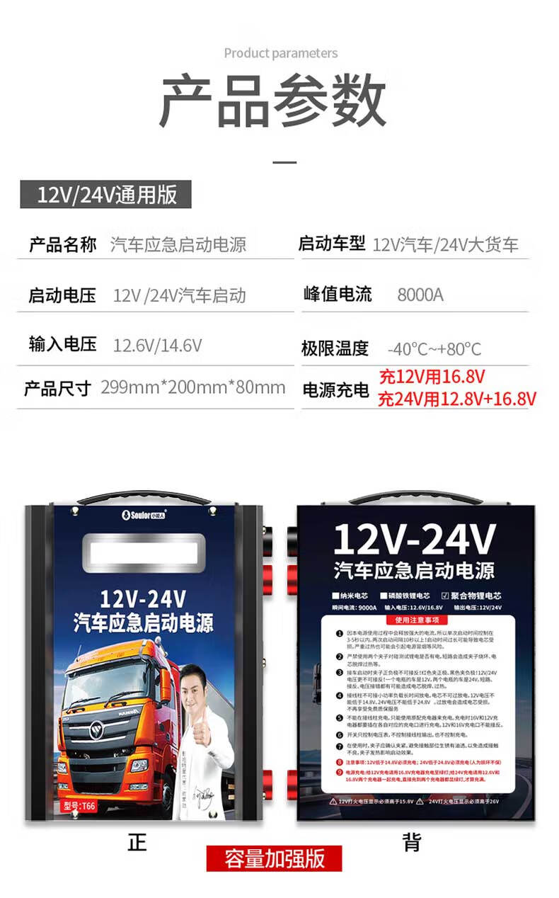 Soulor car emergency starting power supply 12v24v universal truck truck strong pick-up power bank rescue lighter T66