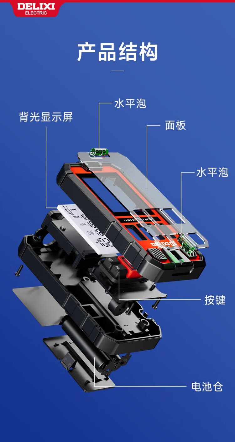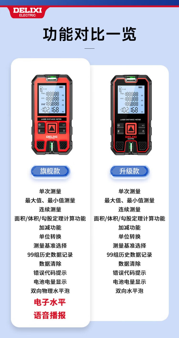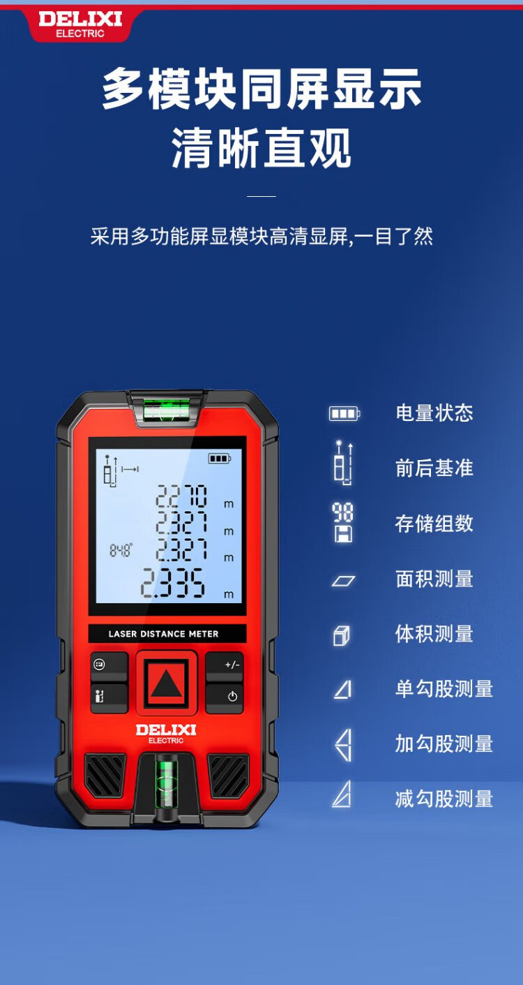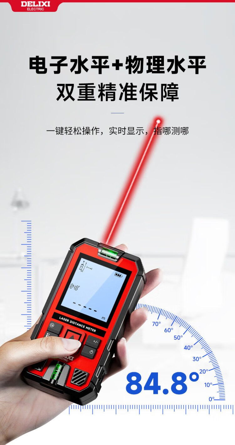 DELIXI ELECTRIC laser range finder voice broadcast handheld high-precision electronic ruler infrared outdoor household room measuring instrument 100 meters
