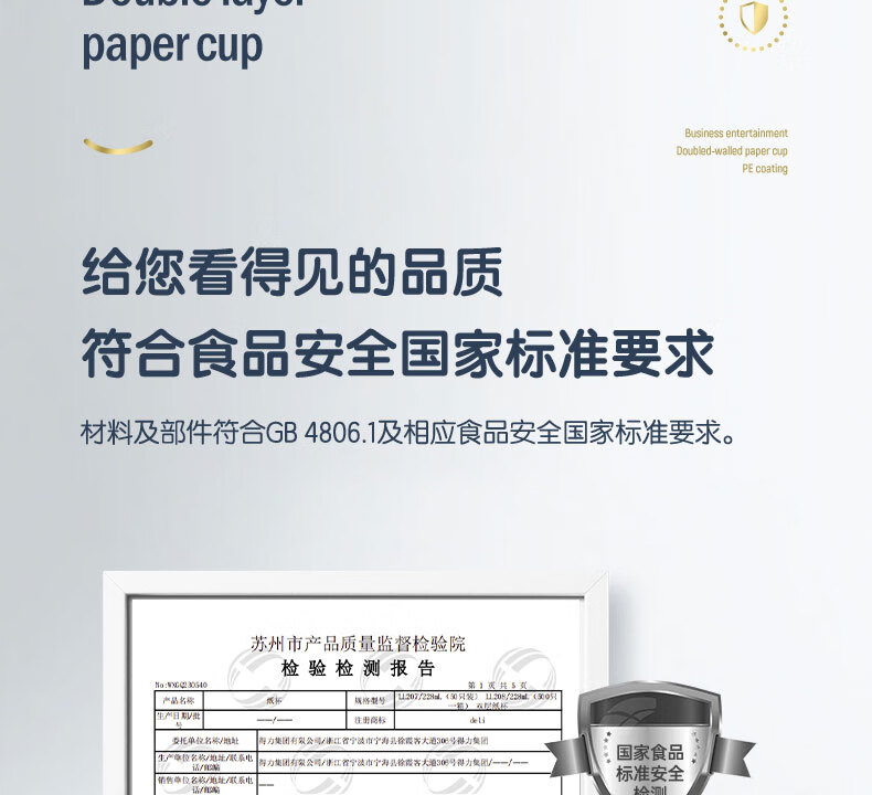 Deli 228ml disposable cup paper cup water cup double layer material thickening office home VIP reception must buy when starting work
