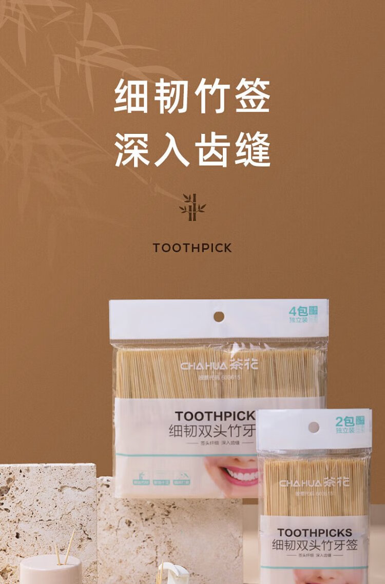 Camellia Disposable Double-Headed Toothpick Pack, Portable and Special for Teeth Picking, Family Pack Bamboo Sticks for Cleaning Teeth Seams, 600 Fruit Picks
