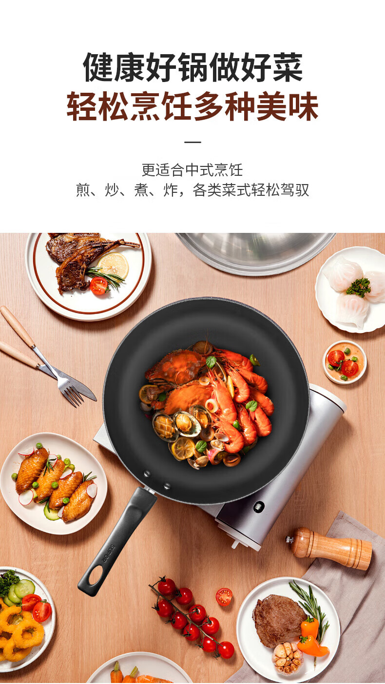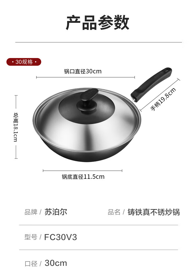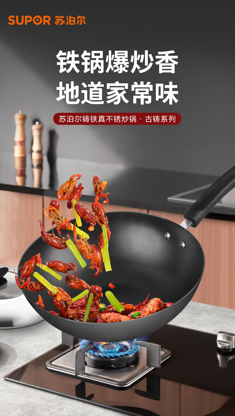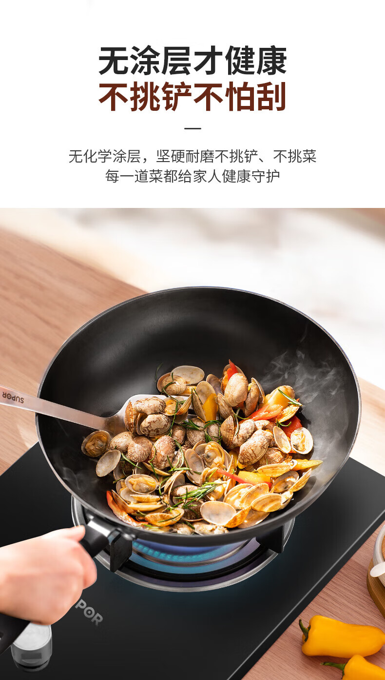 Supor wok uncoated old-fashioned iron pan 30CM true stainless wok gas induction cooker universal FC30V3