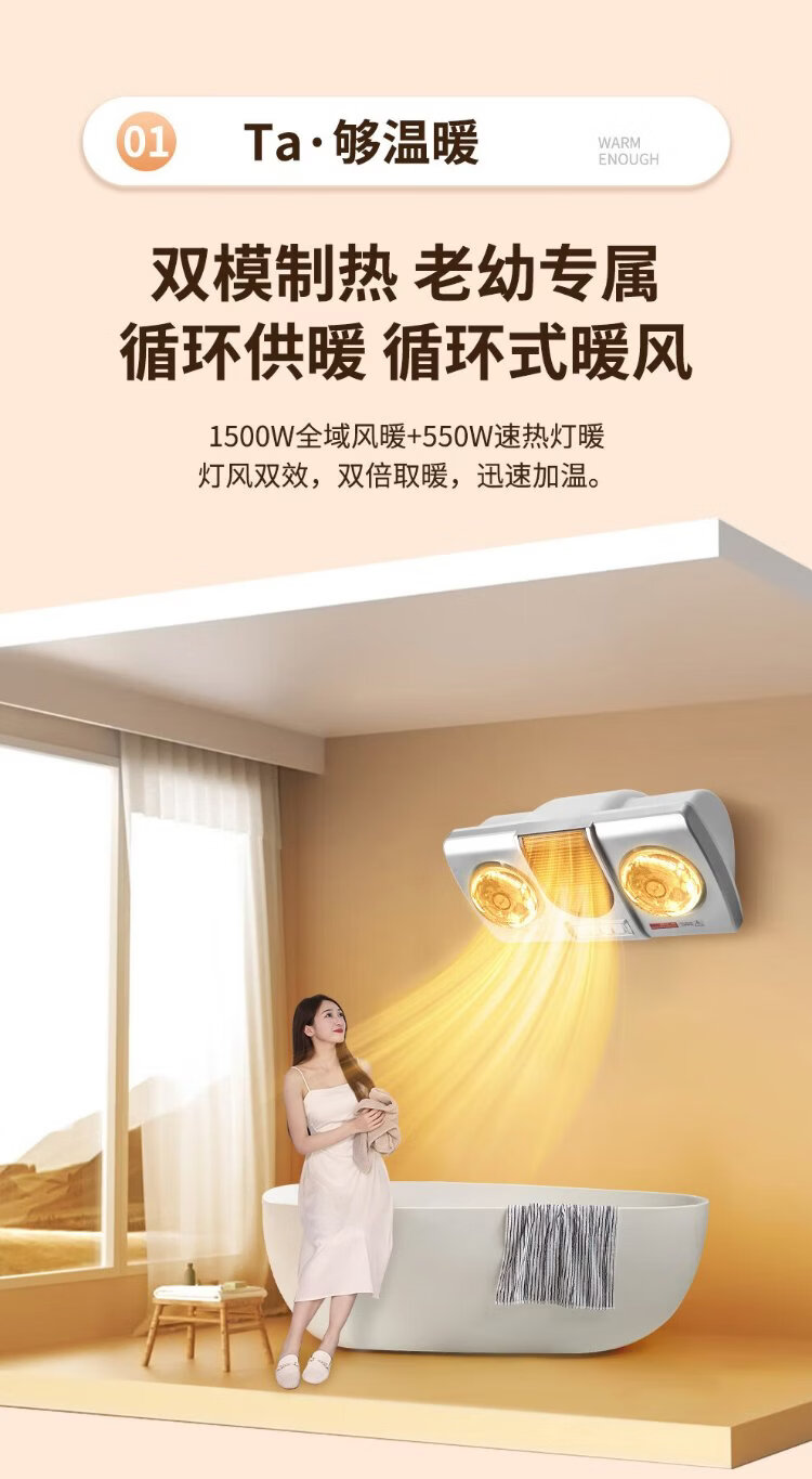 NVC lamp warm bath heater lamp warm series lamp wind double warm wall-mounted wall-mounted heater multi-function Y033 bathroom toilet