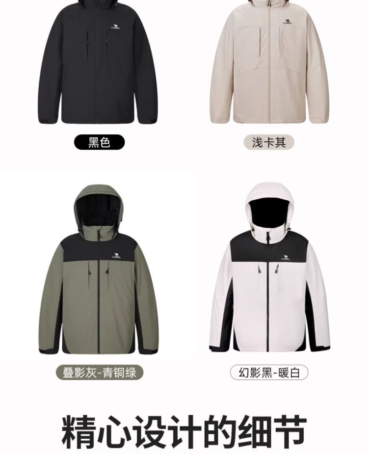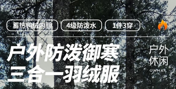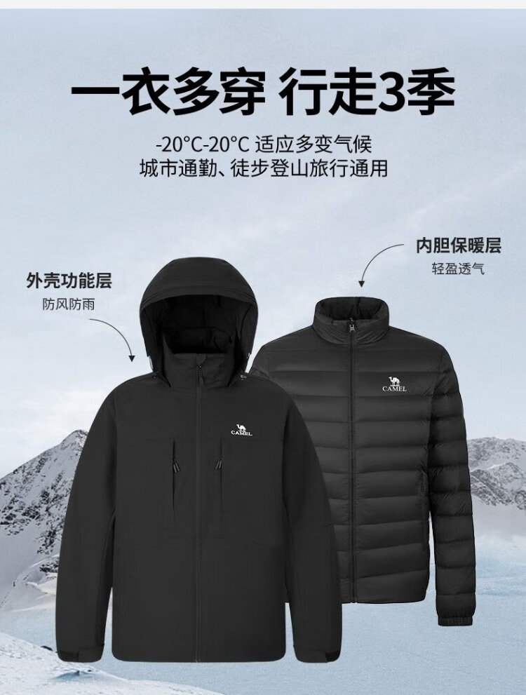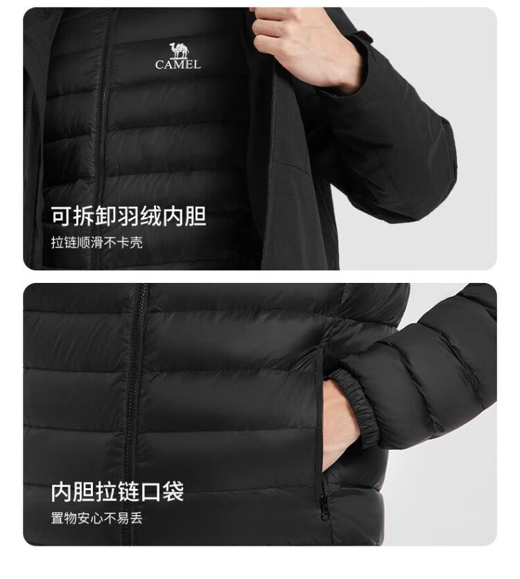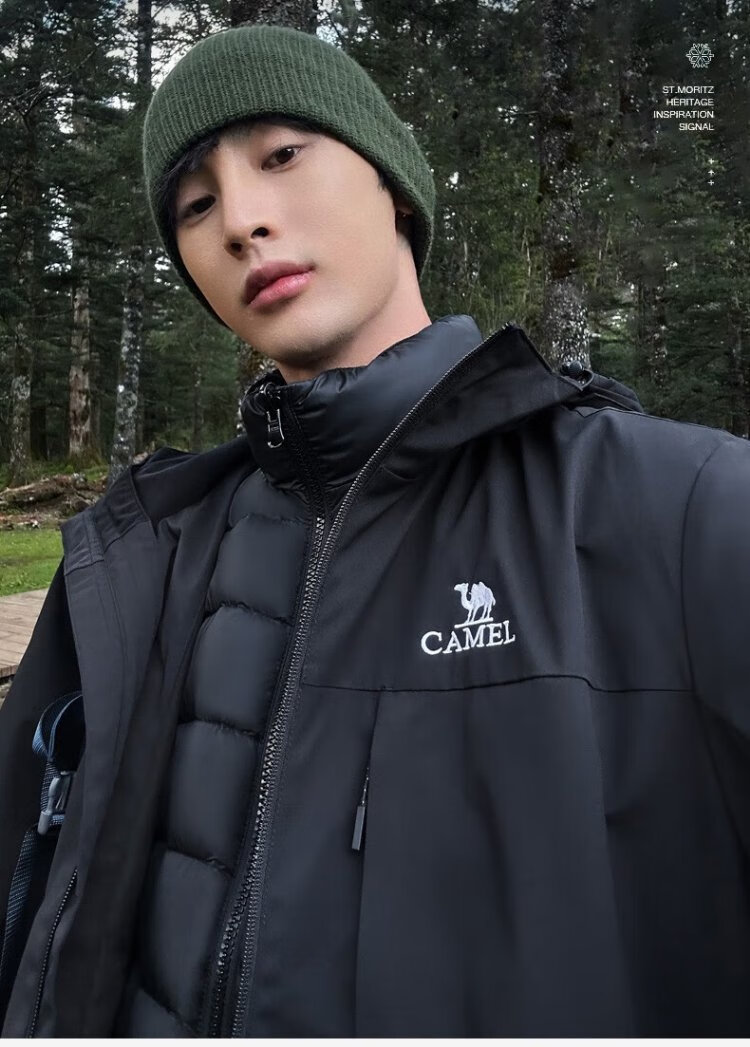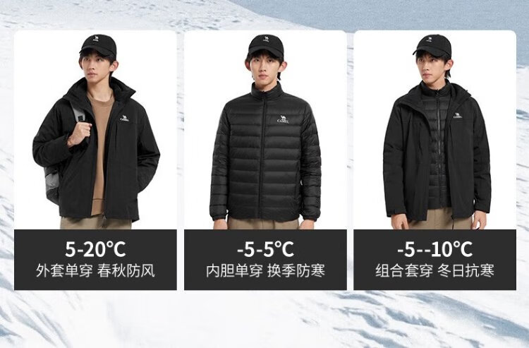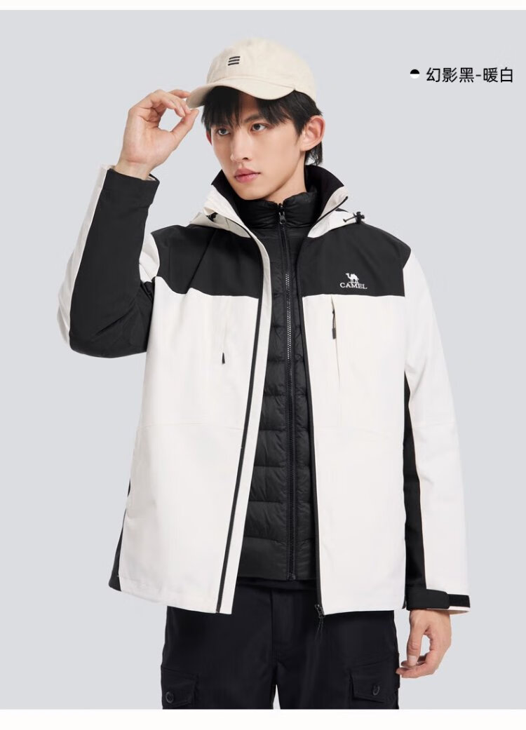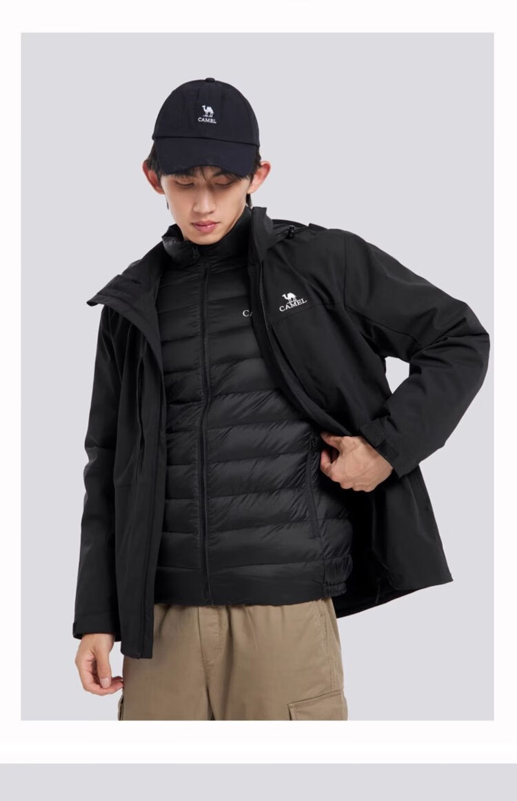 Camel (CAMEL) three-in-one cold-resistant down jacket men's thin white duck down outdoor thickened jacket autumn and winter style M33CF00095