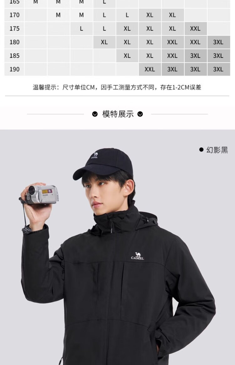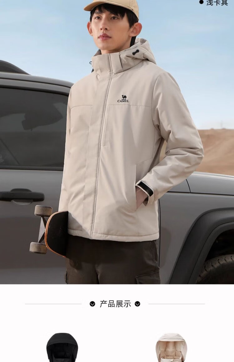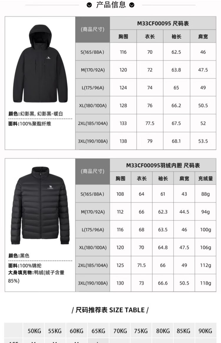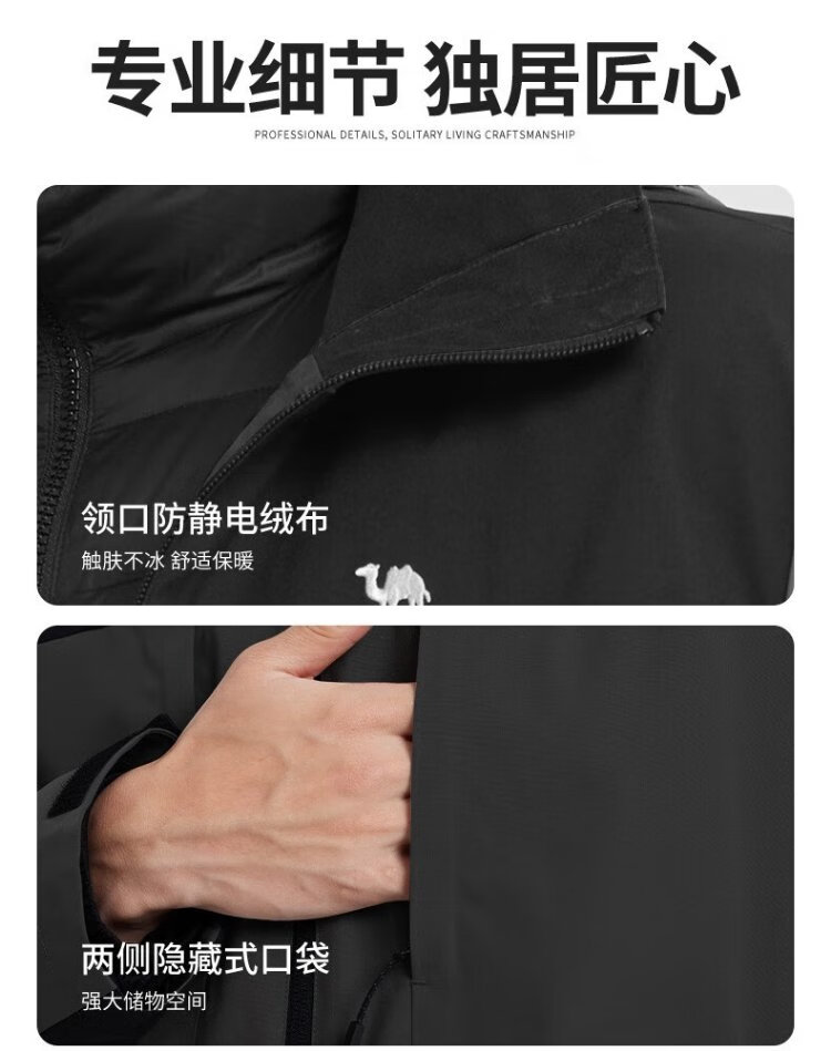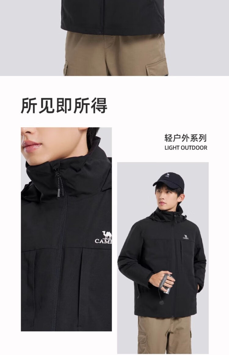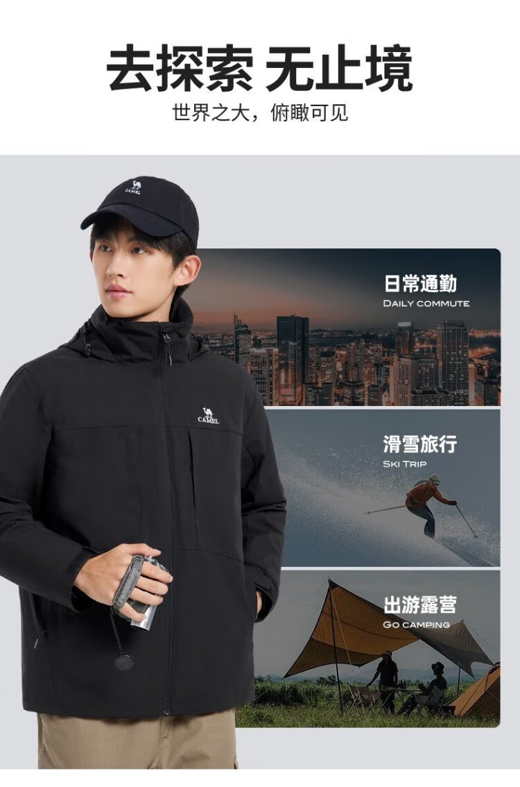 Camel (CAMEL) three-in-one cold-resistant down jacket men's thin white duck down outdoor thickened jacket autumn and winter style M33CF00095