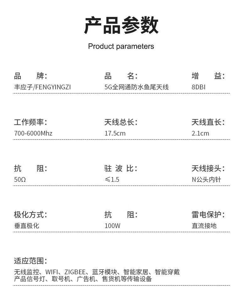 Fengyingzi 5G IoT dual-band outdoor waterproof antenna N male fishtail antenna 5G full band 1 piece FYZ-MX860