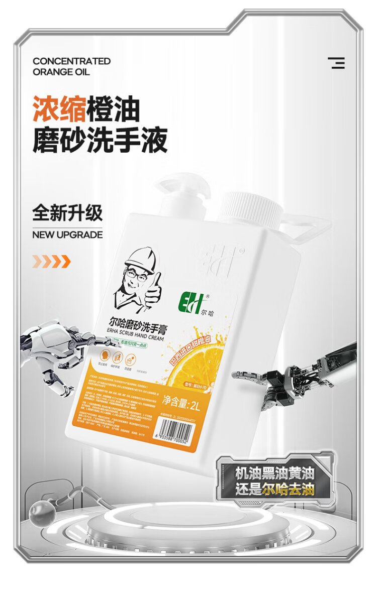 Erha (EH) hand sanitizer EH-70 oil stain remover, frosted orange oil concentrated industrial oil remover, heavy oil black hand whitening hand cleaner 2L*10 bottles (without stand)