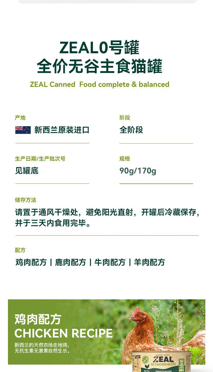ZEAL canned cat staple food canned food 170g*6 chicken flavor cat wet food for young cats and adult cats universally imported from New Zealand