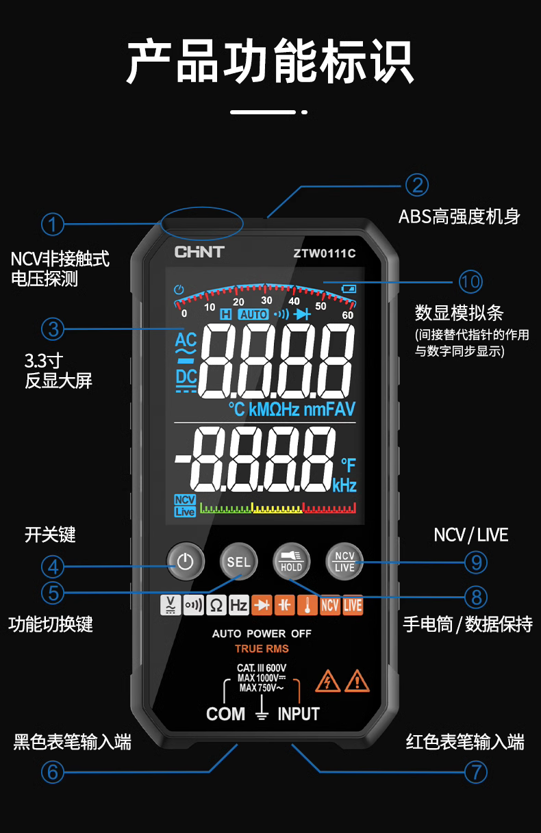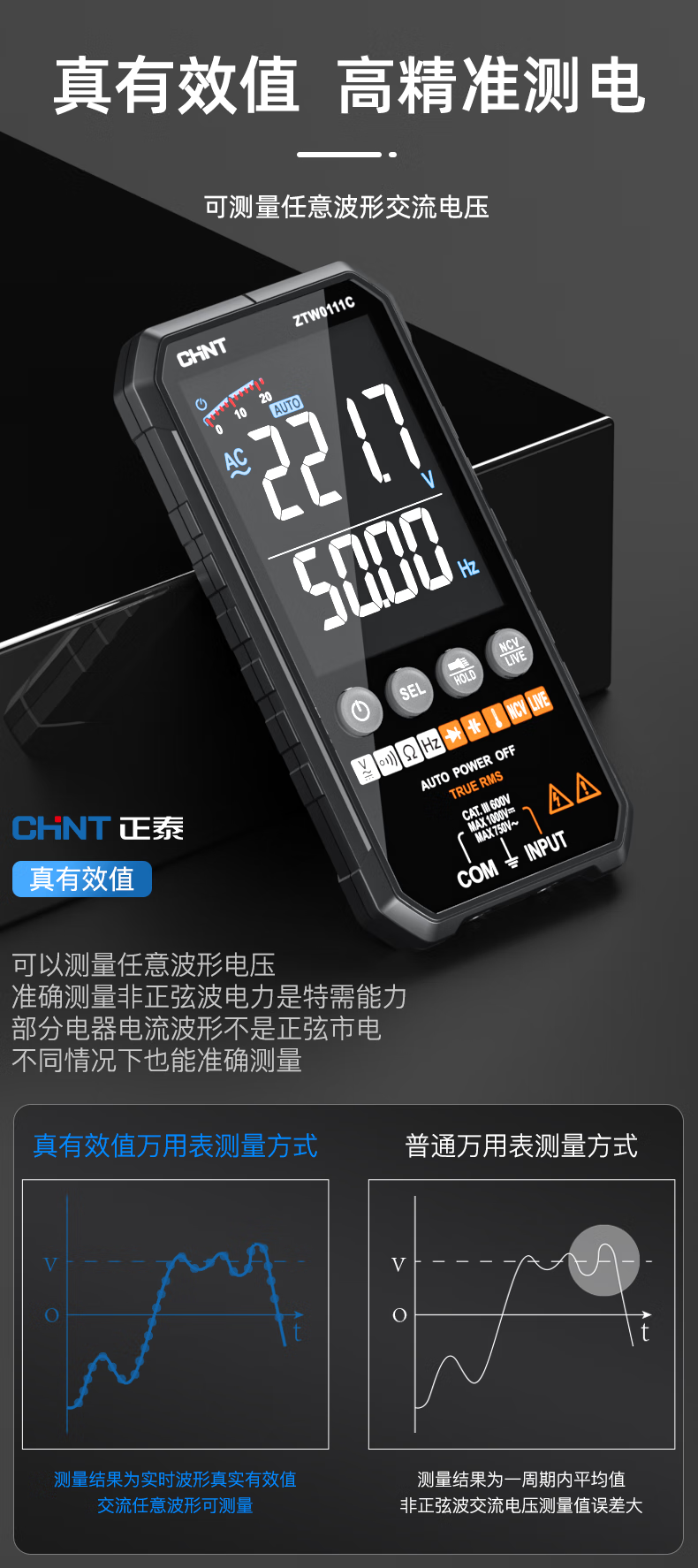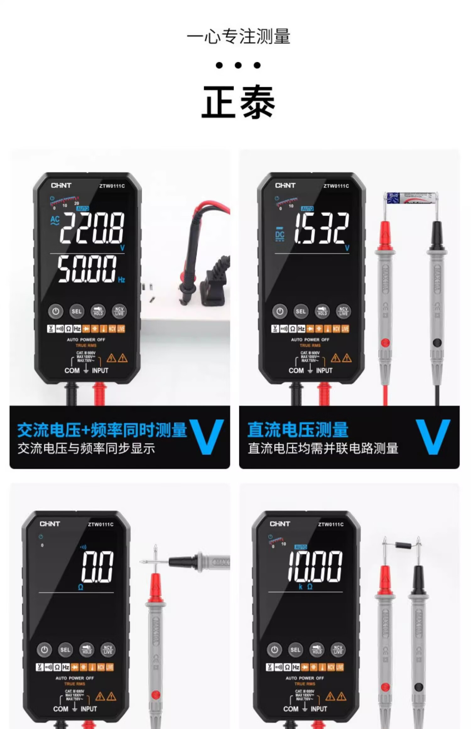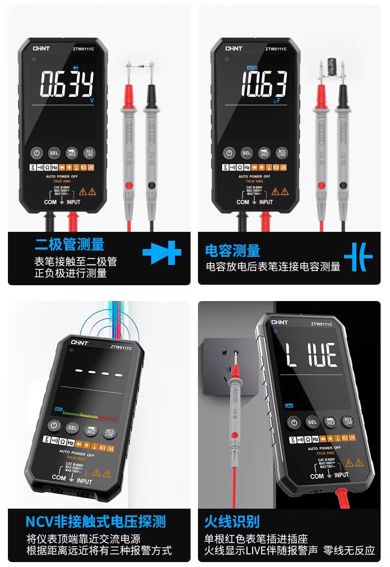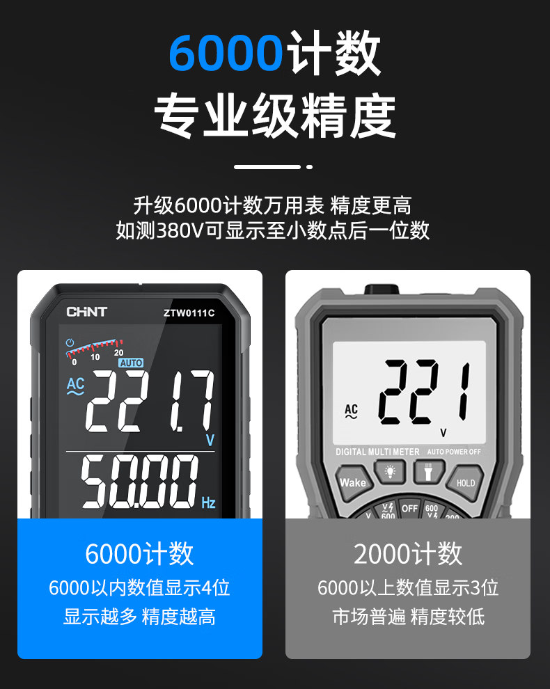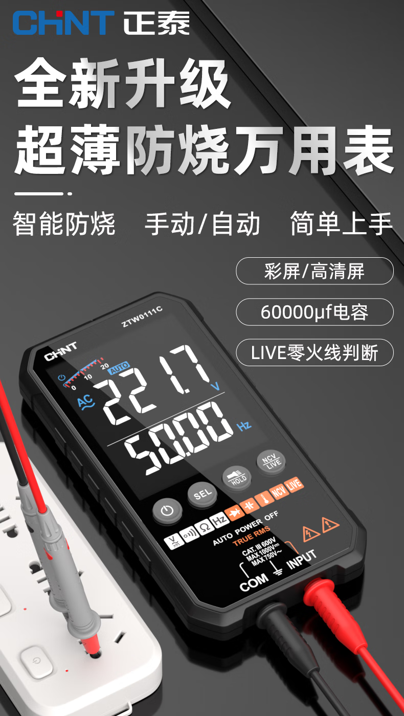 Chint (CHNT) ultra-thin digital multimeter high-precision intelligent fully automatic multi-function multimeter electrician maintenance