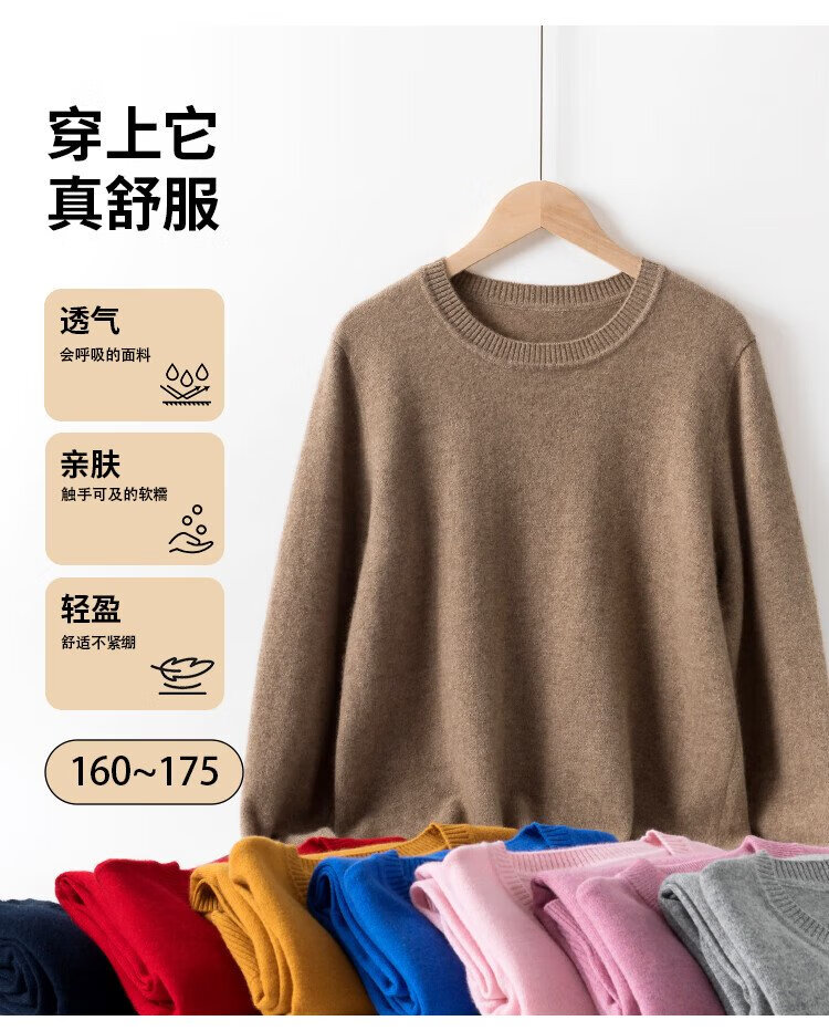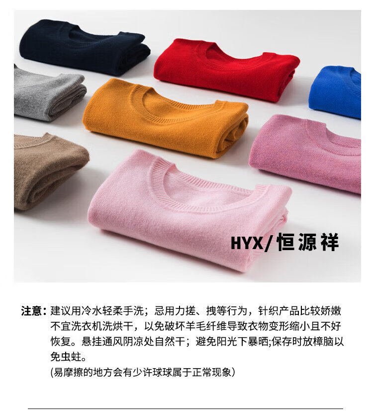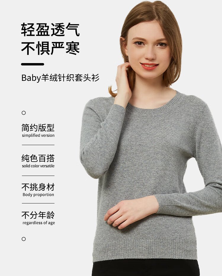 Hengyuanxiang baby cashmere sweater women's sweater autumn and winter pure cashmere pullover warm sweater light gray/middle collar 170