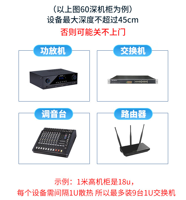EZVIZ Hikvision Cabinet Network Cabinet B2.6618 18U1 meter black mesh door 600 width * 600 depth * 1000 height monitoring cabinet weak current server KTV home cabinet
