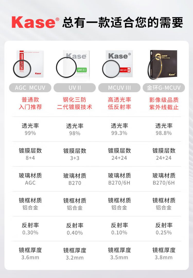 Kase uv mirror Kase uv mirror third generation mcuv filter anti-ghosting and anti-glare high light transmittance without vignetting double-sided multi-layer coating anti-scratch lens protector 82mm