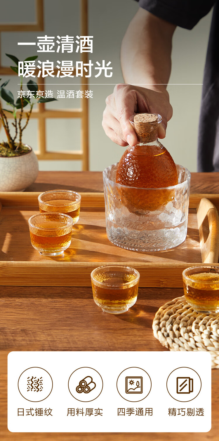 Made in Tokyo, wine set, handmade hammered Japanese sake jug, rice wine warmer, hot pot, wine cup, 1 pot, 1 cylinder, 4 cups