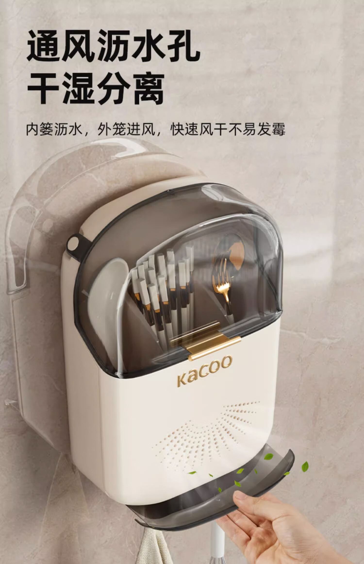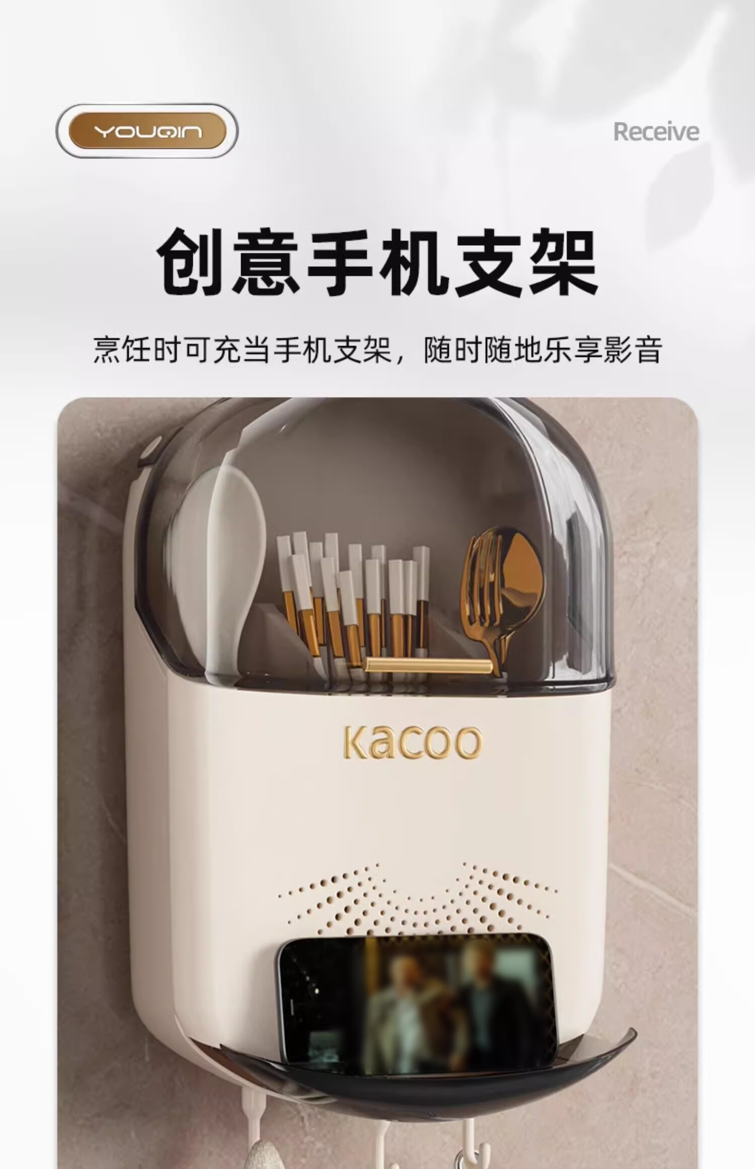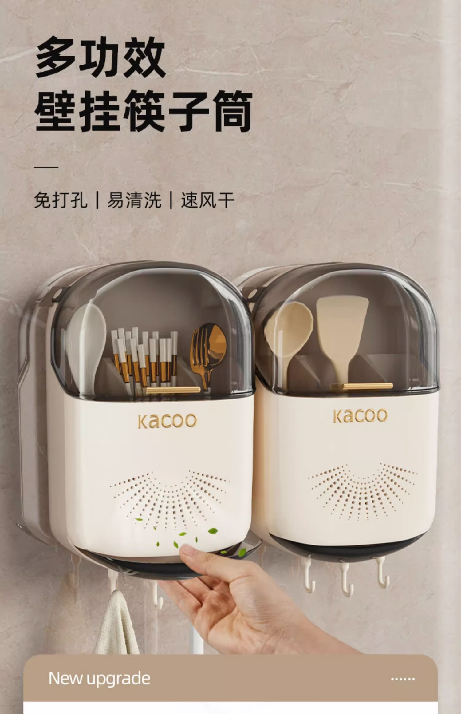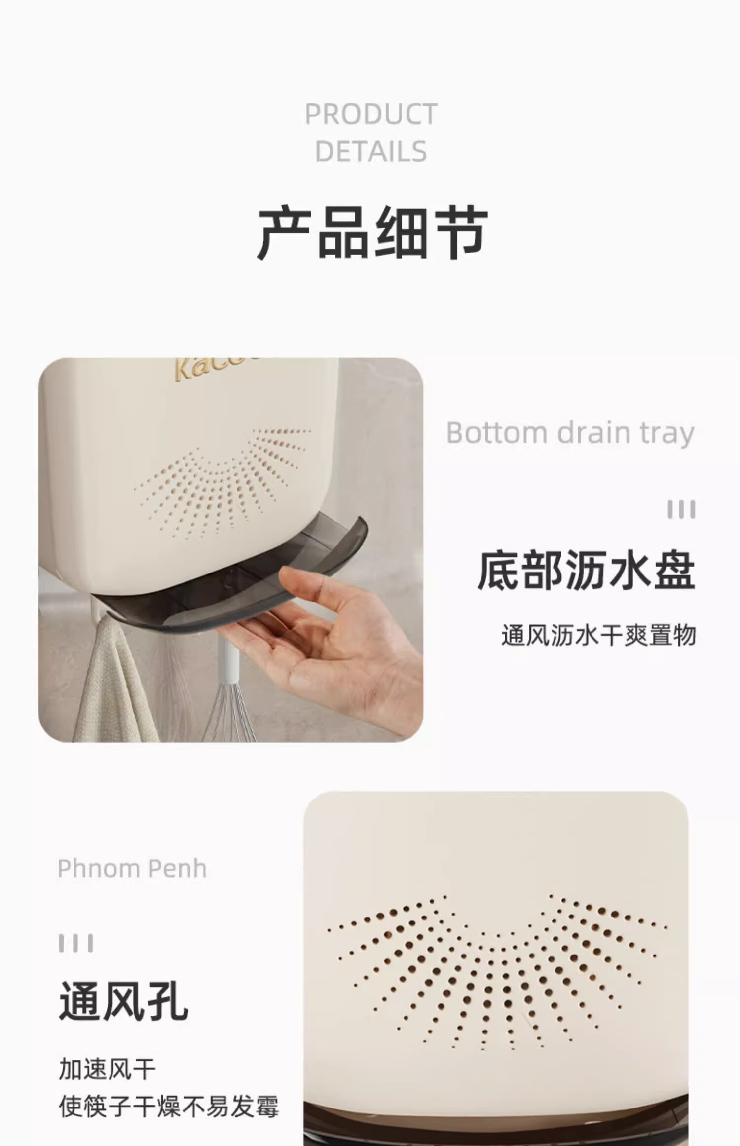 Added light luxury chopstick storage box wall-mounted household chopstick barrel kitchen drain rack chopstick basket chopstick cage spoon bucket