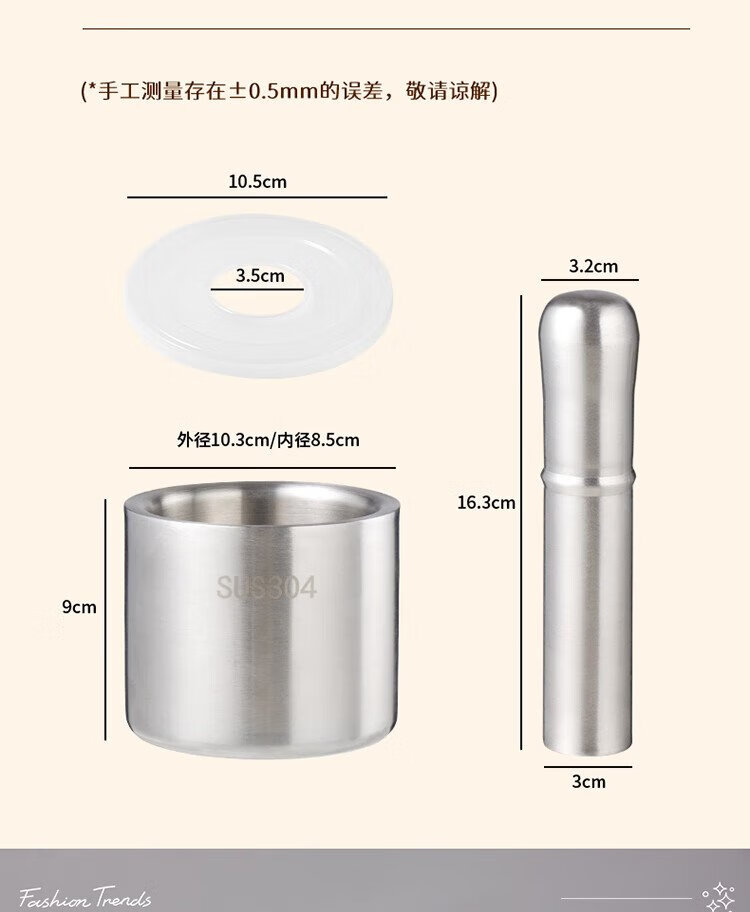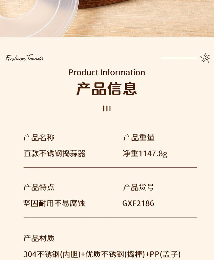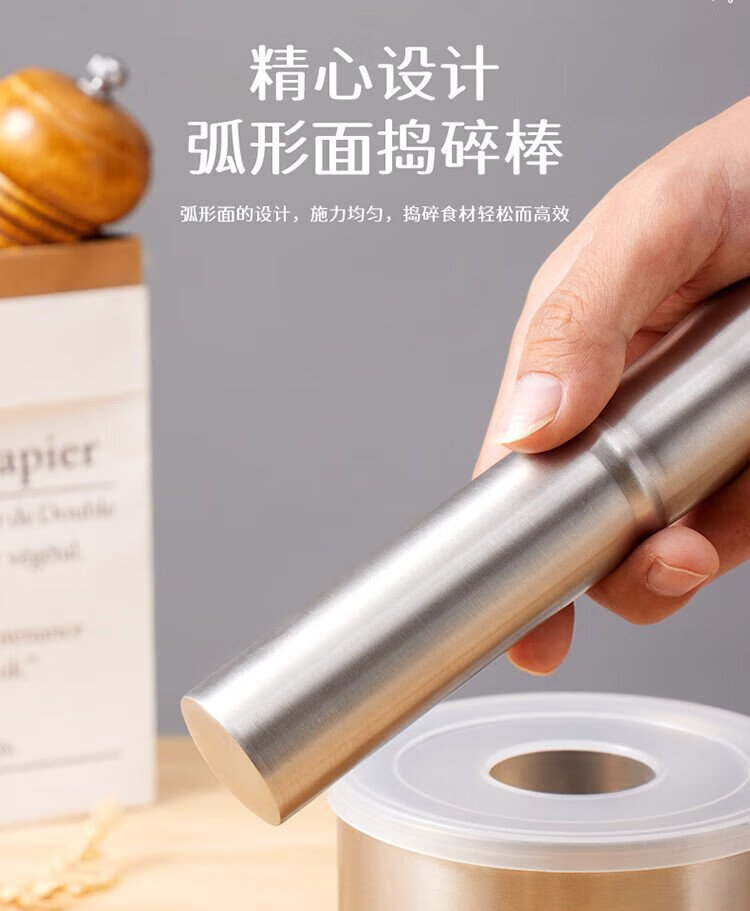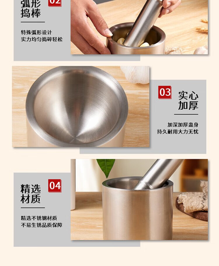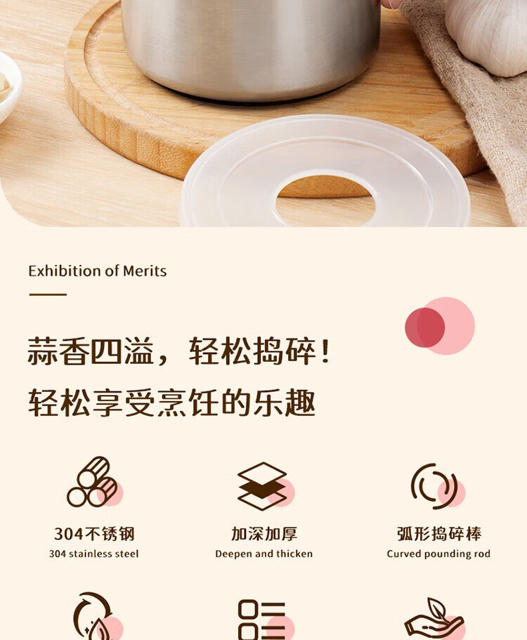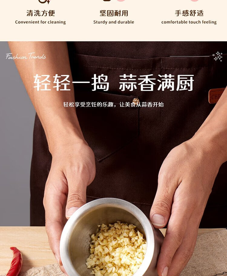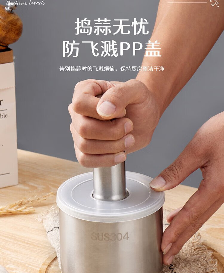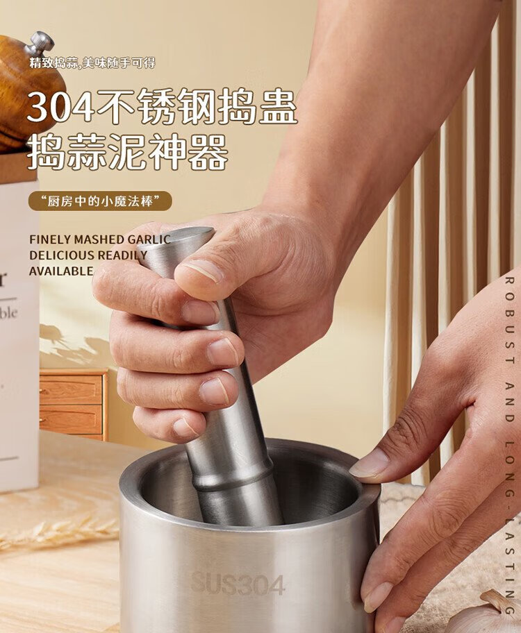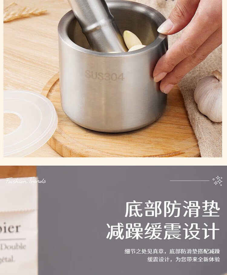 Baijie garlic pounder kitchen garlic mashed manual garlic mortar 304 stainless steel grinder