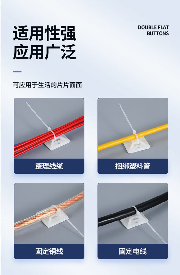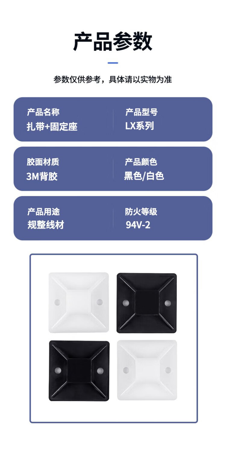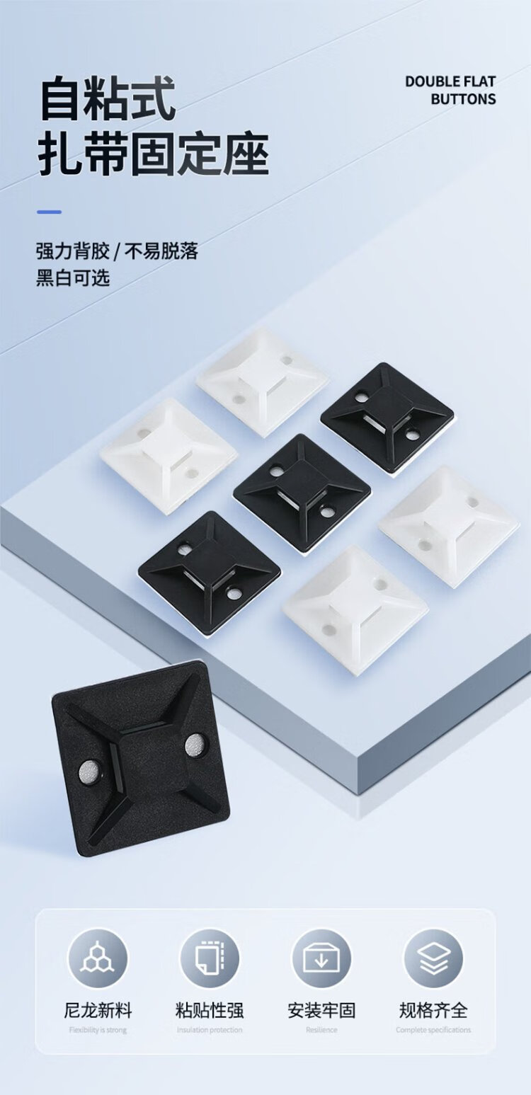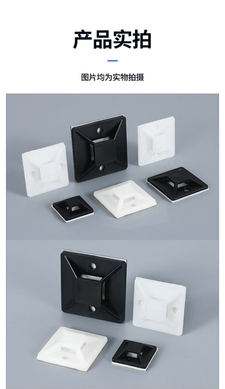 Biaz cable tie holder, nylon cable tie, adhesive cable tie holder buckle, 3M glue self-adhesive wire organizer, cable buckle clip, wire clip, wire clamp, black, 100 sets