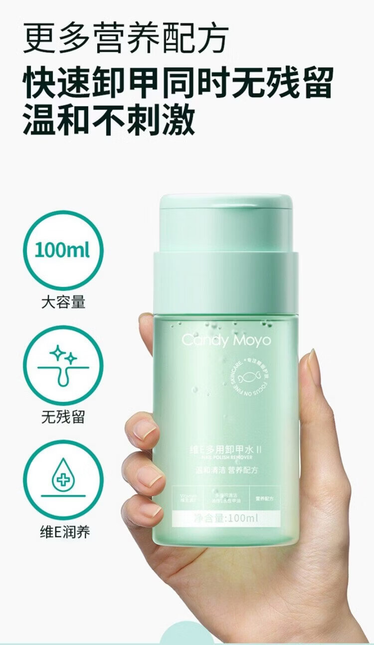 CandyMoyo Healthy Nail Polish Remover Water Nail Remover Cotton Can Remove Oily Water-Based Nail Polish Vitamin E Nail Polish Remover 100ml