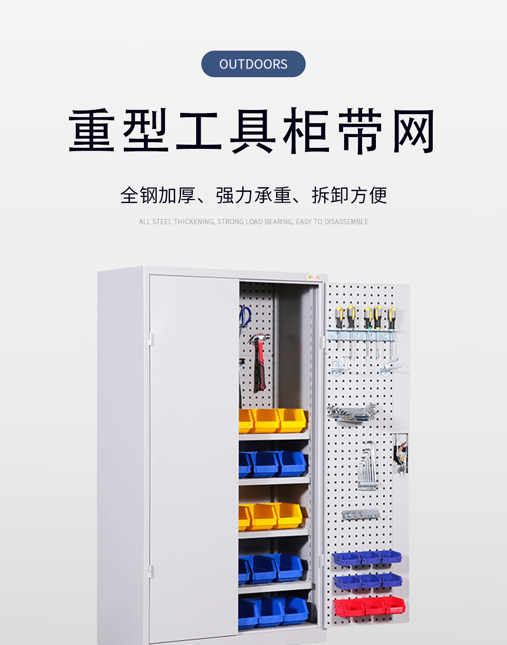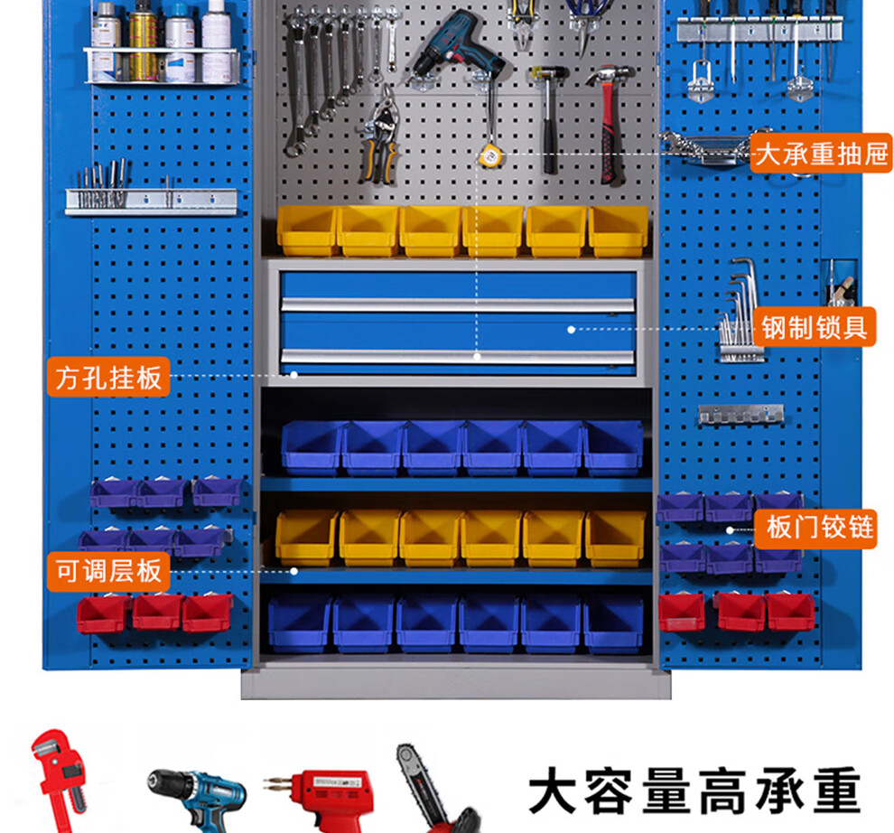 PUFAN tool cabinet workshop tool storage cabinet with hanging plate steel storage cabinet gray and white mesh three draw belt accessories package one